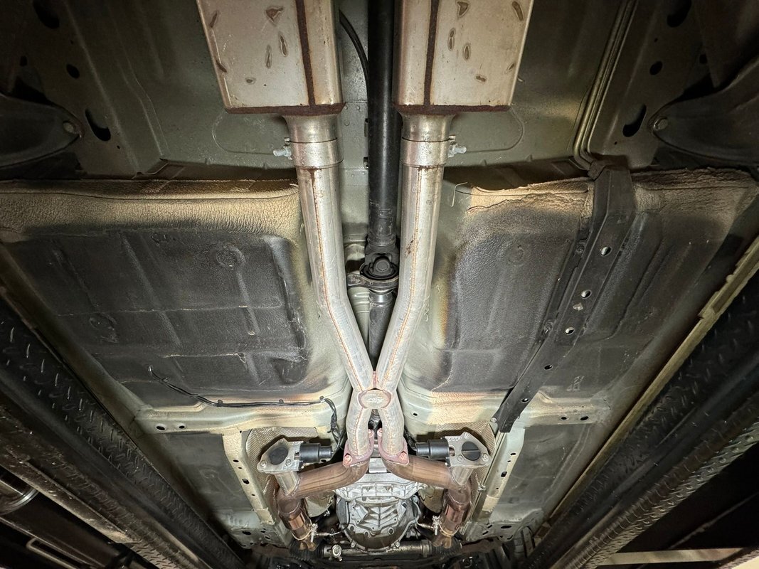 Stuffed under the curved dual vented hood is a living breathing 6.0 liters of V8 LS2 engine. It has a Texas Speed camshaft with 629i, 615e lift, and 235i,240e duration and a K&N cold air intake. EFI feeds it, and a T56 6-speed manual transmission with a rear axle with 4.11 gearing finishes up the drivetrain. Headers and a Spintech muffler system are on and it has QTP electric cutouts.