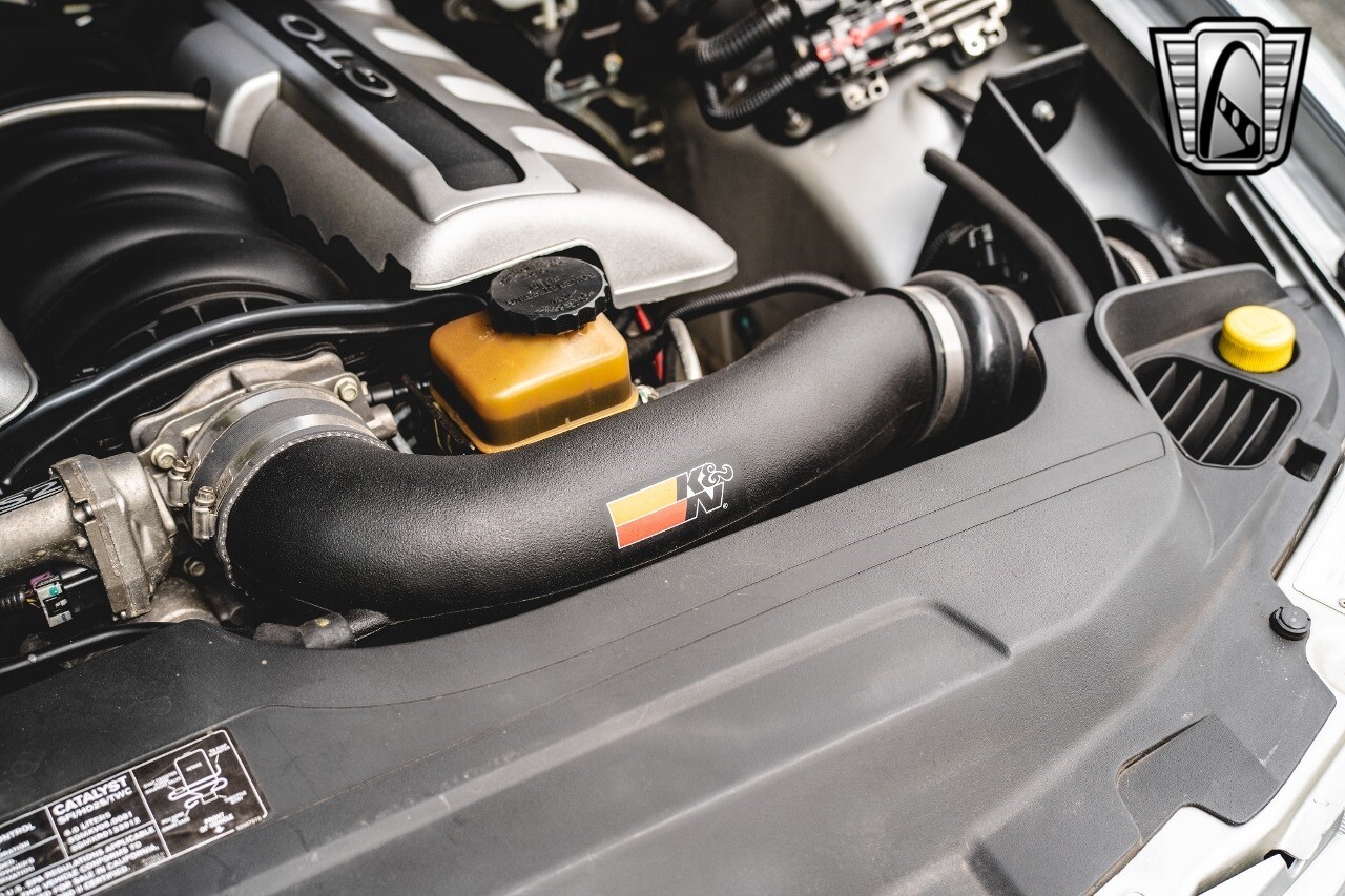 Gateway Classic Cars of Nashville is proud to digitally present this 2005 Pontiac GTO. Nestled under the hood is a potent LS2 6 Liter V8 engine coupled with a 6-speed manual transmission, delivering a thrilling driving experience. Its silver exterior is a striking contrast to the black leather interior, creating a visual statement of style and sophistication.