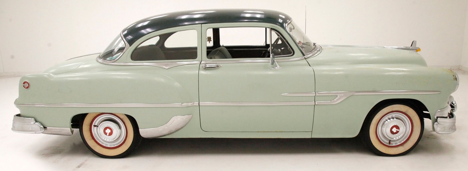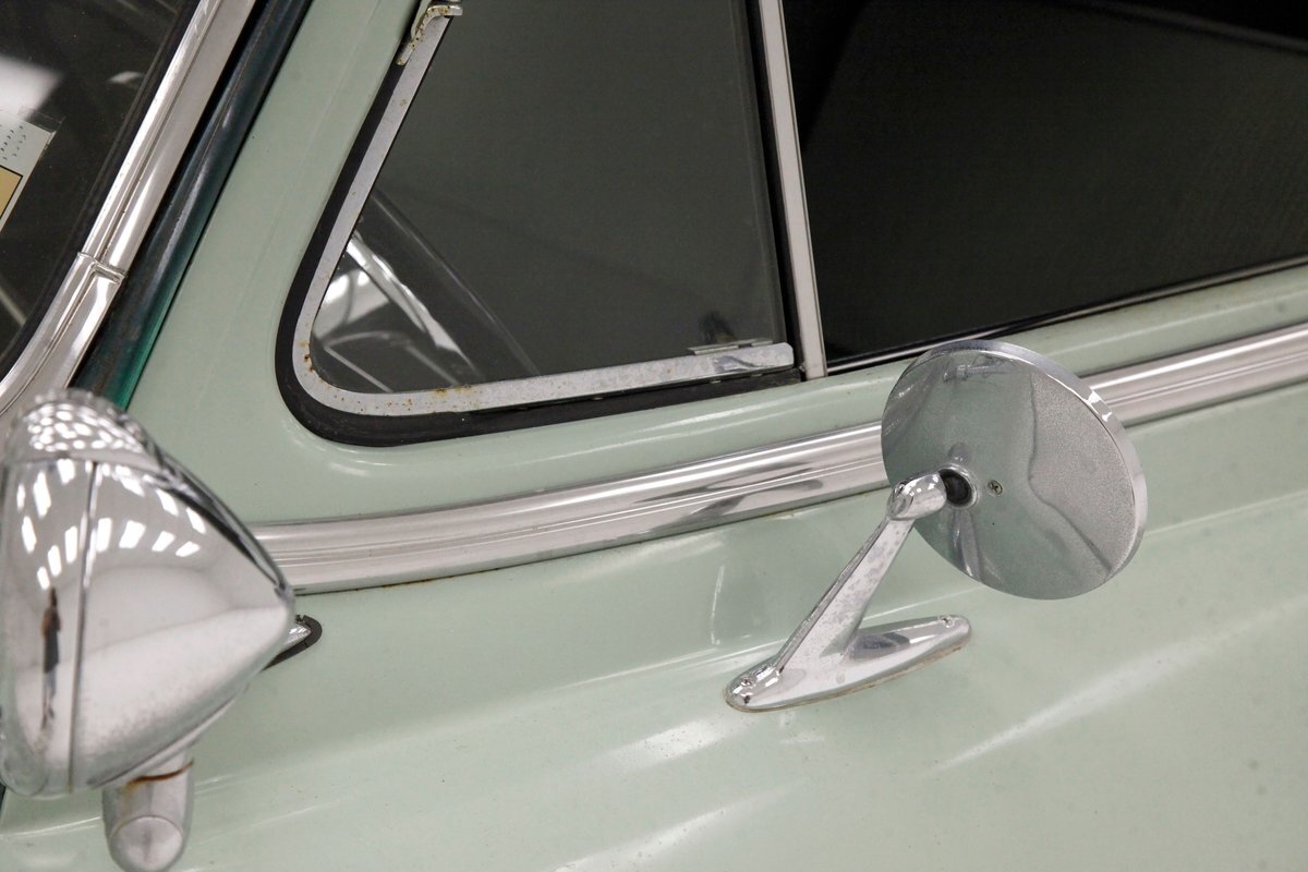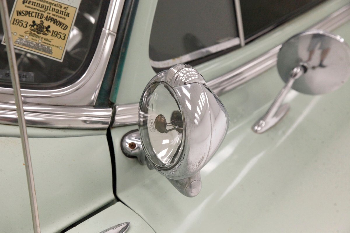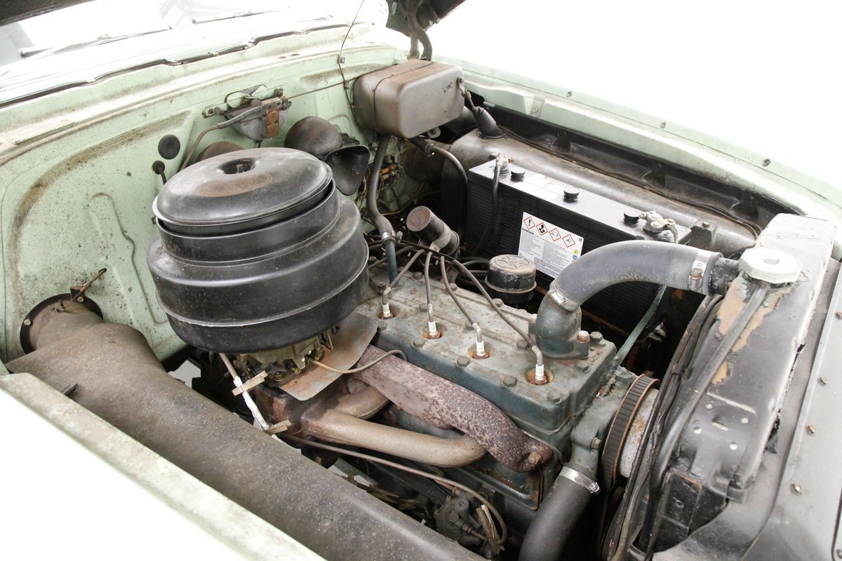 For consignment, a 2 owner original two tone patinaed paint car with chrome trimmings aplenty. This car is all original, has a newly rebuilt carburetor, new starter and a new exhaust system. It is a flat 8 cylinder inline engine, and run by a 6 volt electrical system. The interior is all good and looking the early 50's part.
