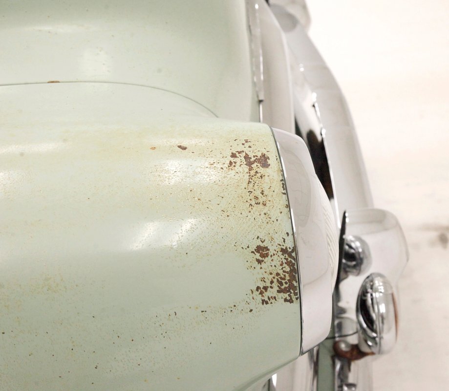 Under the hood sitting in an unrestored and original engine bay which is pretty clean, we have the now famous for its power 268.4ci I8 which produces 118hp. It has a single 2-barrel carburetor, with a 4 speed Hydramatic automatic transmissions on back. Power goes to the rear wheels via a 3.90 rear pumpkin. Some patina on the actual engine but hoses and wiring are all supple.