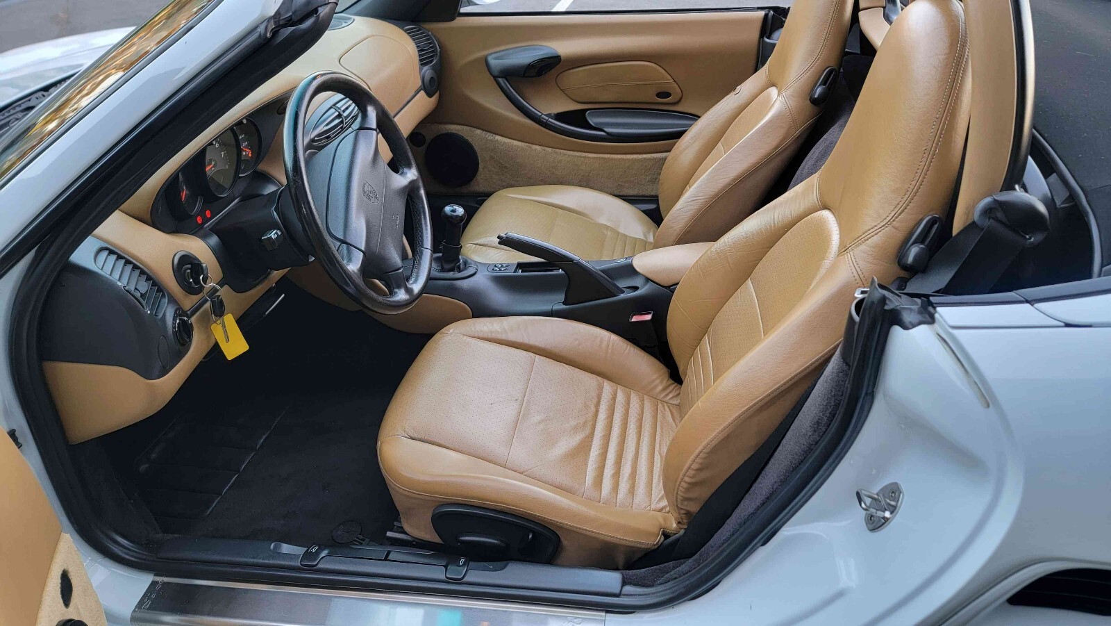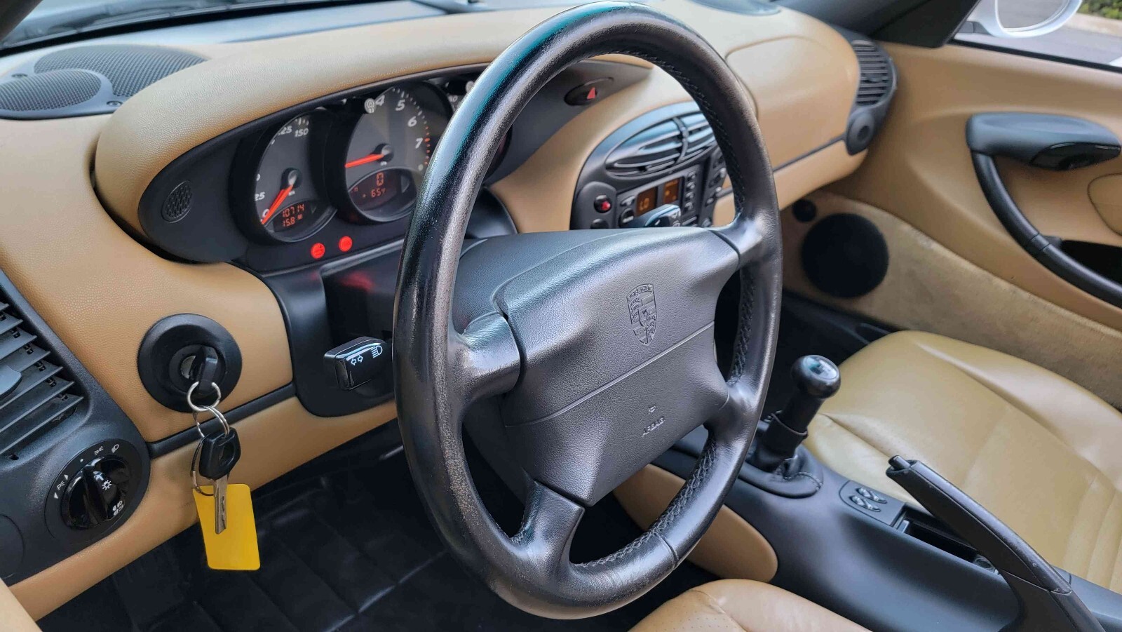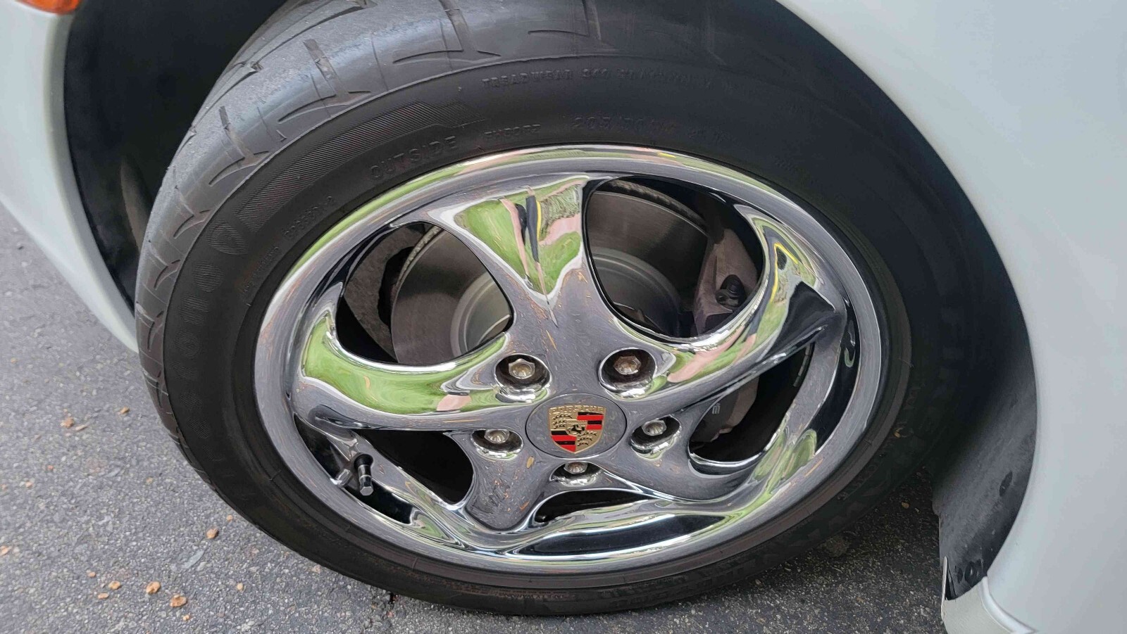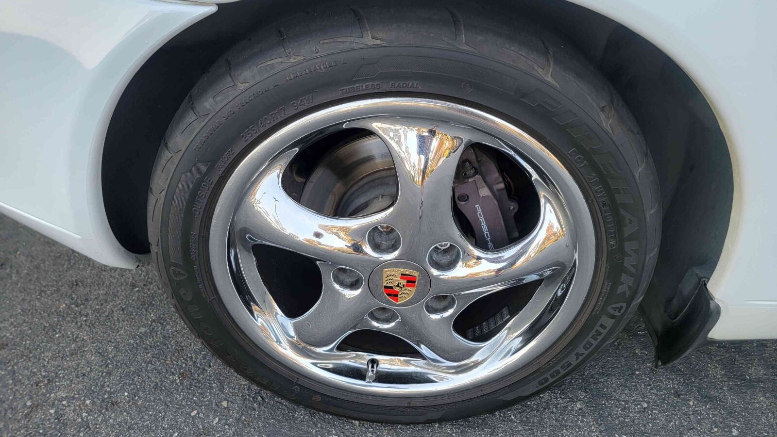 Exterior wise the paint and body are in excellent condition with no dents or dings. Convertible top looks brand new and power's up and down with no issues. Factory Porsche wheels and center caps are in excellent condition and have an excellent set of Firestone Firehawk with about 85-90% treadwear remaining.