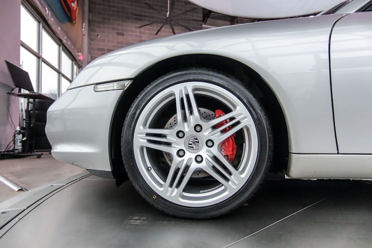 • Pwr 4-wheel vented/cross-drilled disc brakes w/4-piston fixed light alloy calipers painted red