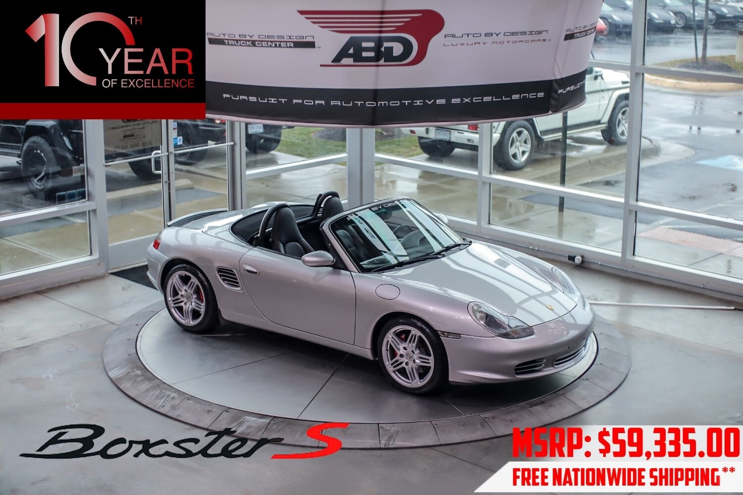 GORGEOUS BOXSTER S 6-SPEED MANUAL! This Beautiful 2003 Porsche Boxster S Convertible is Finished in Arctic Silver Metallic/Black Soft Top with Black Premium Leather Interior. Powered by Porsche 3.2L H6 DOHC 24V Engine mated to a 6-Speed Manual Transmission. This Stunning Boxster S Comes Fully Optioned with Color Match Interior Trim Package, Custom Tailoring, Heated Front Seats, Porsche Crest In Headrest, Hi-Fi Sound Digital, Porsche Windstop Deflector, CD Shelf Center Console, Storage Lid w/ Boxster Logo, Active Rear Spoiler, Chrome Exhaust Pipes, Red Porsche Calipers w/ Slotted Performance Rotors, 18 Inch Turbo Look II Wheels wrapped in New (R) 265/35R18 (F) 225/40R18 Performance Tires. This Boxster S is viewed by many as a sports car distilled to its purest essence. World-class handling and braking, pinpoint steering. All Factory Books, Manuals, Factory Floor Mats and Remote Key fob are included. This Boxster S has been Fully Serviced and Inspected. Total MSRP: $59,335.00 ******* Auto By Design strives to provide you a worry free buying experience! All of our high-end vehicles are processed through a Free Multi-Point Inspection to ensure that the vehicle is of Highest Quality & Drivability. This Vehicle will come with our Free Oil Change and Multi Point Inspection for Life Program, including FREE SHIPPING Right to your doorstep with our No Haggle Free Online Pricing. Please ask your representatives for more information certain inventory vehicles may not be eligible,***certain exclusions may apply*. ******This Stunning 2003 Porsche Boxster S Convertible Comes with a Clean Carfax report. We also offer shipping logistics worldwide, as well as special financing with rates as low as 5.79%** for well qualified buyers**. Auto loans are our specialty. We are experts in helping individuals with good and bad credit to help obtain a car loan for the purchase needs. Please inquire with our associates.