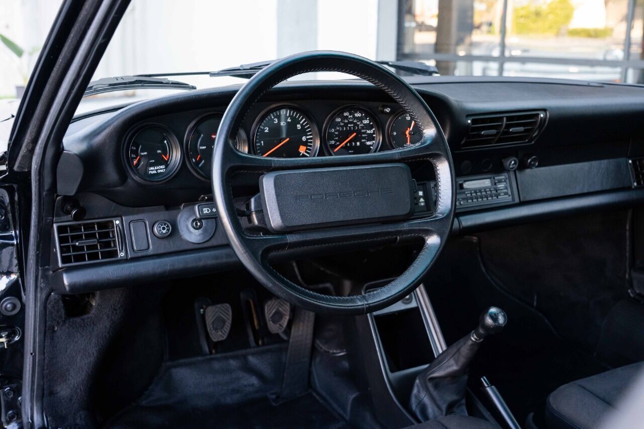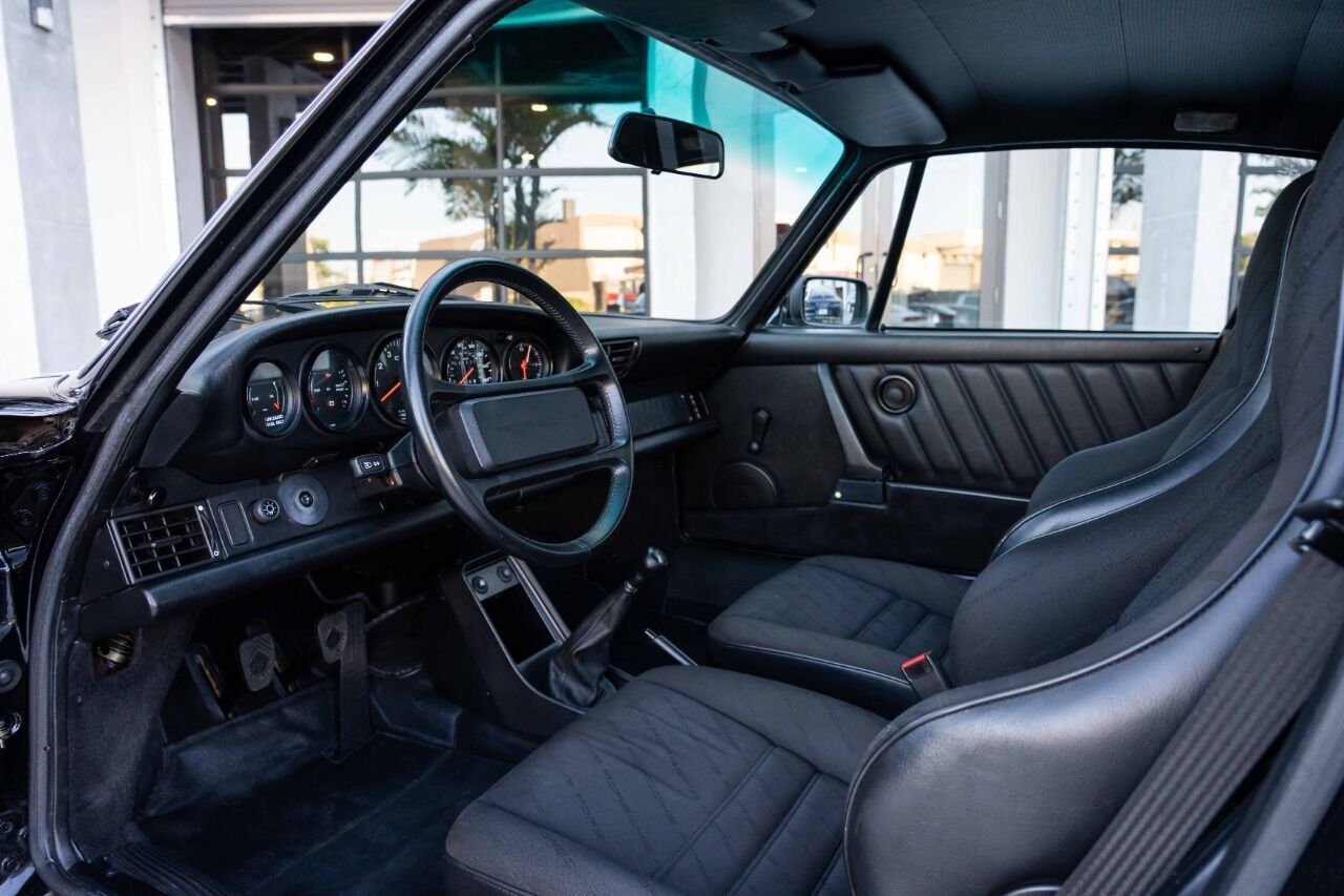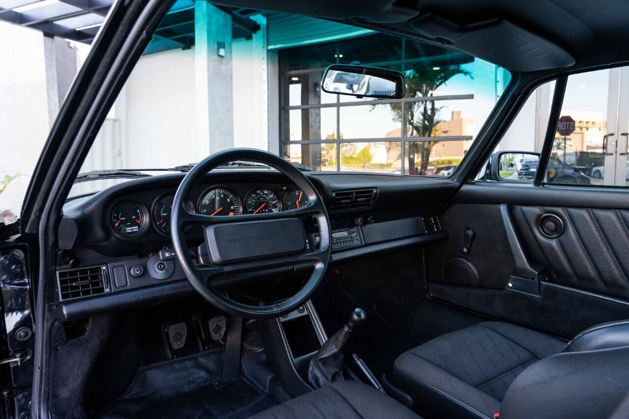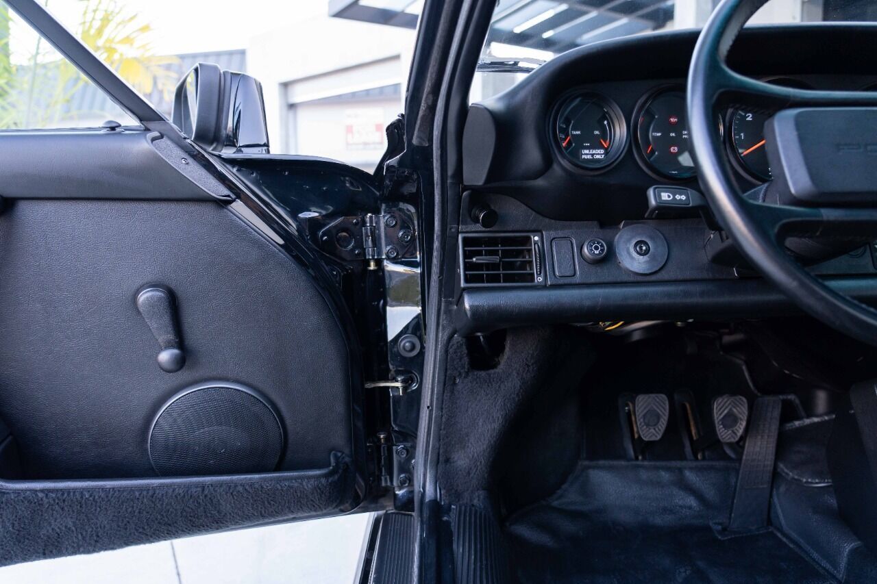 1988 Porsche 911 Club Sport - 1 of 3 US-delivered examples in Black and 1 of 28 total US-market cars. With only 31 thousand verified miles since new, this Club Sport was optioned new with limited slip differential and black cloth Porsche script interior, which is in immaculate condition. The Club Sport model was essentially the “RS” of the 3.2 Carrera models and was delivered without AC, radio, rear seat, sound deadening, fog lights, door pocket lids, trunk and engine compartment lights, rear decklid Carrera logo, front hood lock, or rear wiper. Estimate weight savings compared to a standard 3.2 Carrera were 155lbs. Non-standard parts for this CS include Genuine 16 x 7 and 16 x 8 Fuchs wheels and a Matter bolt-in rollbar. Less than 225 miles ago, this ClubSport benefitted from a complete mechanical refurbishment and engine re-build / re-seal. A new clutch and flywheel were installed at the same time as well as new dampers, suspension bushings, fresh brakes and many other components. Complete records of the extensive service are available for review along with a high resolution photo gallery. This Clubsport comes with original owners manuals and Clubsport supplement manuals.