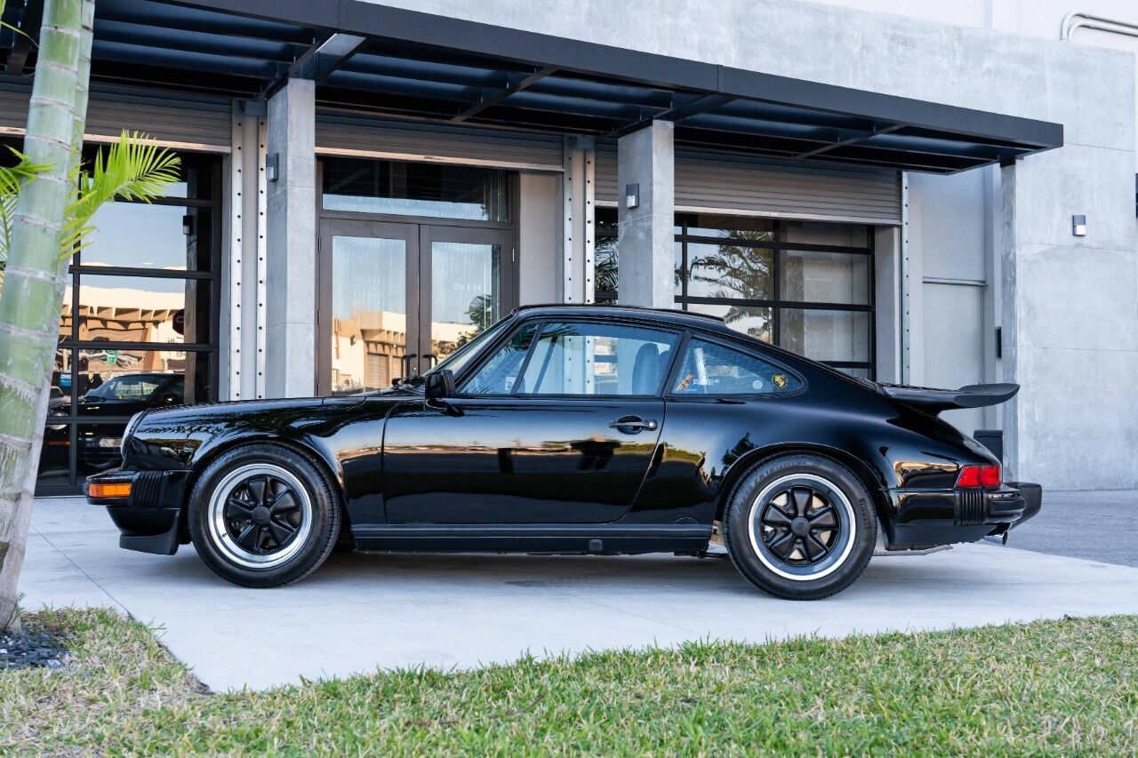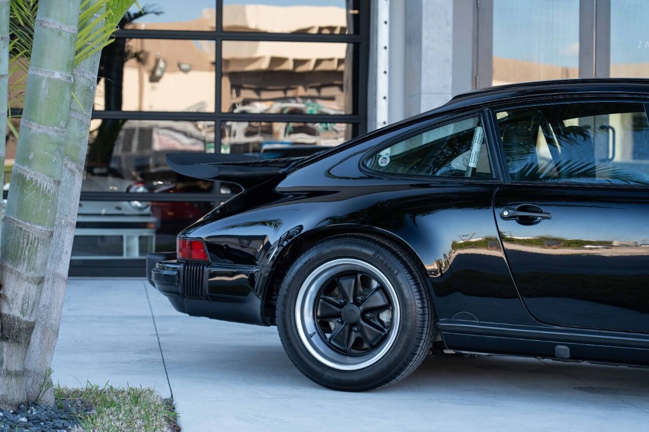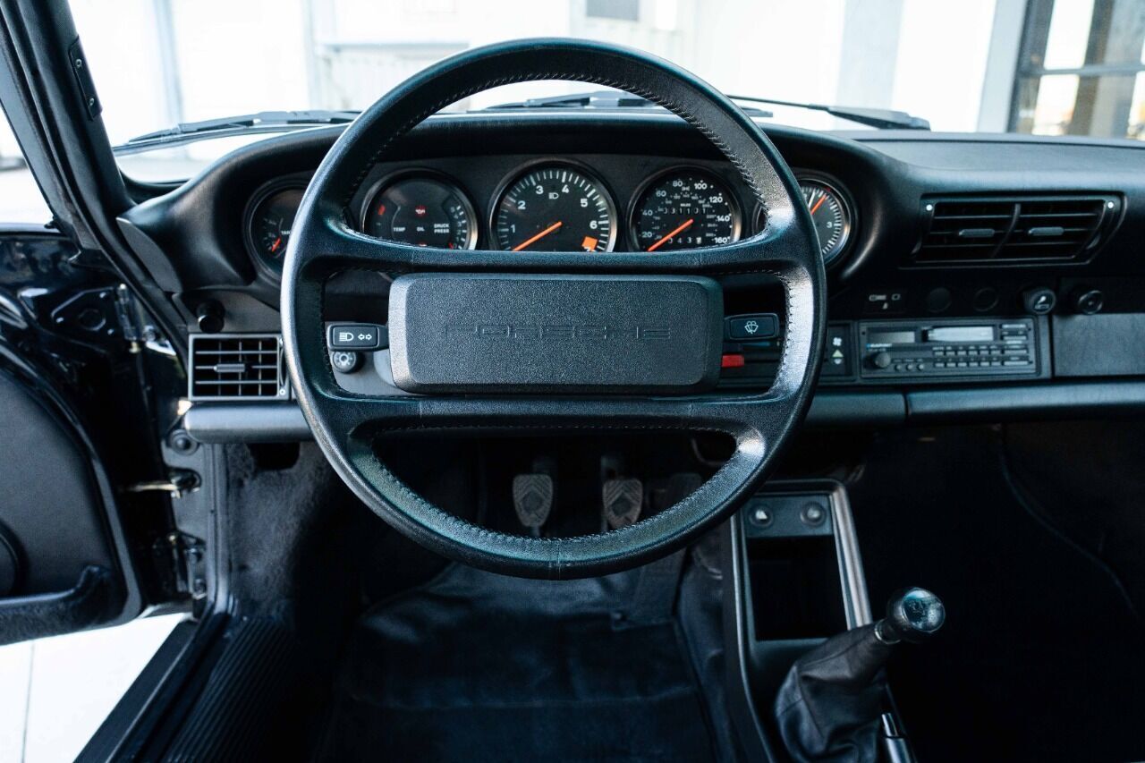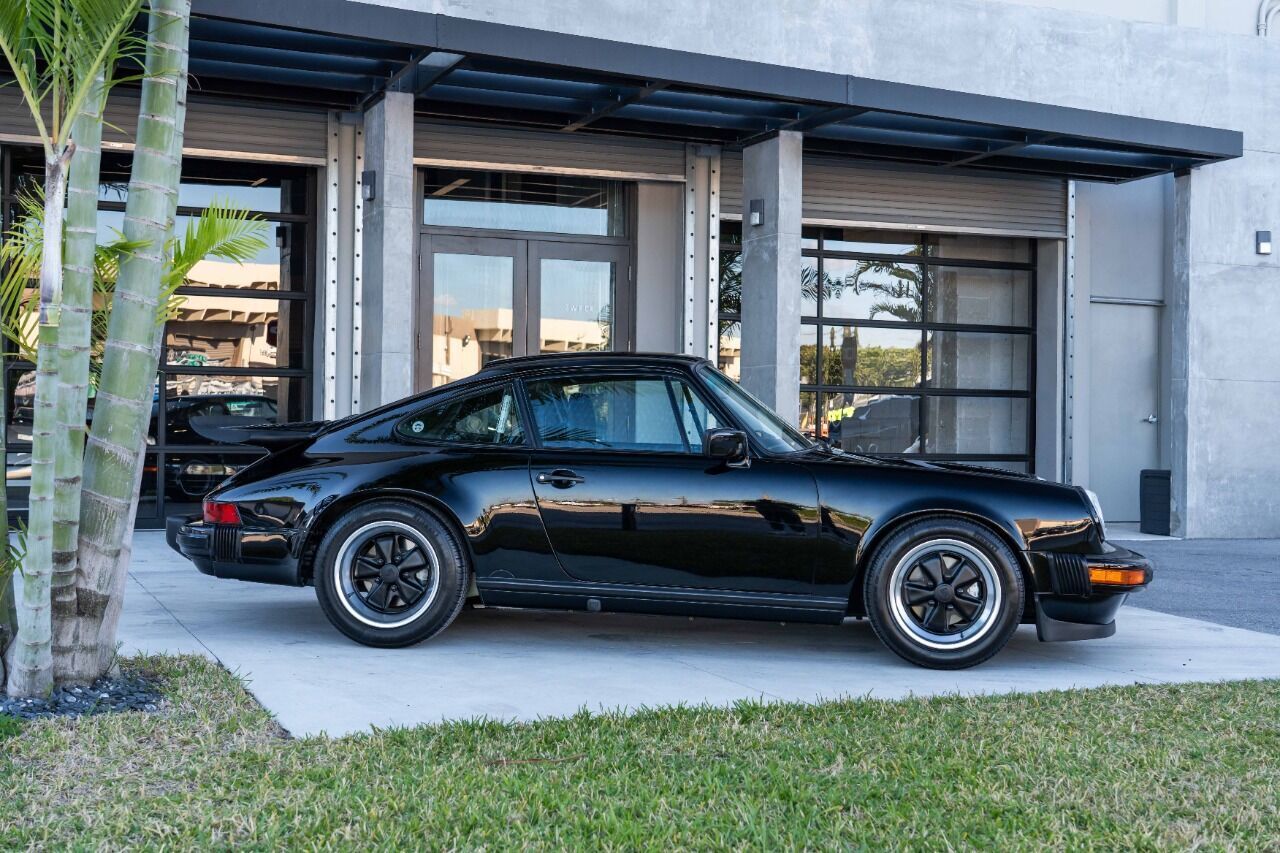1988 Porsche 911 Club Sport - 1 of 3 US-delivered examples in Black and 1 of 28 total US-market cars. With only 31 thousand verified miles since new, this Club Sport was optioned new with limited slip differential and black cloth Porsche script interior, which is in immaculate condition. The Club Sport model was essentially the “RS” of the 3.2 Carrera models and was delivered without AC, radio, rear seat, sound deadening, fog lights, door pocket lids, trunk and engine compartment lights, rear decklid Carrera logo, front hood lock, or rear wiper. Estimate weight savings compared to a standard 3.2 Carrera were 155lbs. Non-standard parts for this CS include Genuine 16 x 7 and 16 x 8 Fuchs wheels and a Matter bolt-in rollbar. Less than 225 miles ago, this ClubSport benefitted from a complete mechanical refurbishment and engine re-build / re-seal. A new clutch and flywheel were installed at the same time as well as new dampers, suspension bushings, fresh brakes and many other components. Complete records of the extensive service are available for review along with a high resolution photo gallery. This Clubsport comes with original owners manuals and Clubsport supplement manuals.
