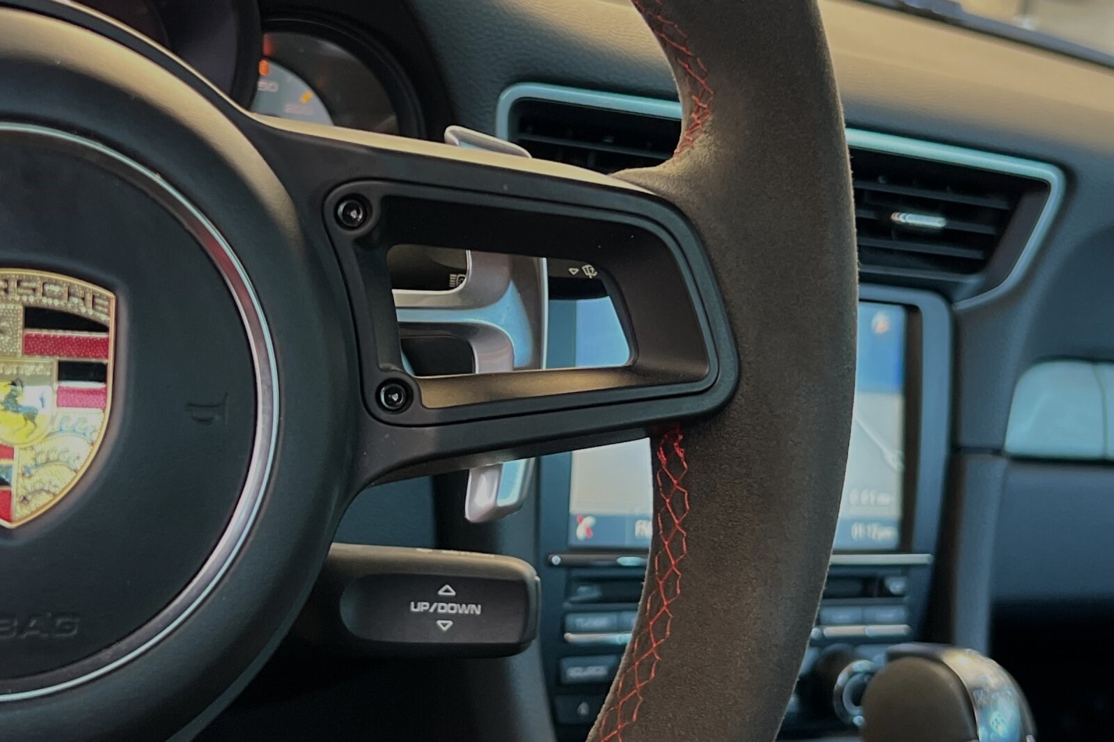 * For over 50 years, no car has remained so instantly recognizable. The new 911 exemplifies this apparent contradiction. The tapering roofline has been lowered, exposing fewer surfaces to the air. The front track has been widened for improved cornering stability. Circling around to the side of the 911, one can see that the exterior mirrors are now mounted directly on the doors resulting in improved aerodynamics as well as a longer wheelbase, and shorter overhangs at both front and rear. The new engines follow the time honored 911 design: six horizontally opposed cylinders providing a lower center of gravity. Output has been increased to 350hp in the 911 Carrera , 400hp in the 911 Carrera S, 475hp in the 911 GT3, 520hp in the 911 Turbo, and 560hp in the 911 Turbo S. This power is transmitted by the introduction of a 7-speed manual gearbox or, optionally, the Porsche Doppelkupplung transmission, which offers gear changes with virtually no interruption in the flow of power. The refined steering wheel features a high-grip smooth-leather rim. Fitted as standard, the 911 has refined sport seats that combine comfort with racing-style support and now feature 4-way power adjustment. The traditional choice of interior options includes innovative additions. A new lighting design package allows you to customize the level of illumination in the footwells, ignition lock, storage compartments, rear compartment, and overhead console. Technical features include a high-resolution, 4.6-inch full VGA TFT color display for viewing onboard computer, audio system, or navigation information. A nine-speaker, 235-watt audio system is standard but can be upgraded to a Bose Surround Sound System or Burmester High-End Surround Sound System. Source: The Manufacturer Summary