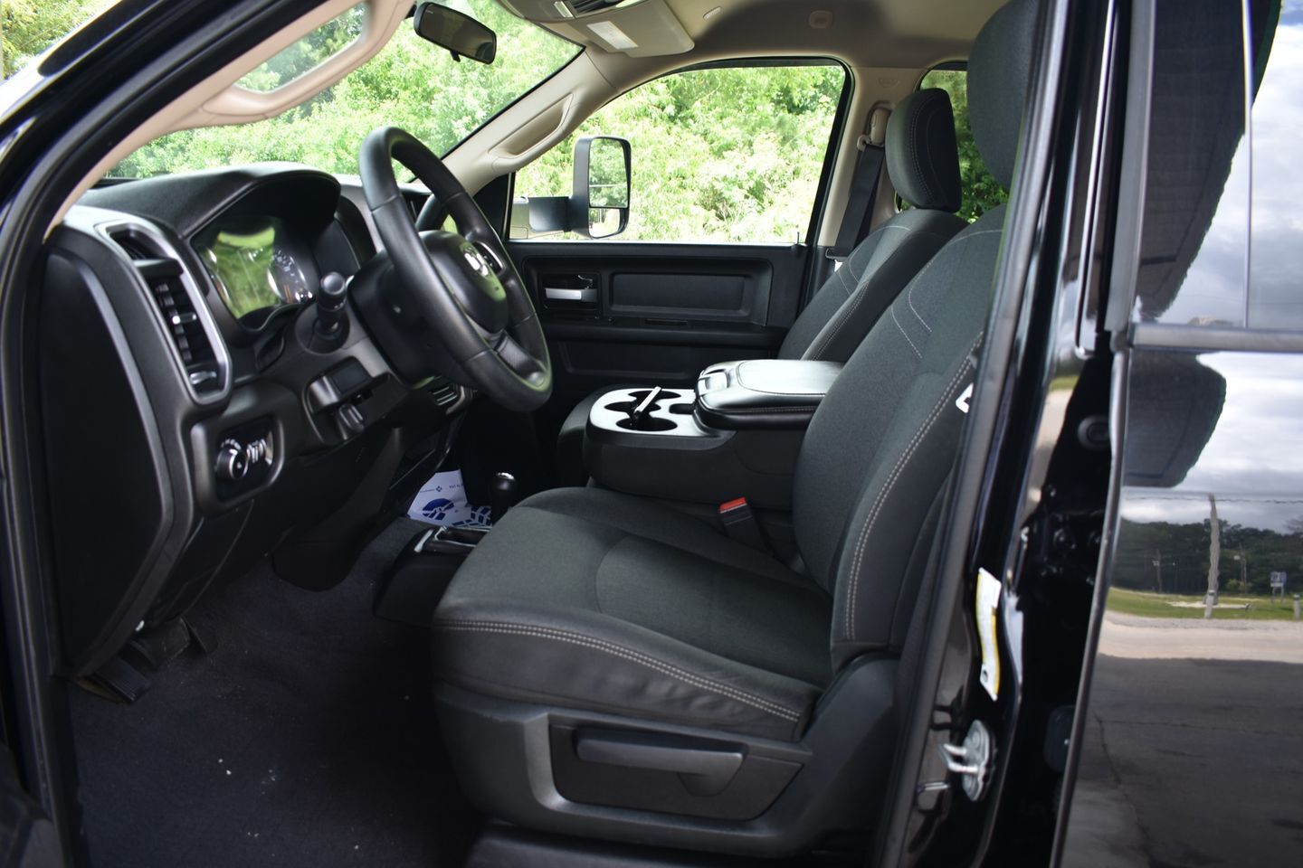 You are looking at a 2019 Dodge Ram 3500 Crew Cab 4x4. It is powered with a 6.7L HO Cummins Diesel I-6 and Aisin automatic transmission. It is equipped with power trailer mirrors, power windows, power locks, tilt, cruise, am/fm radio, spray in bed liner, factory hitch mounts,and receiver hitch. Also included are the owner's manuals and one keyless remote.