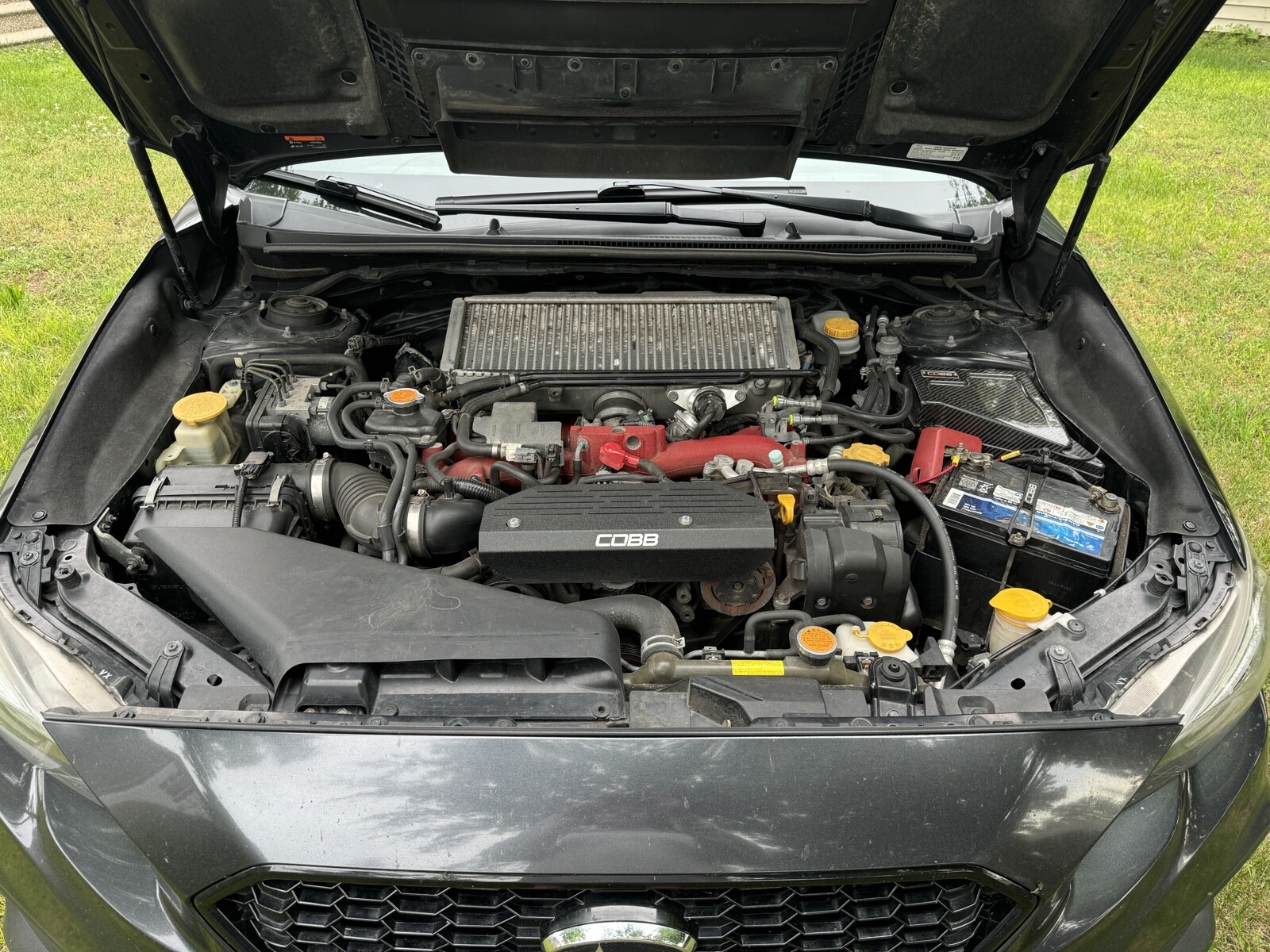 The vehicle currently has an Invidia Q300 Exhaust, Cobb GFI Catted Down Pipe, Perrin 20mm wheel spacers, Cobb Short Shifter and Cobbs hardened shifter bushings.