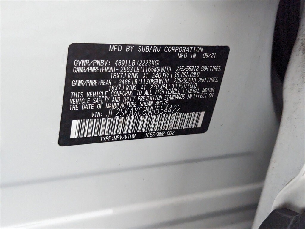 NEED DIRECT AND QUICKER ASSISTANCE? DIAL 561.454.1848 TO SPEAK TO A LIVE SALES CONSULTANT. Ready For Immediate Delivery, Passed Dealer Inspection, Vehicle Detailed, Fresh Oil Change, 4-Wheel Disc Brakes, 9 Speakers, ABS brakes, Aero Crossbar Set, Air Conditioning, Alloy wheels, AM/FM radio: SiriusXM, Auto High-beam Headlights, Auto-Dimming Mirror w/Compass & HomeLink, Automatic temperature control, Brake assist, Bumpers: body-color, CD player, Crystal White Pearl Body Side Molding, Crystal White Pearl Door Edge Guards, Door Scuff Protector, Driver door bin, Driver vanity mirror, Dual front impact airbags, Dual front side impact airbags, Electronic Stability Control, Emergency communication system: STARLINK Safety and Security (Subscription Required), Exterior Parking Camera Rear, Four wheel independent suspension, Front anti-roll bar, Front Bucket Seats, Front Center Armrest, Front dual zone A/C, Front fog lights, Front reading lights, Front Side Sill Plates, Fully automatic headlights, harman kardon 576W Amp & Speaker System, harman/kardon Speakers, Heated door mirrors, Heated Front Bucket Seats, Heated front seats, Heated rear seats, Heated steering wheel, HVAC memory, Illuminated entry, Jasper Green Metallic Door Edge Guard (DIO), Knee airbag, Leather Shift Knob, Low tire pressure warning, Memory seat, Navigation System, Occupant sensing airbag, Outside temperature display, Overhead airbag, Overhead console, Paddle-Shift Control Switches, Panic alarm, Passenger door bin, Passenger vanity mirror, Perforated Leather-Trimmed Upholstery, Power door mirrors, Power driver seat, Power Liftgate, Power moonroof: Panoramic, Power passenger seat, Power steering, Power windows, Premium audio system: harman/kardon, Radio data system, Radio: Subaru Starlink 8.0 Multimedia Nav System, Rear anti-roll bar, Rear seat center armrest, Rear window defroster, Rear window wiper, Remote keyless entry, Roof rack: rails only, Security system, Speed control, Speed-sensing steering, Split folding rear seat, Spoiler, Standard Model, STARLINK/Apple CarPlay/Android Auto, Steering wheel mounted audio controls, Sunshade - Windshield, Tachometer, Telescoping steering wheel, Tilt steering wheel, Traction control, Trip computer, Turn signal indicator mirrors, Variably intermittent wipers, Wheels: 18 x 7.0J Blk Machine Touring Alum Alloy. 2.5L 4-Cylinder DOHC 16V VVT 26/33 City/Highway MPG Lineartronic CVT