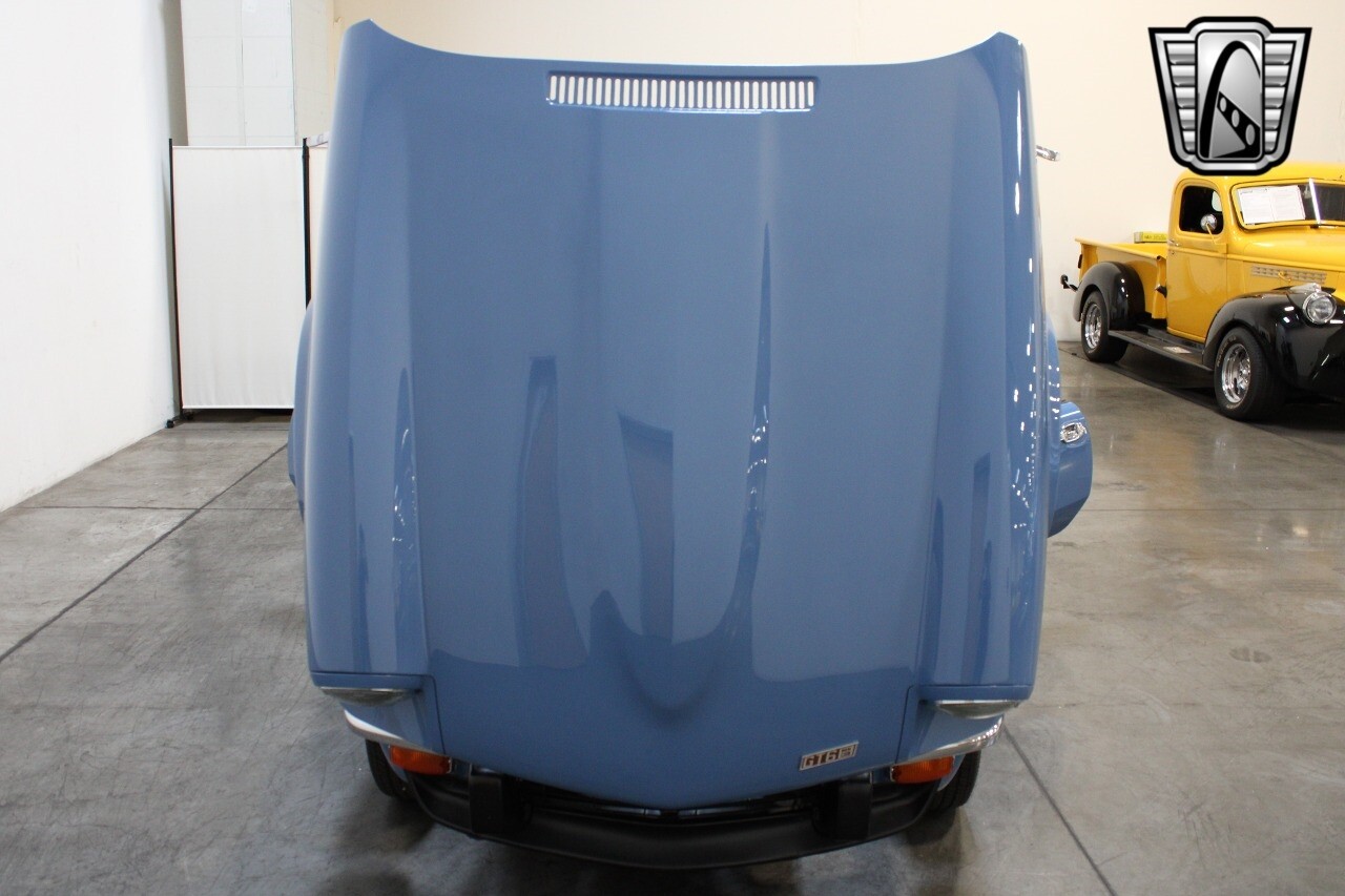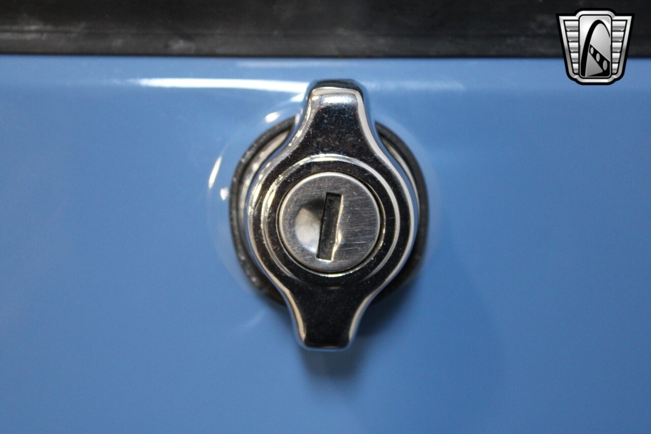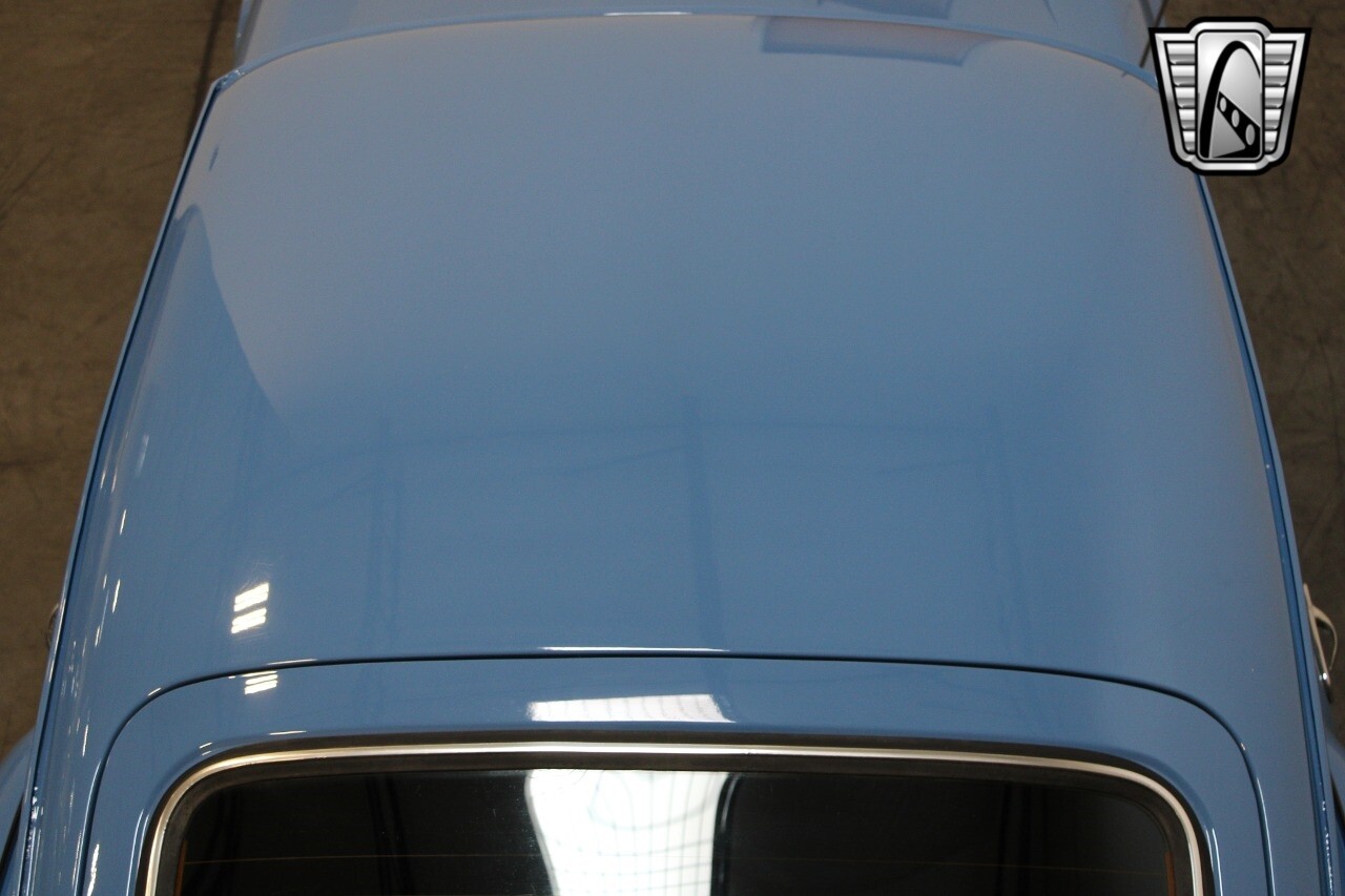 Inside, the black and white herringbone cloth interior provides a comfortable and inviting environment. The seats are equipped with seatbelts for added safety, ensuring peace of mind every time you hit the road. The vinyl interior details add a touch of classic charm to the vehicle, complementing its overall aesthetic.