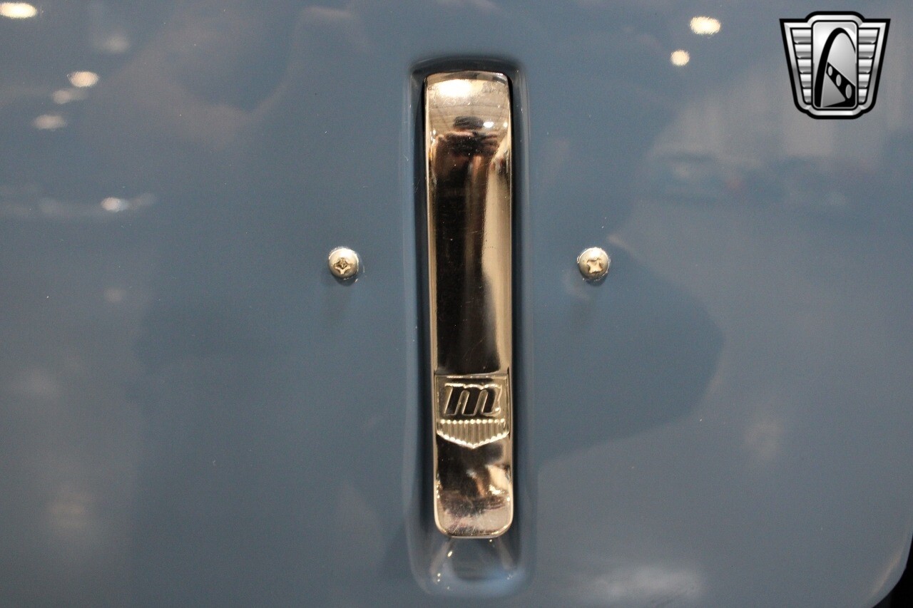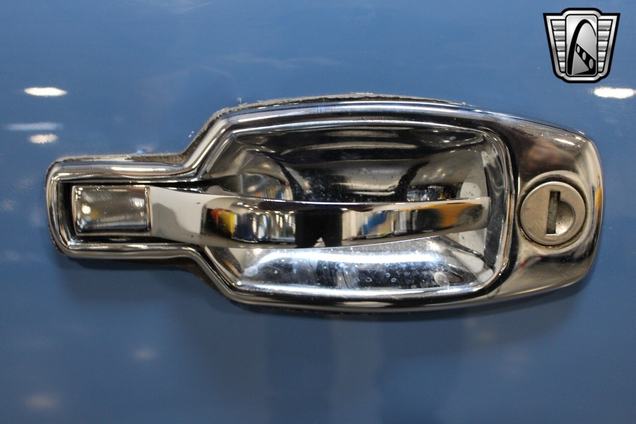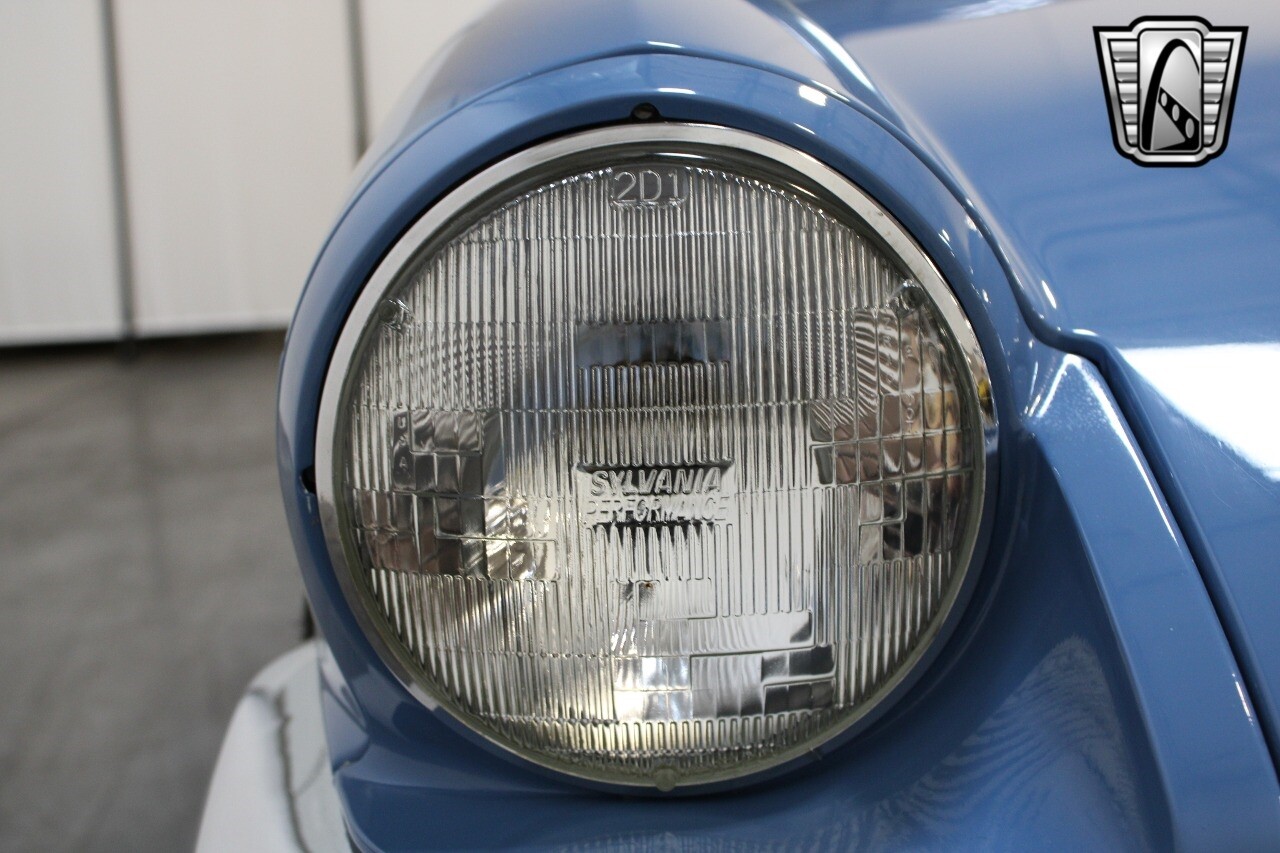 Inside, the black and white herringbone cloth interior provides a comfortable and inviting environment. The seats are equipped with seatbelts for added safety, ensuring peace of mind every time you hit the road. The vinyl interior details add a touch of classic charm to the vehicle, complementing its overall aesthetic.