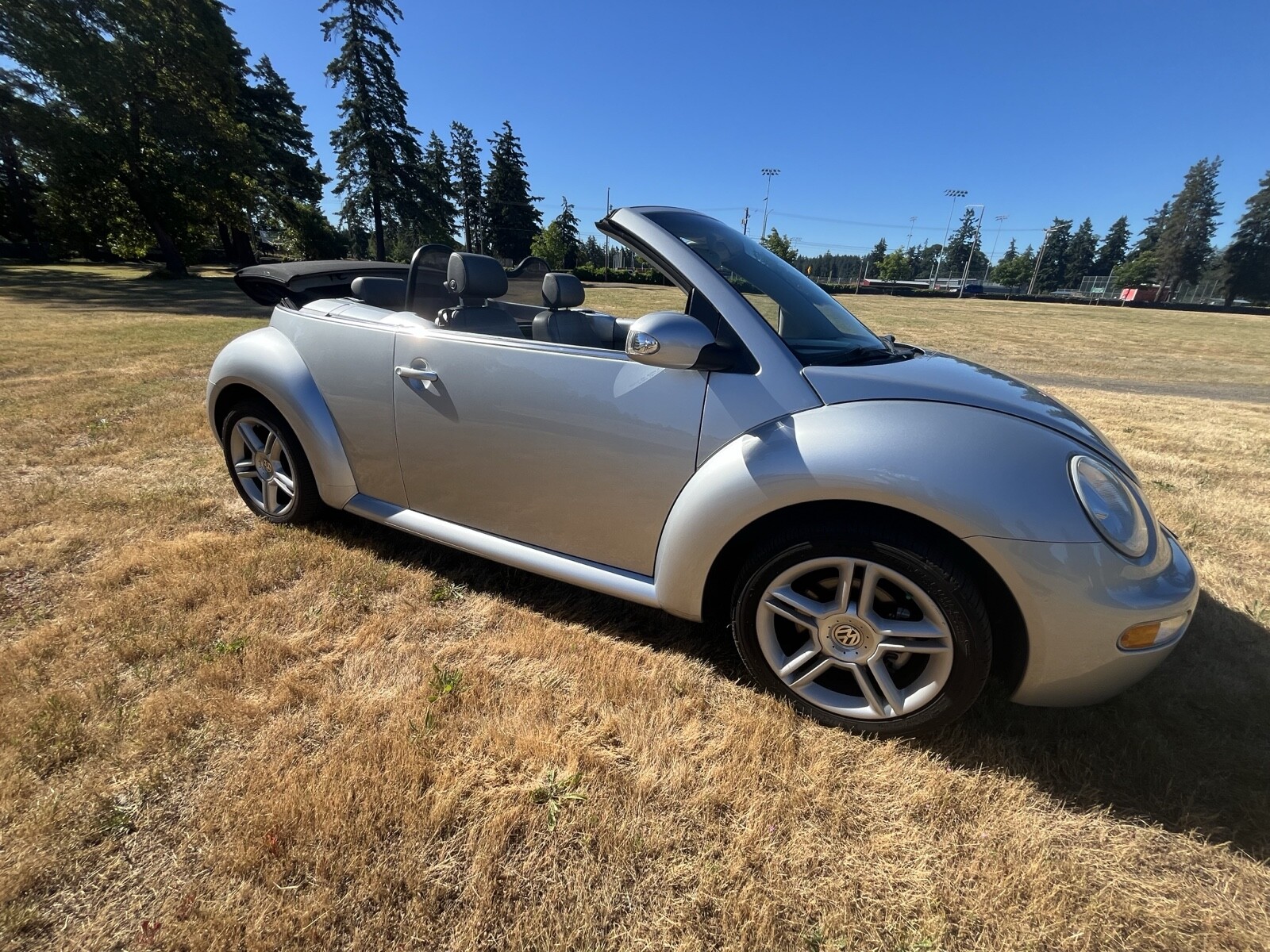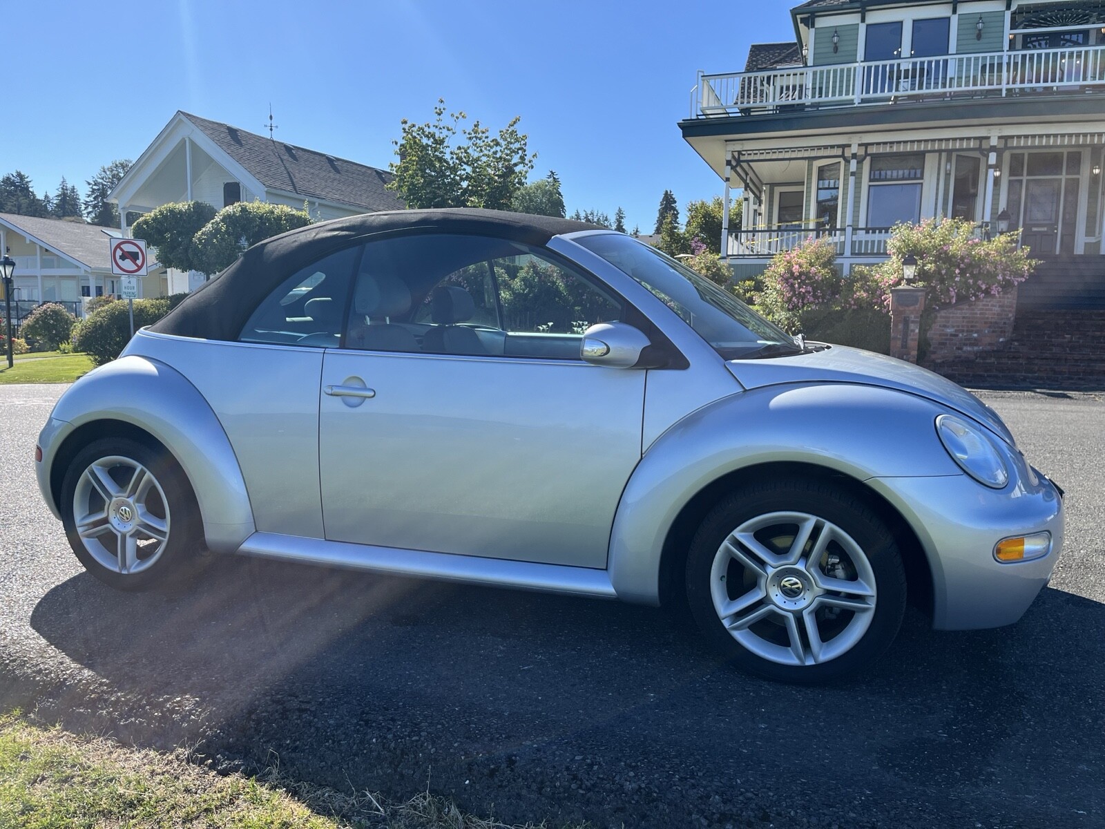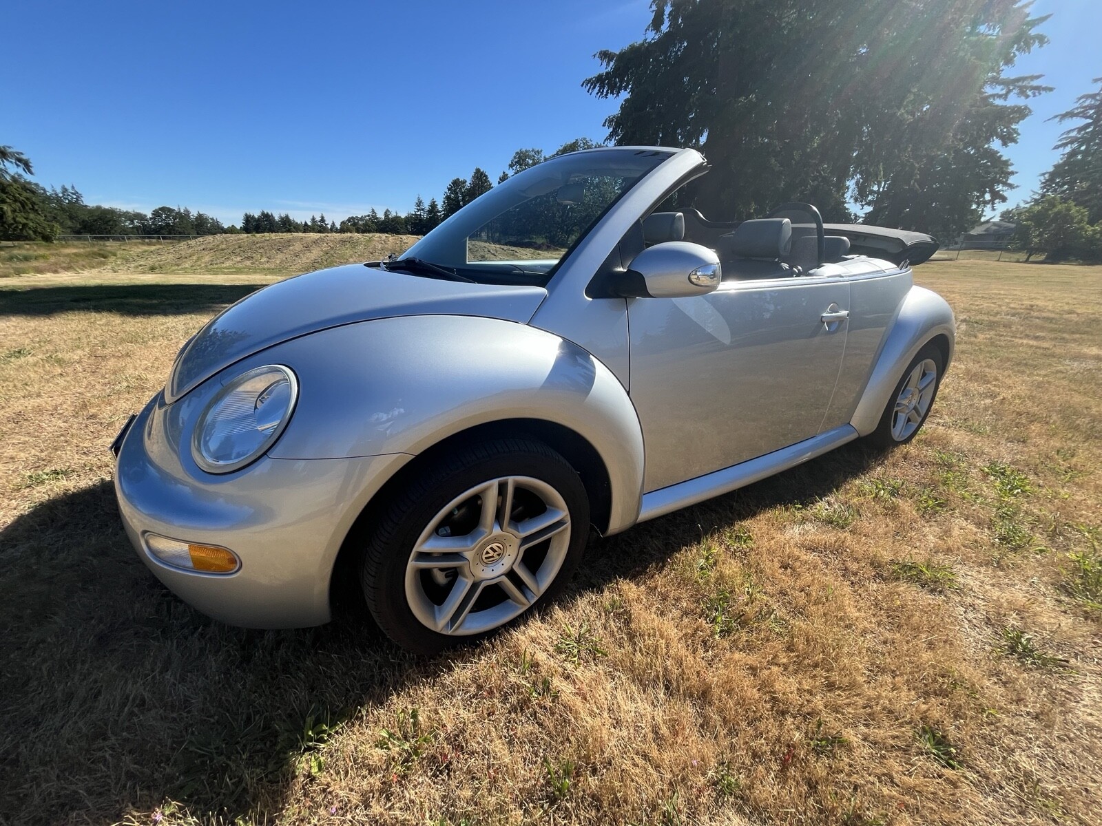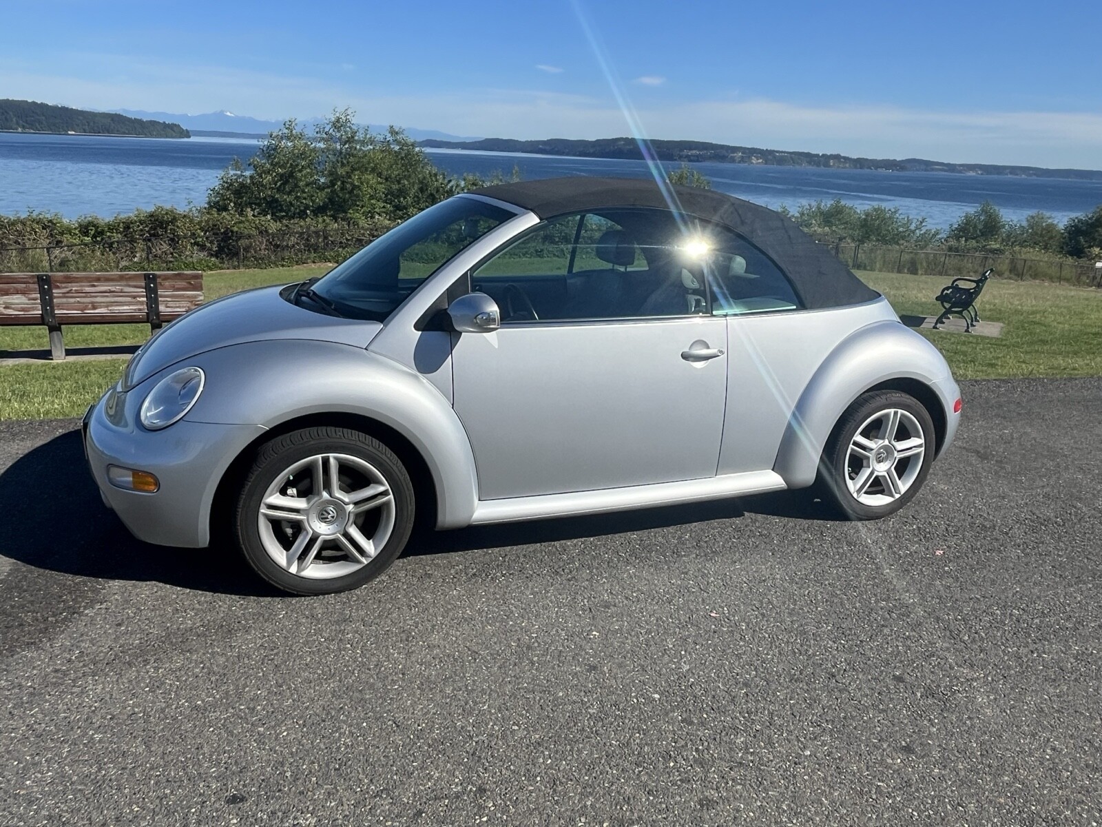 This 2004 Volkswagen New Beetle is a stunning original model that is being offered for sale. Only 2 owners since new same family ….sold local at Robert Larsen Volkswagen in Tacoma Washington . this car has never been exposed to elements or rough weather. Always a Fairweather driver.. The car runs smoothly and is mainly used for weekend drives, making it a perfect choice for anyone who wants a reliable and stylish vehicle for their leisure time. The exterior of the car is a Reflex Silver color that is both modern and timeless, while the title is clean and the mileage is a low 76120. as these cars are plentiful and available anywhere, what makes this car unique is the condition. you can drive this car anywhere or I can have it shipped to your door. Please call Jim at 253-625-4964. I can help with a shipping quote or airport pick up from SeaTac international.Seller's Notes