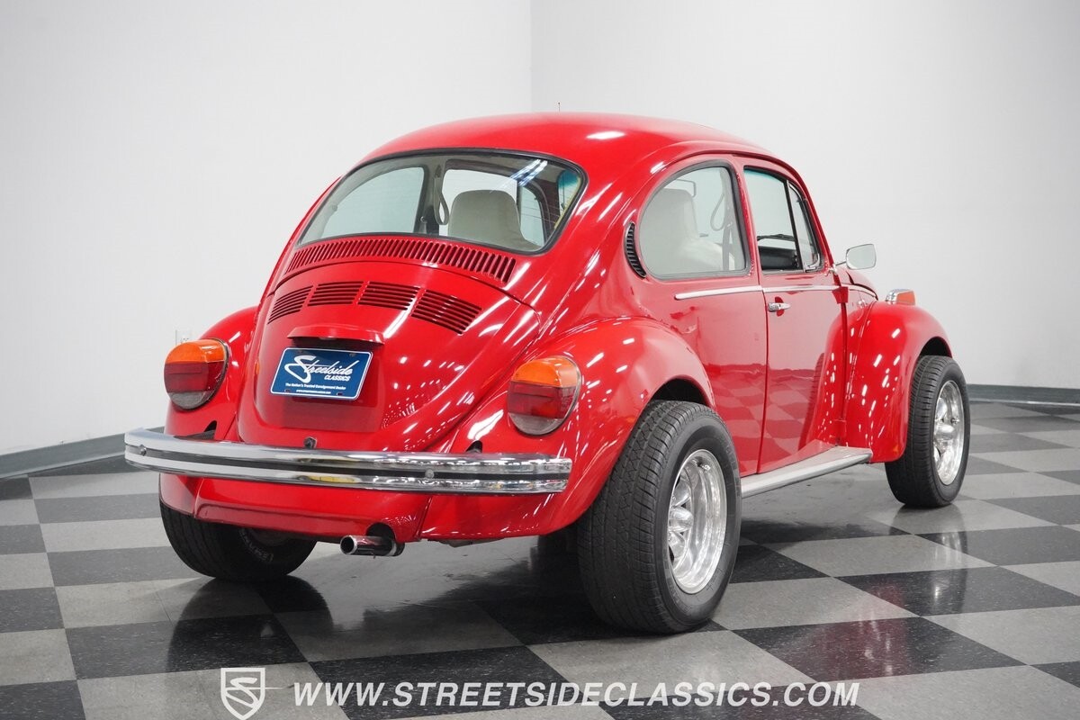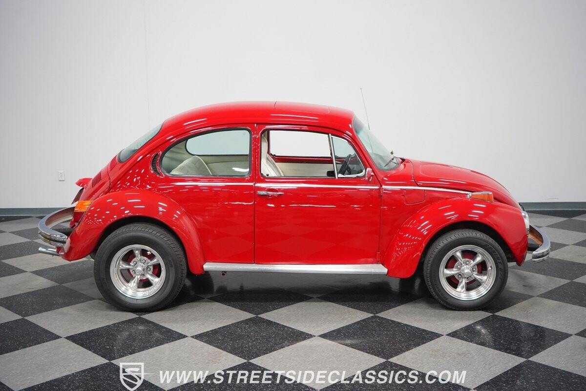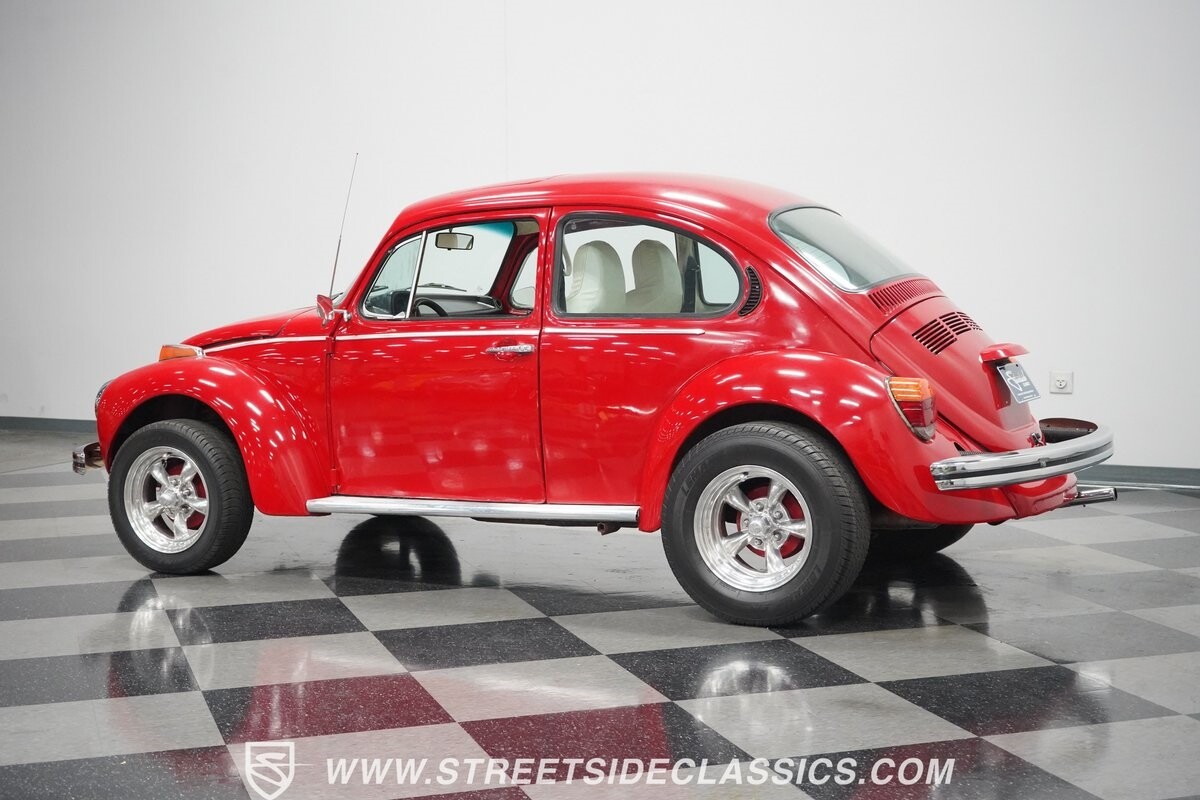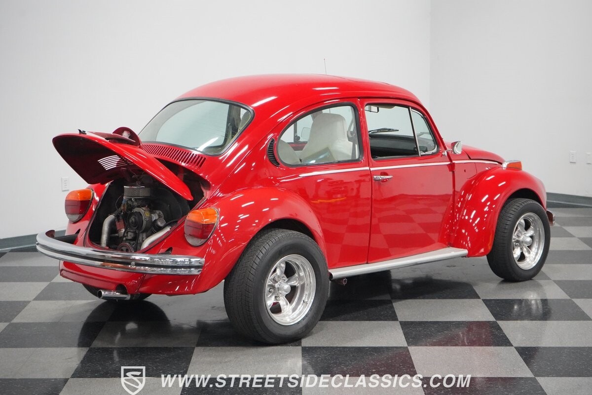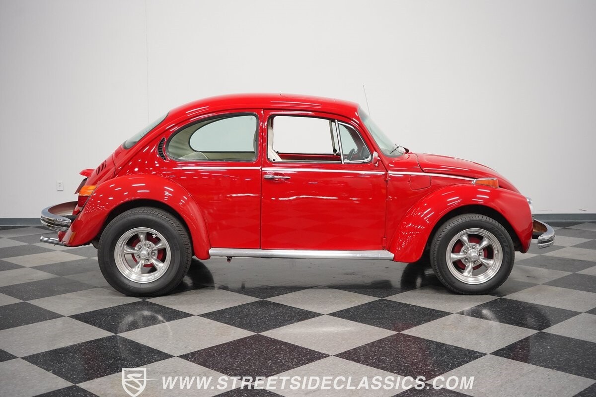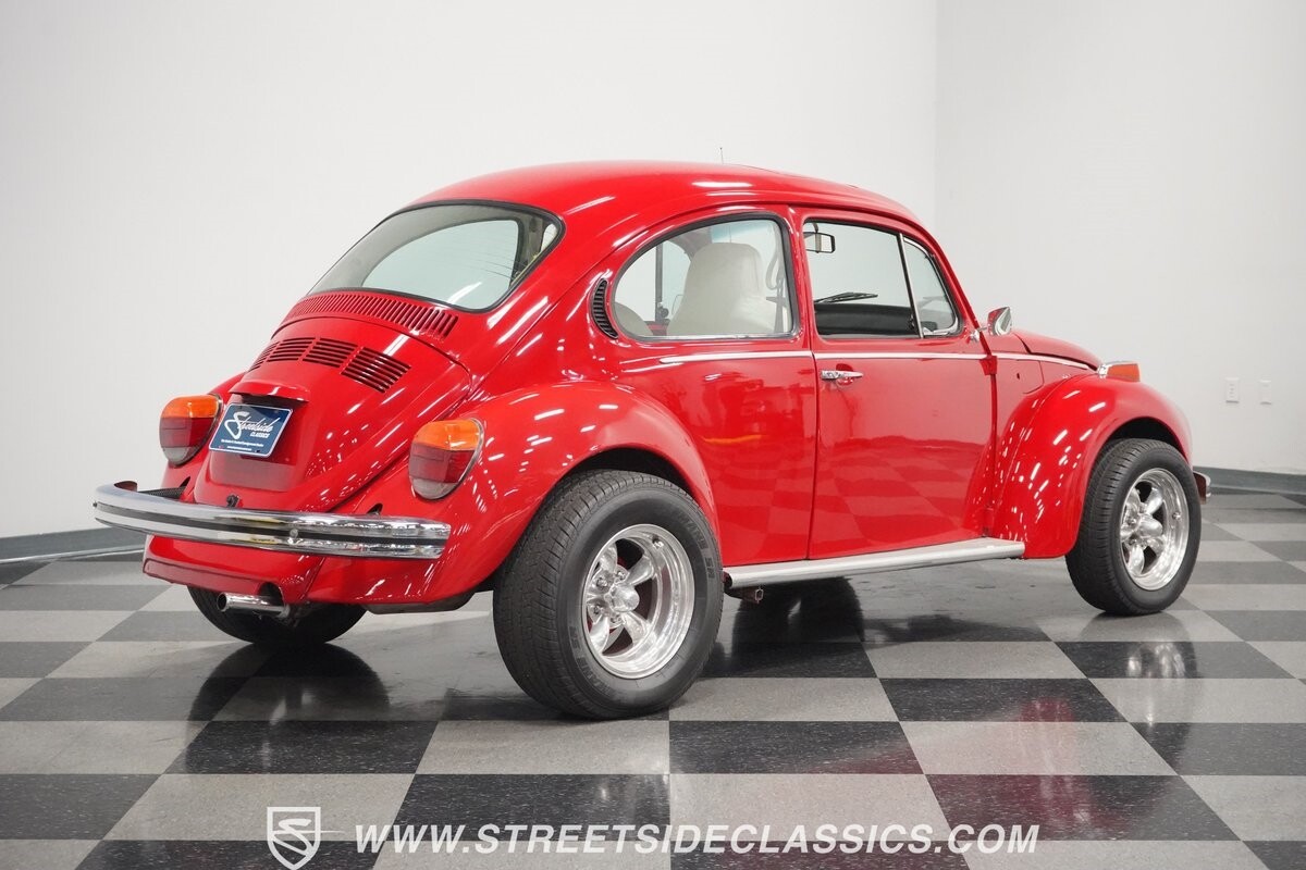 A fun stance, a fresh interior, useful features (like a sunroof and Bluetooth radio,) and a strong powerhouse make this 1975 Volkswagen Super Beetle a distinct and fun classic.