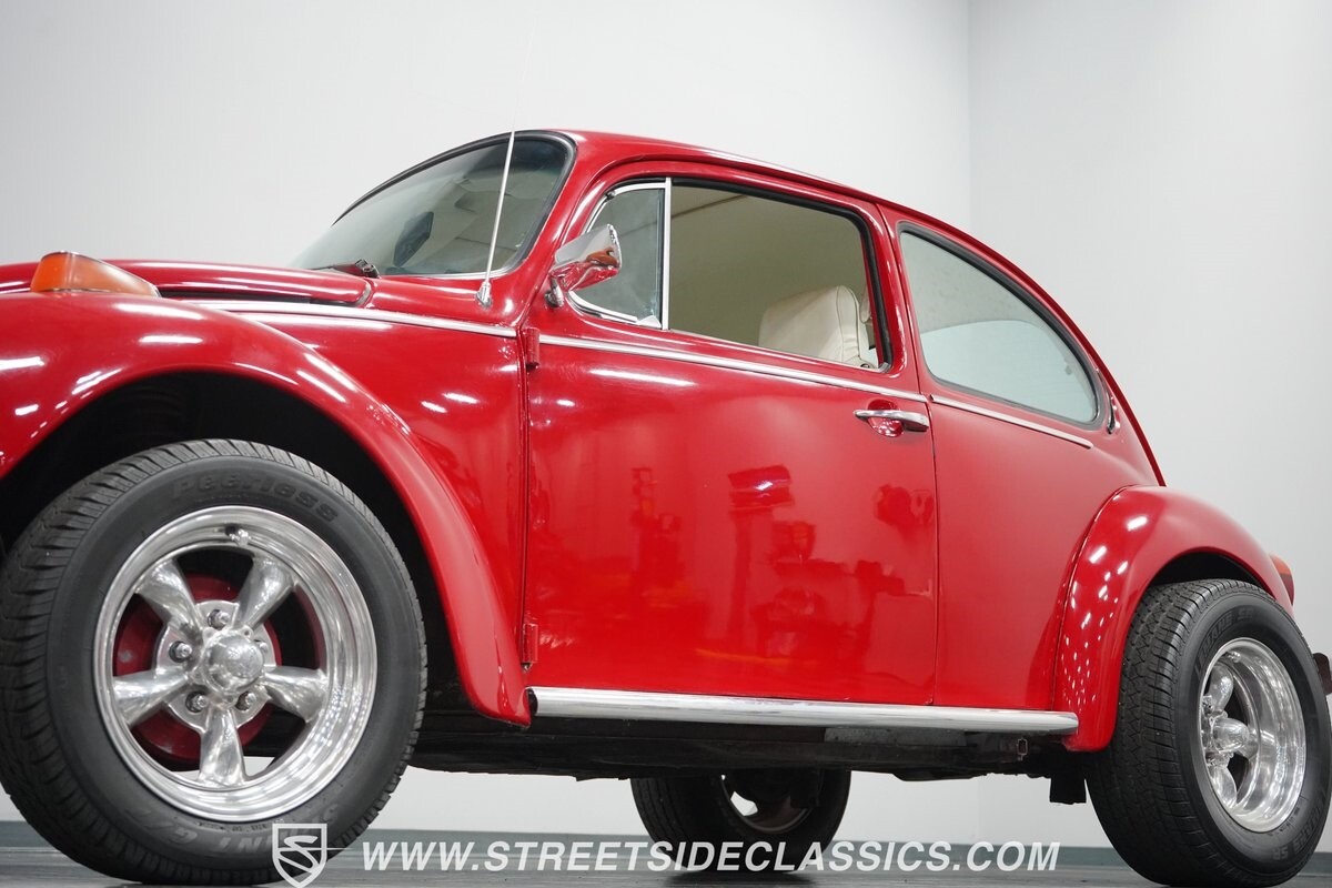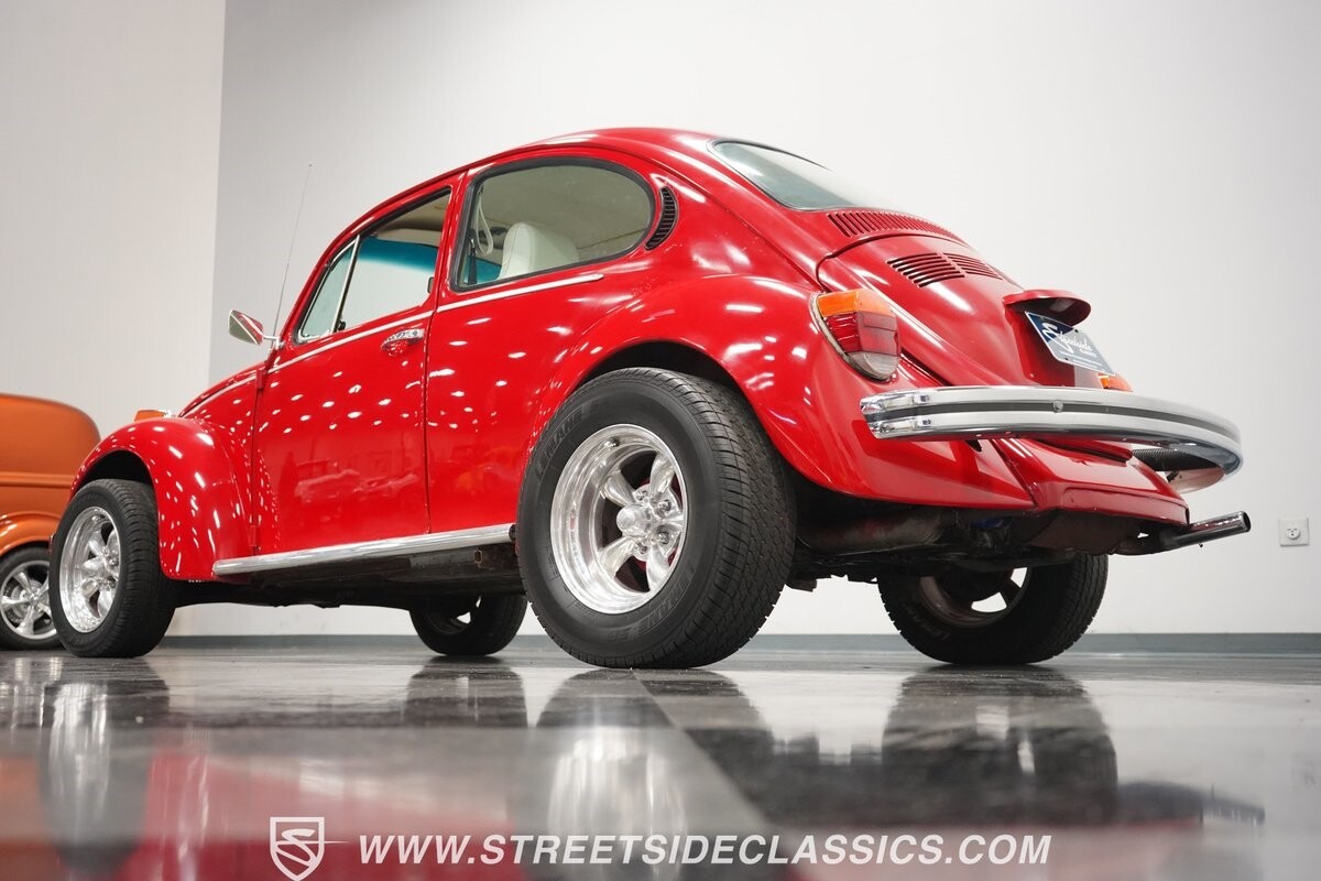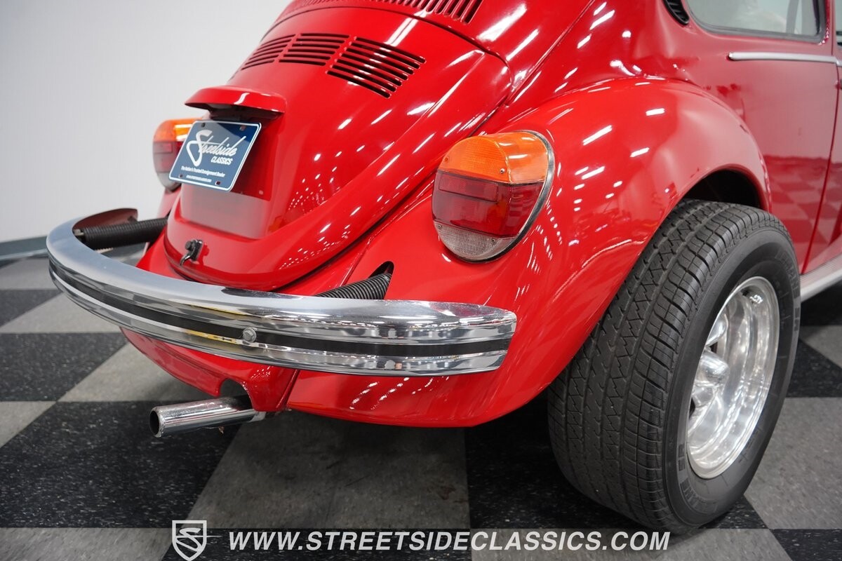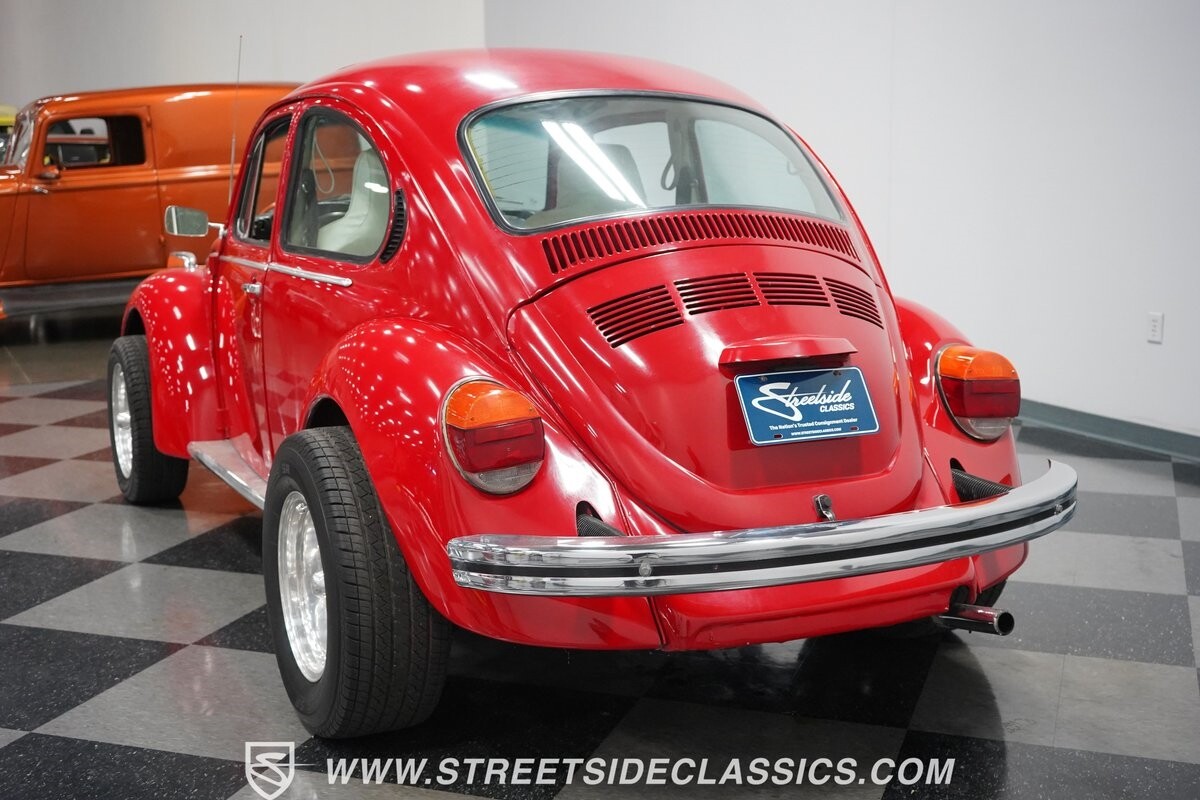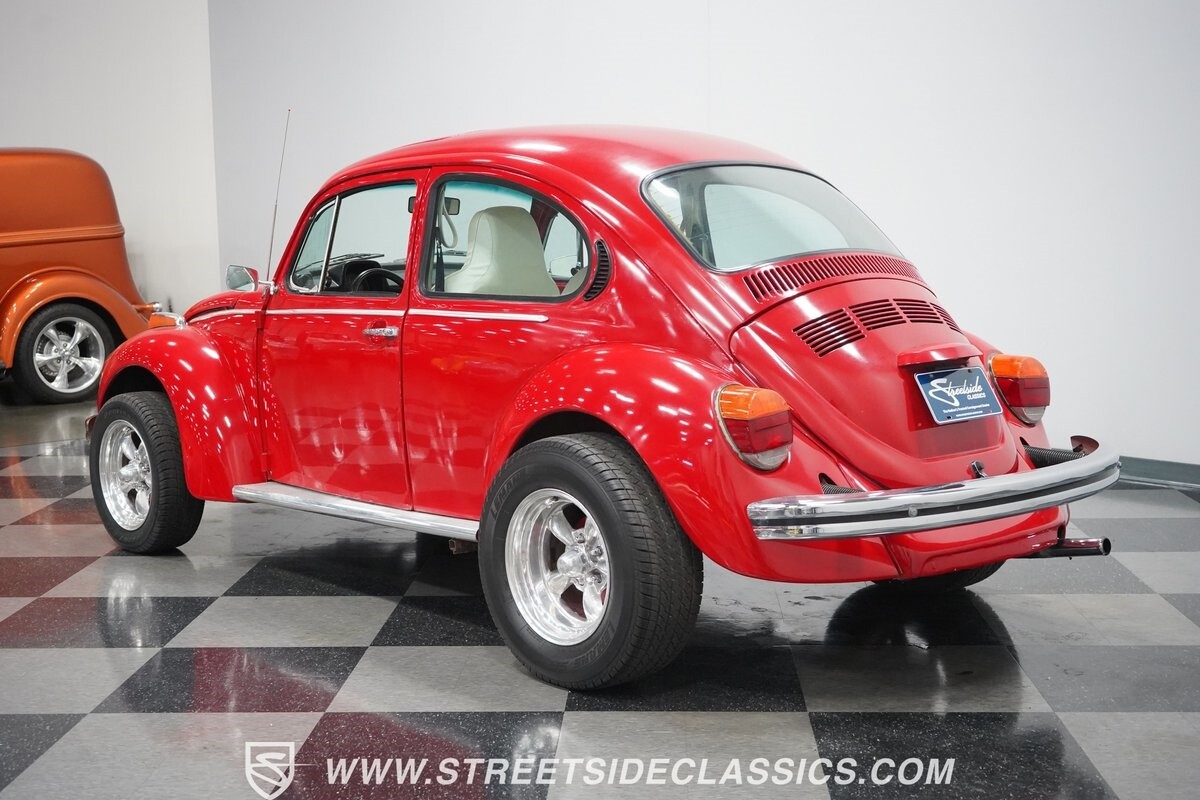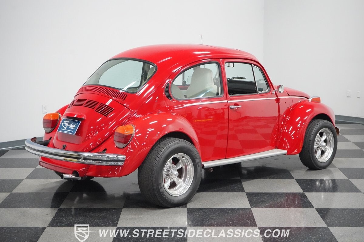 A fun stance, a fresh interior, useful features (like a sunroof and Bluetooth radio,) and a strong powerhouse make this 1975 Volkswagen Super Beetle a distinct and fun classic.