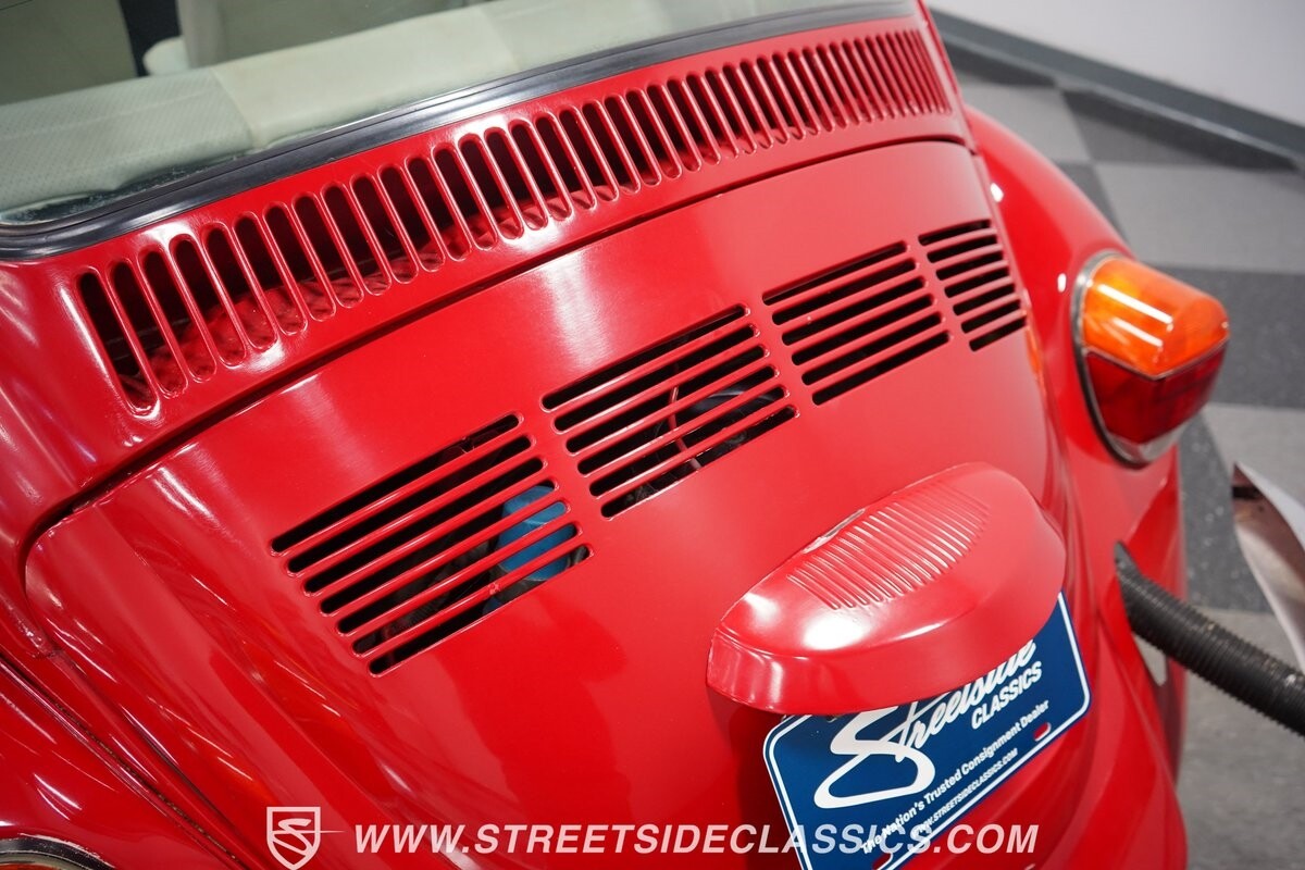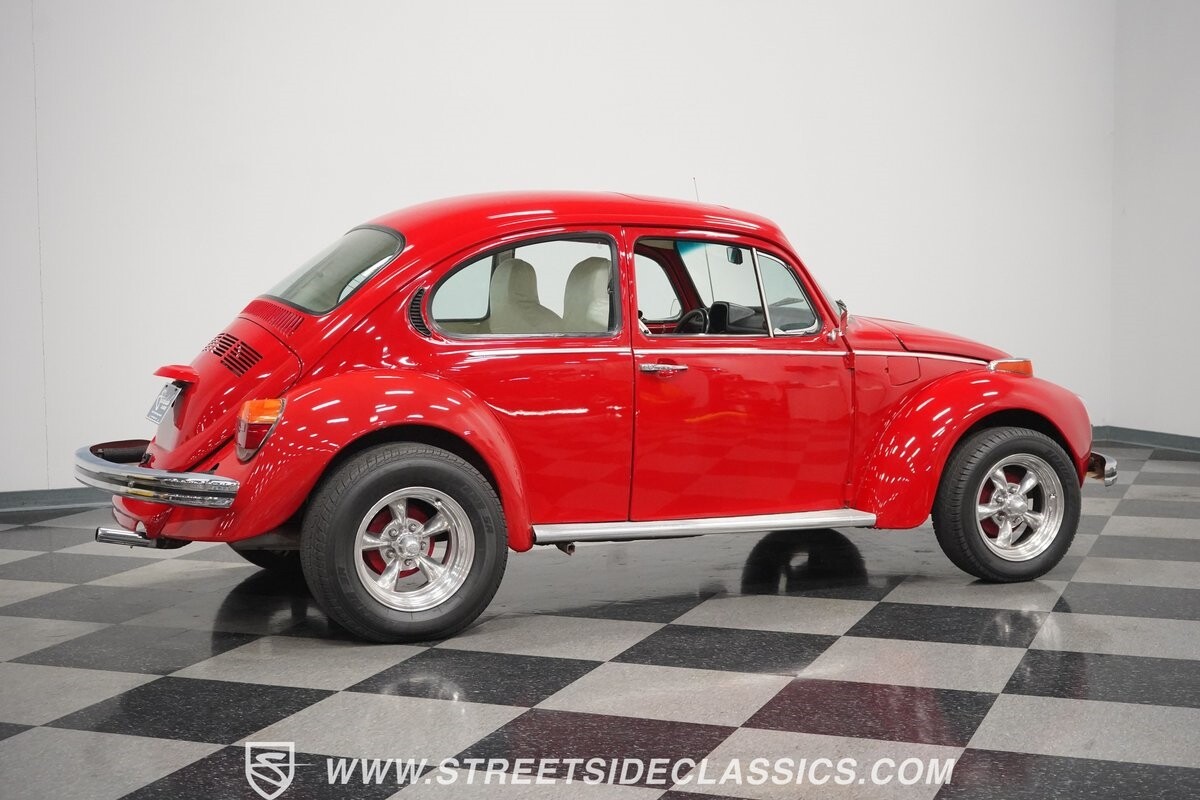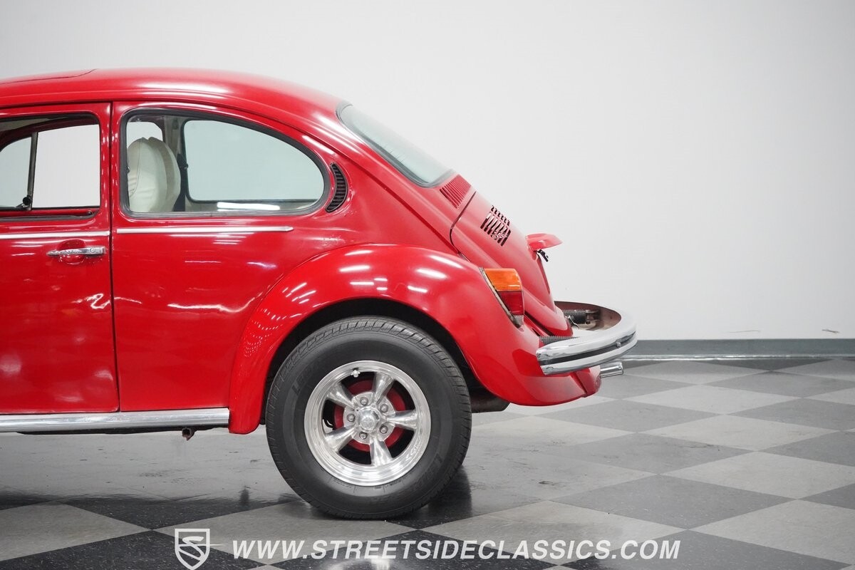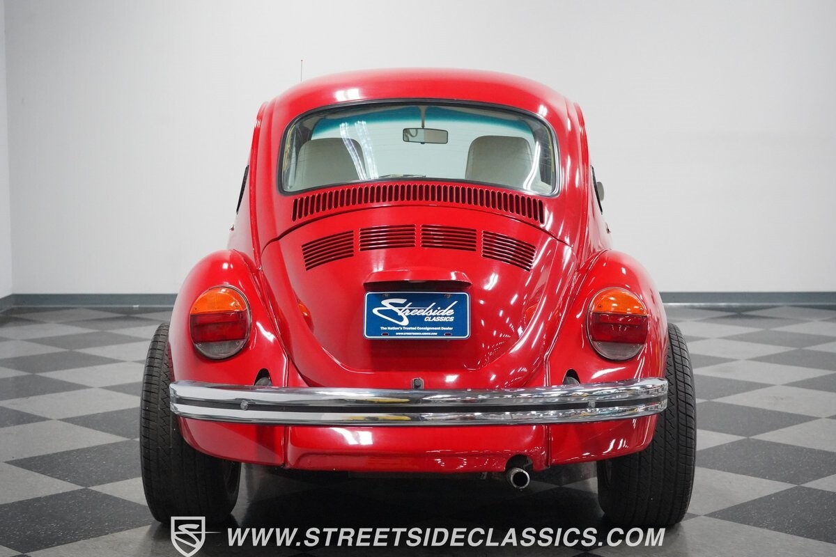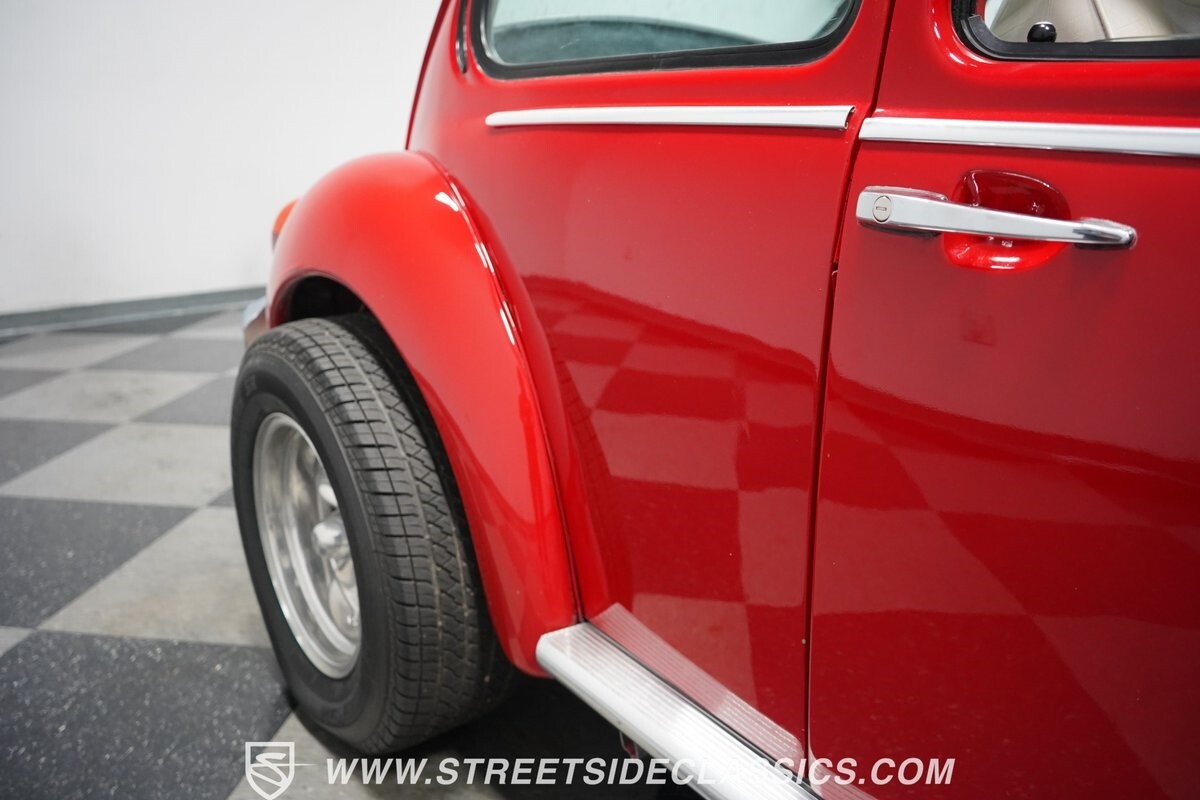 A fun stance, a fresh interior, useful features (like a sunroof and Bluetooth radio,) and a strong powerhouse make this 1975 Volkswagen Super Beetle a distinct and fun classic.