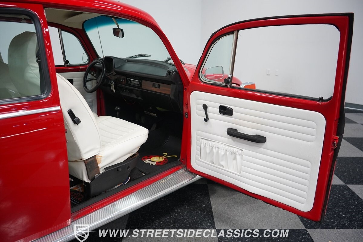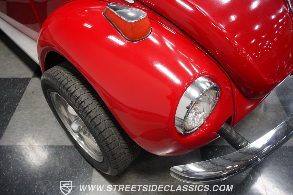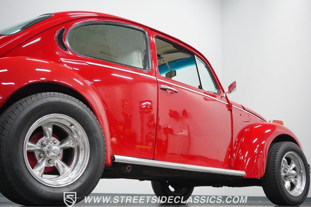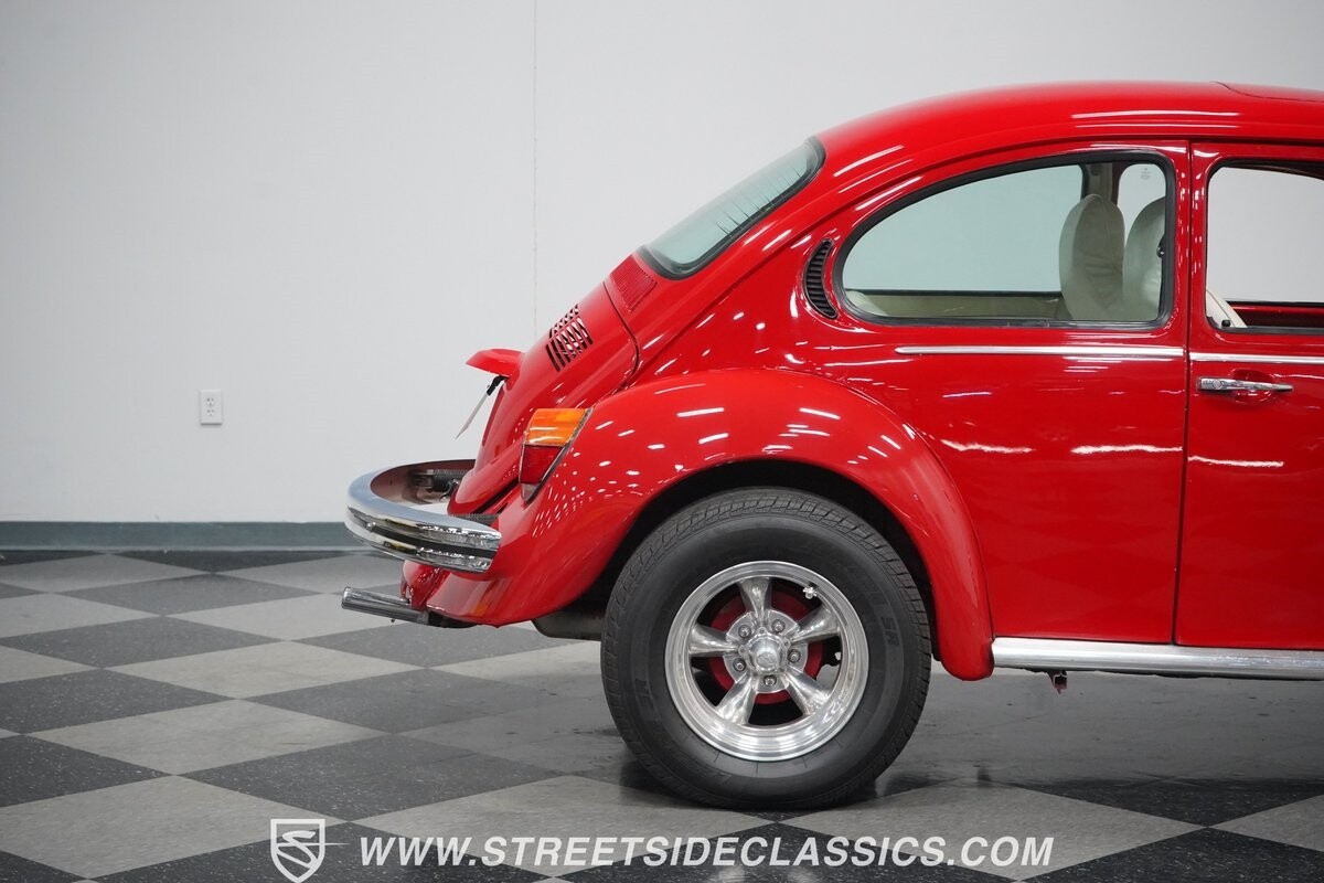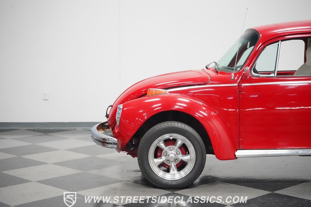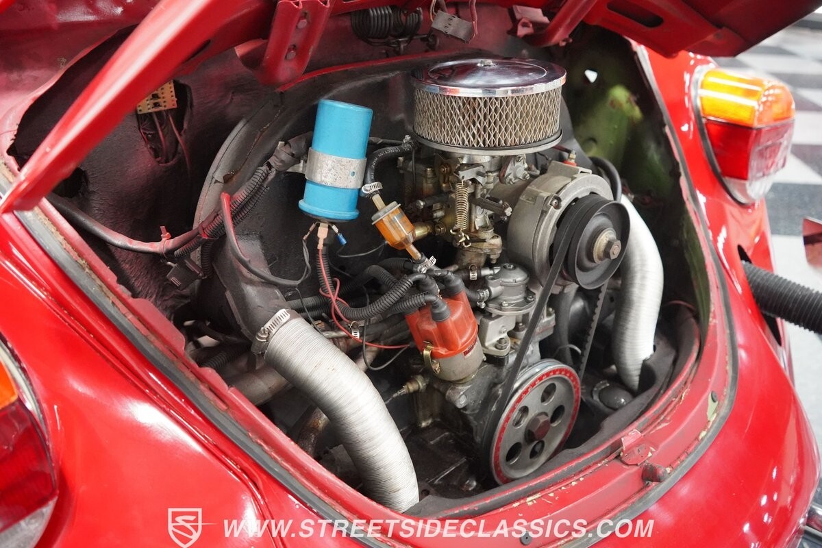 A fun stance, a fresh interior, useful features (like a sunroof and Bluetooth radio,) and a strong powerhouse make this 1975 Volkswagen Super Beetle a distinct and fun classic.