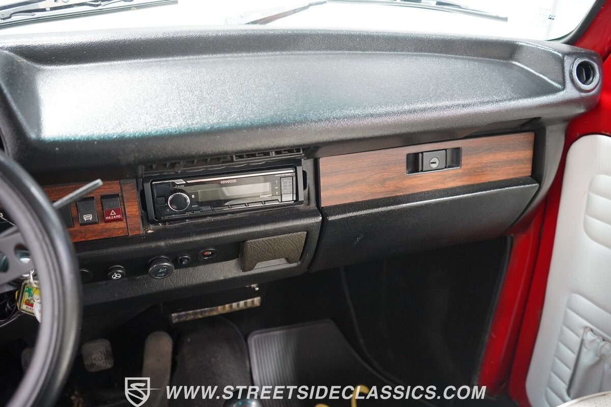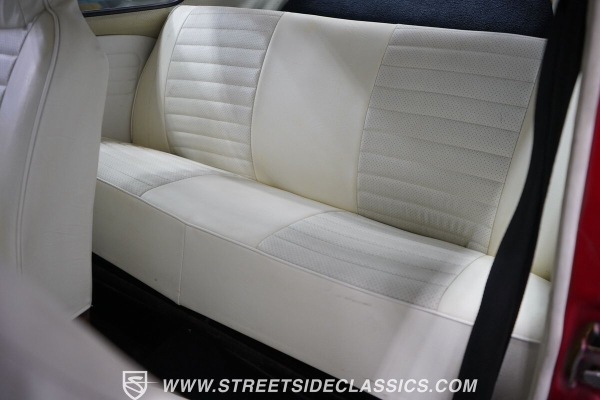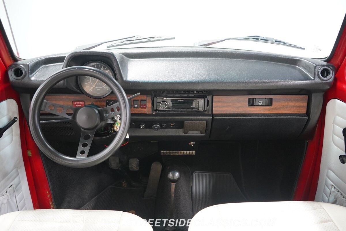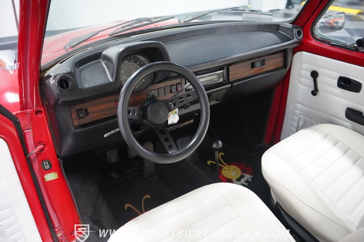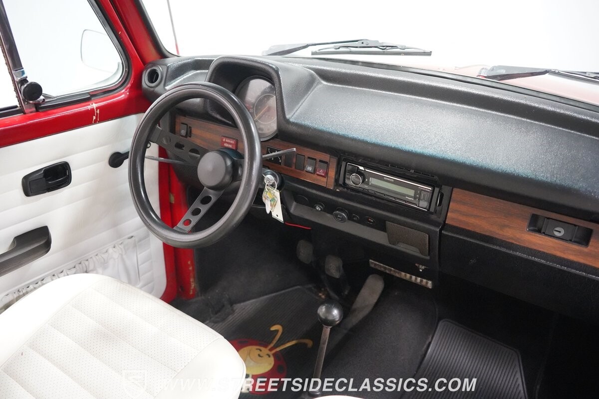 The bright white interior has a distinct style and a nice feeling thanks to a fresher investment. Classic wood-like trim, a smooth Super Beetle dash, and VW's good build quality make this inviting. Plus, you can tell this one likes to be a cruiser. Features like the sunroof, smaller diameter sports steering wheel, and upgraded AM/FM/XM stereo with USB and Bluetooth make the drive a lot more fun.