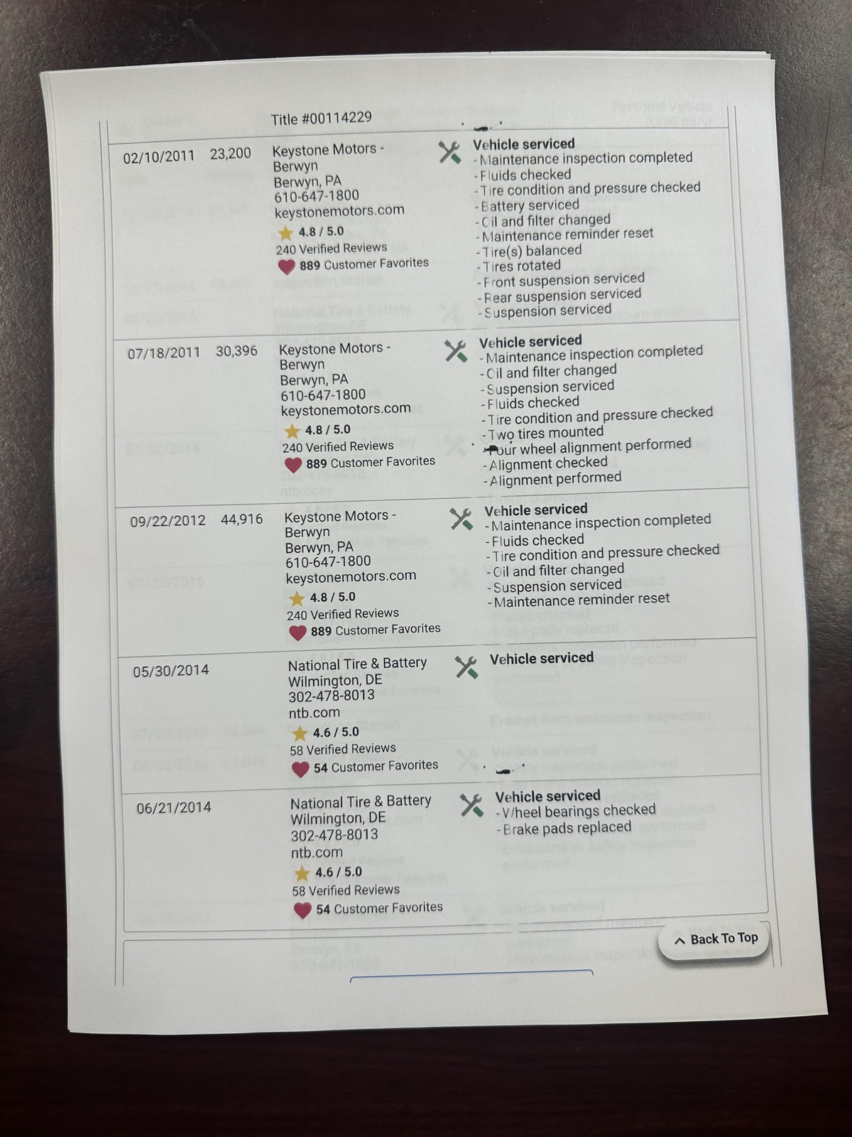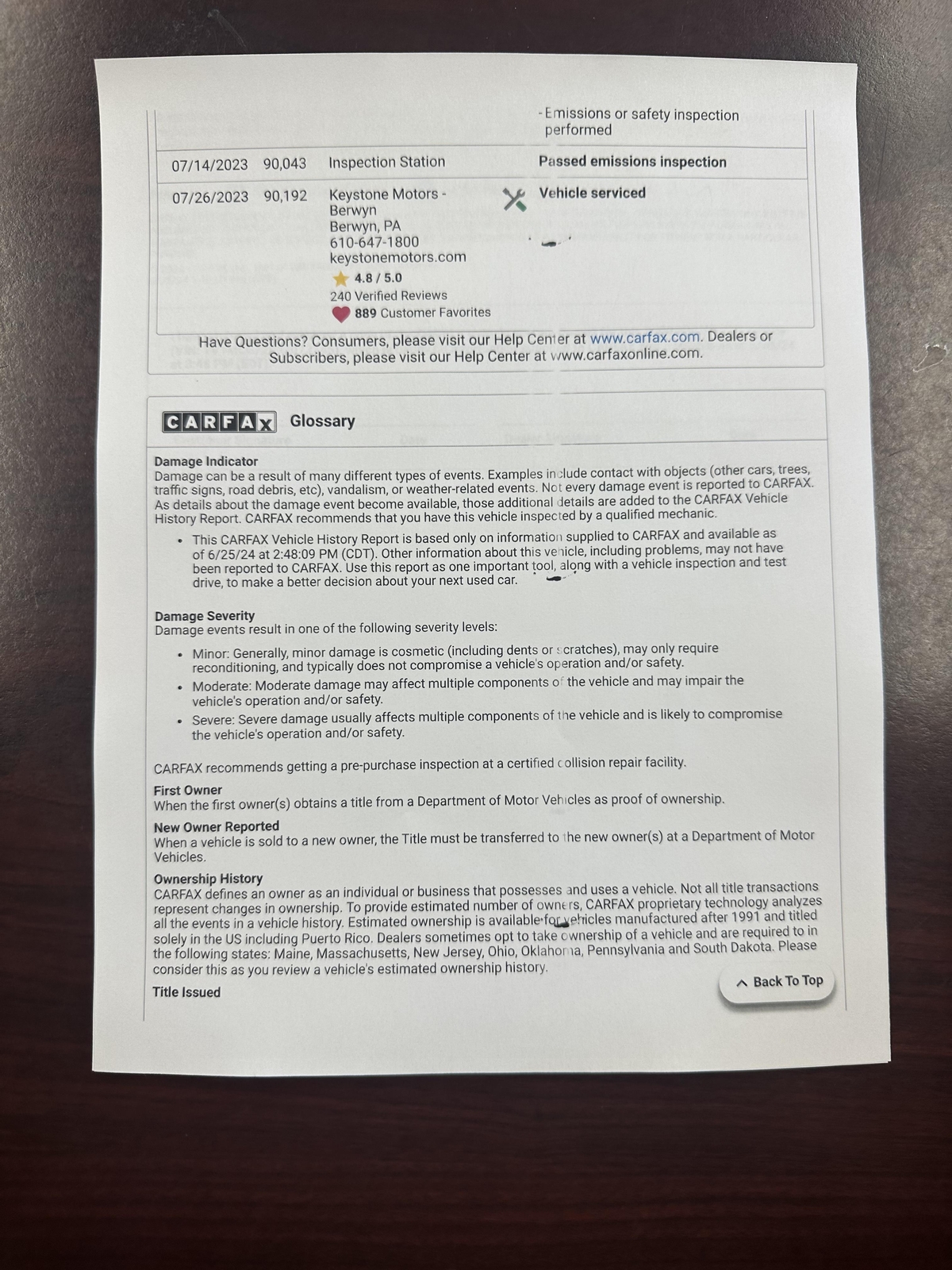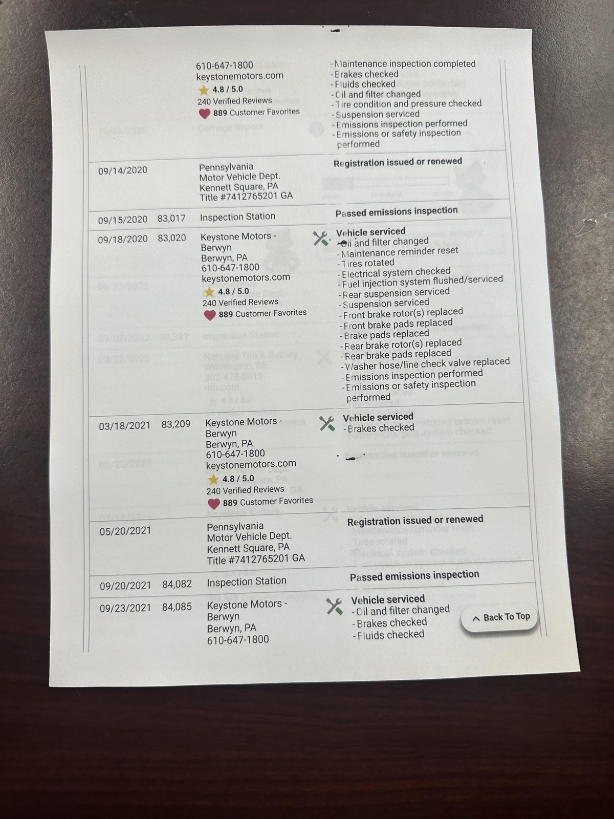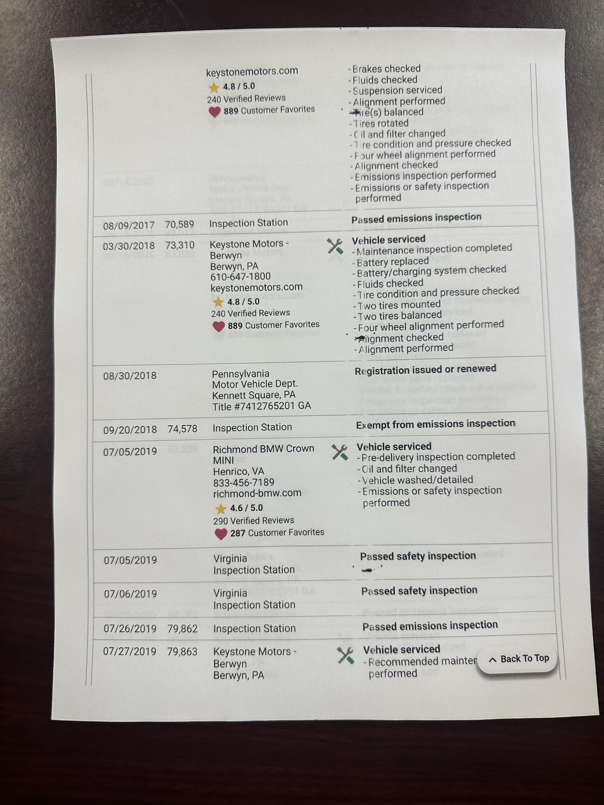 VEHICLE WITH HIGH MILES. WE RECOMMEND