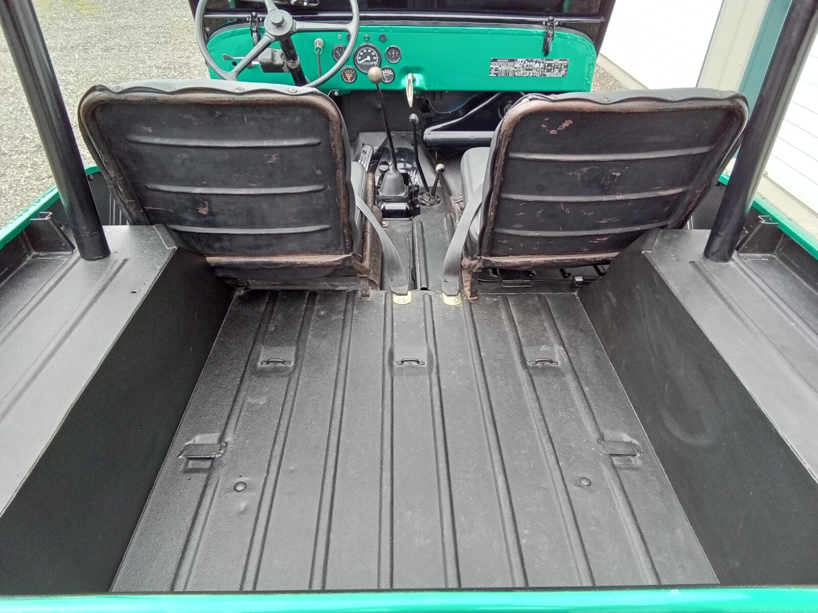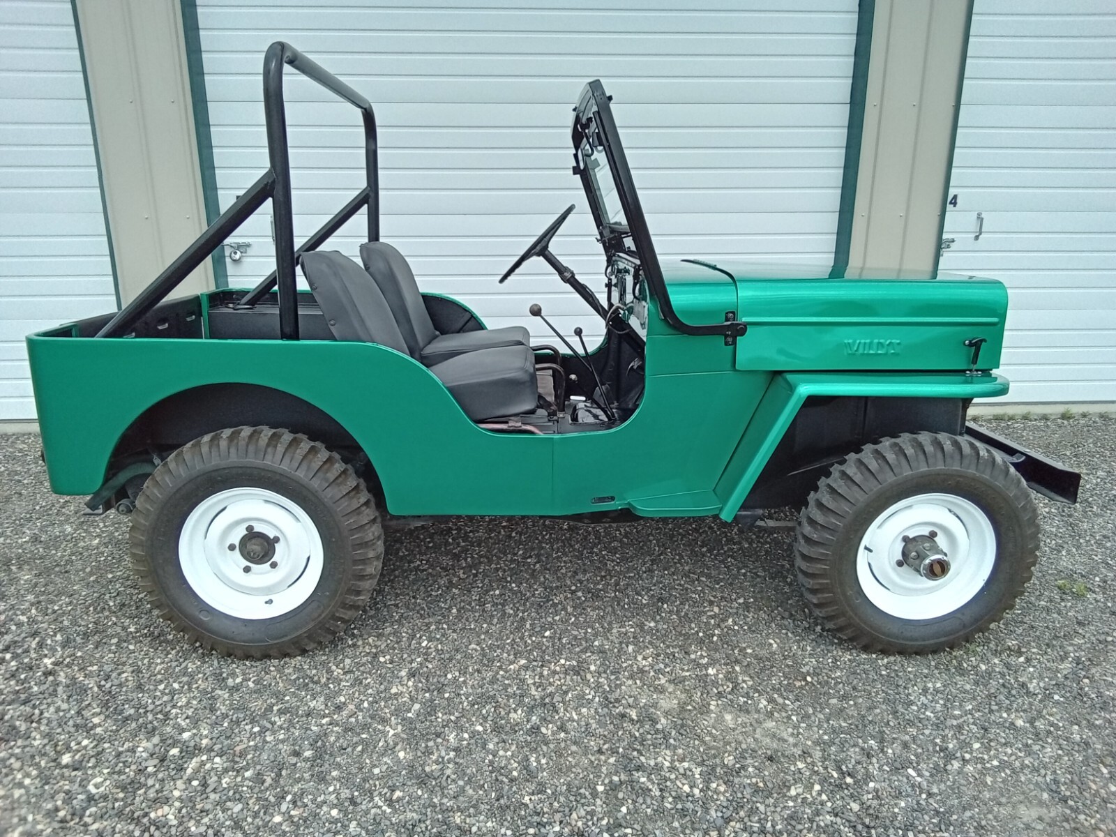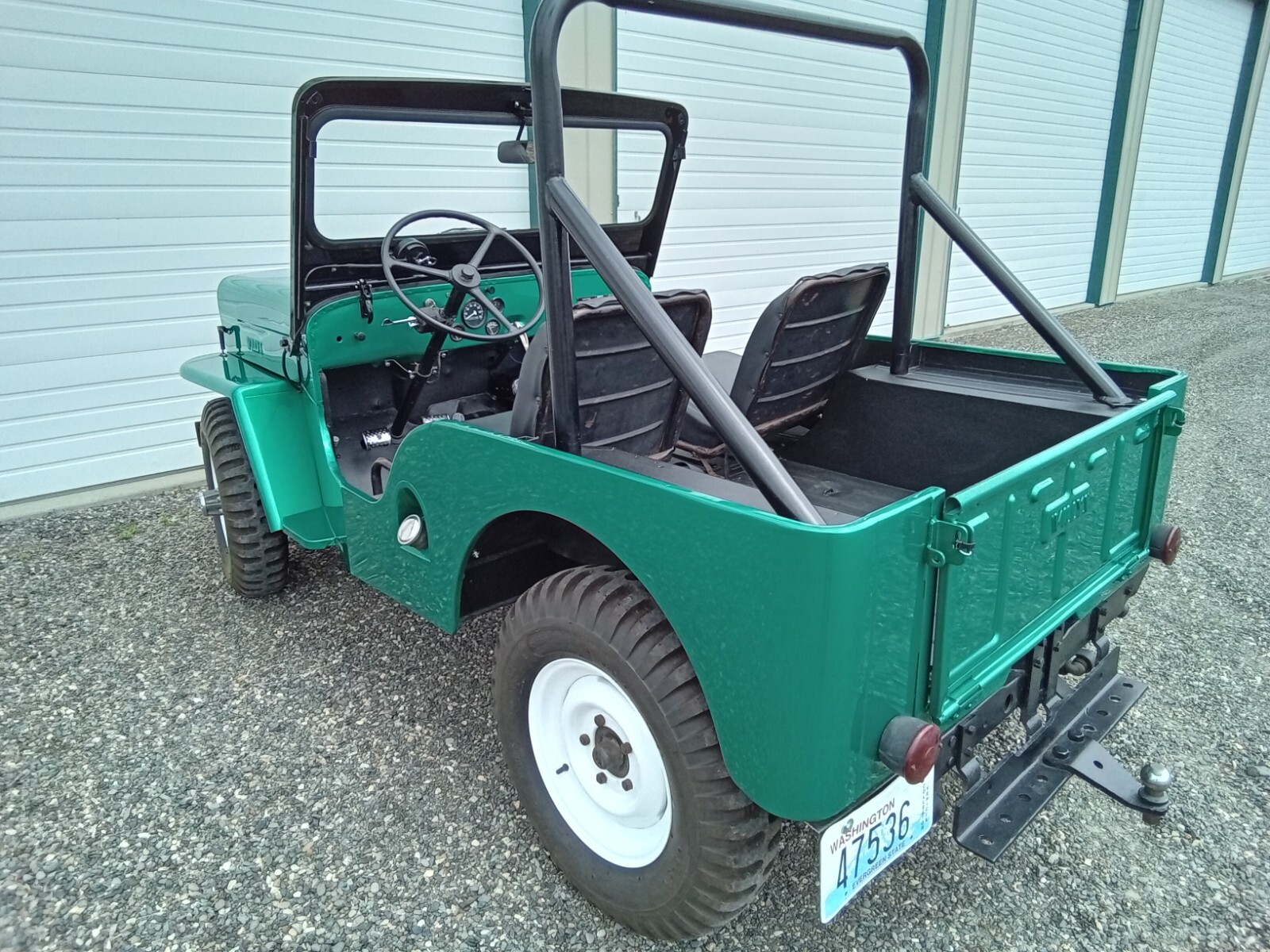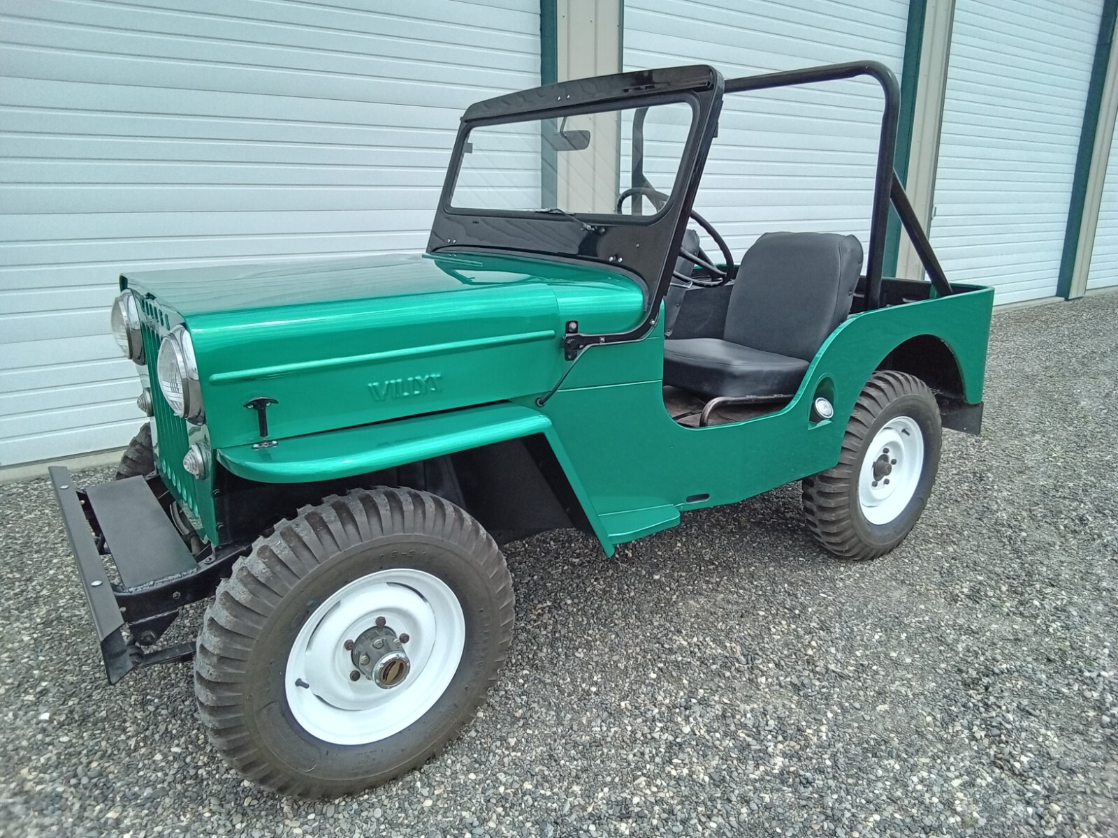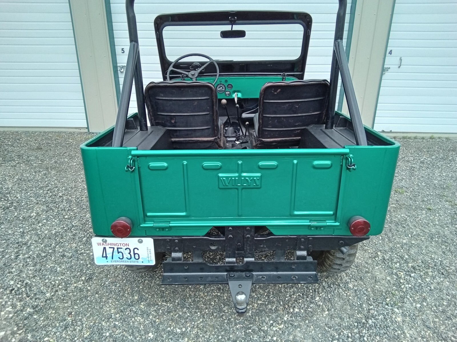 Up for sale is a nice 1954 Willys Jeep Hi Hood with Its original overhead valve engine and drive trane and with only 53,475 original miles on it. This is one of the nicer running and driving Jeeps that I have seen. Nice tight steering, very good brakes and smooth clutch. All its oils have just been changed, Front deferential, transmission, transfer case and rear deferential. At the same time the shop did a Compleat tune up on the jeep. New ignition points, Ignition condenser, new distributor cap, new spark plugs, new choke and throttle cables and new antifreeze. Only 50 miles have been put on the jeep since the tune up and service. (stars easy and runs nice) New paint was applied over very nice body in the Willys Jeep color "Beryl green". Also, the interior floors were coated with fresh black coatings. (No rust ever on this Jeep. and very nice paint work) A set of tailgate chains come with the Jeep, but this owner didn't want to install them as he didn't want to scratch the beautiful paint work. The original 5 wheels have been sand blasted and powder coated in white and a new set of five cookie cutter tires are on the Jeep and they only have 50 miles on them, the spare has 0 miles. A set of new Warn front hubs have also been installed and it has all new shocks. The Jeep is still running it's 6 Volt system, but the starter switch is now with the key not the original floor starter button. A new roll bar and new front bumper were also installed. A set of new seat belts are in place for safety and a new set of seat covers are on the original seats. The parking brake is not working and needs looked at and the fuel gage is not working, but everything else dose work. (Nice running and driving Jeep) I'm listing the Jeep for a friend, and I will take all questions to him. He has only put 50 miles on it in the last 8 years. and has owned it for 10 years. He said he has been enjoying it and the restoration proses but hasn't used it. Now it is time to sale. (I drove it and it runs and drives nice) Buyer is responsible for shipping and all shipping costs. We will help with loading on our end and in anyway we can. For your questions, please call Bill 208-750-0000.