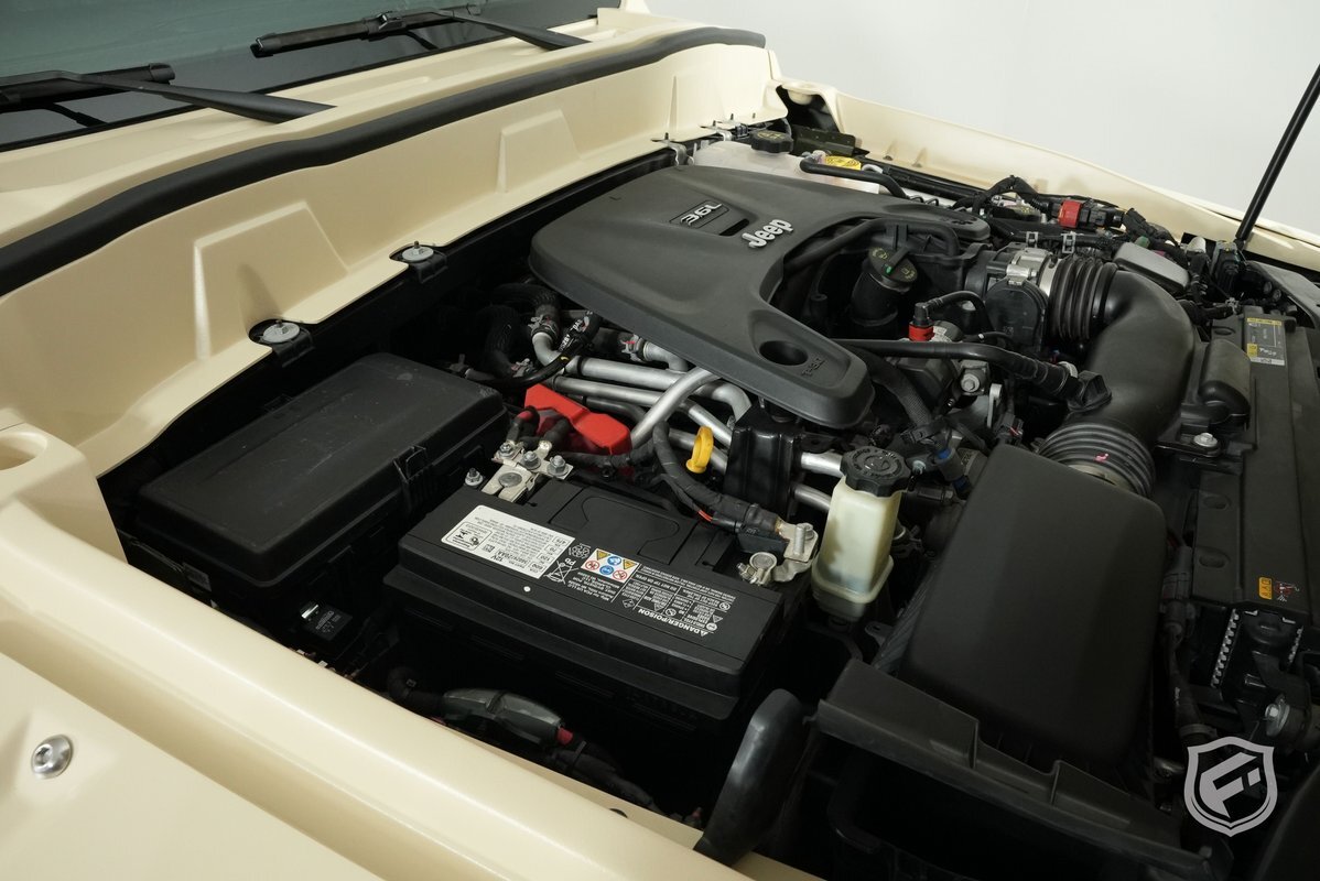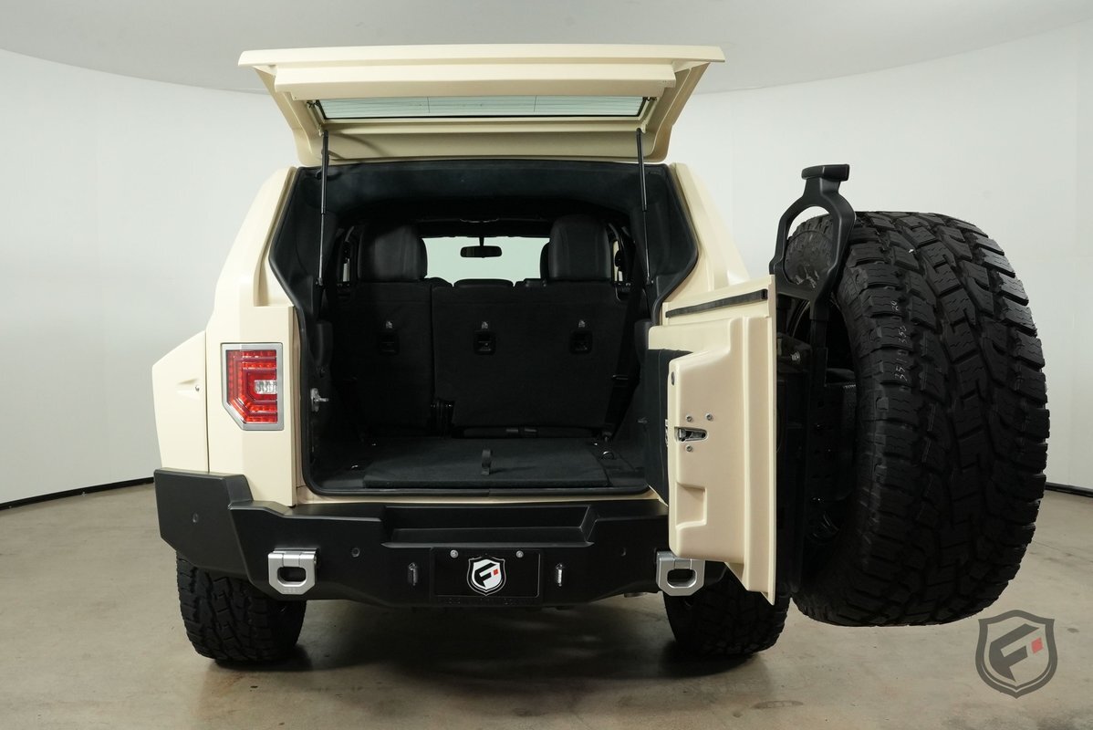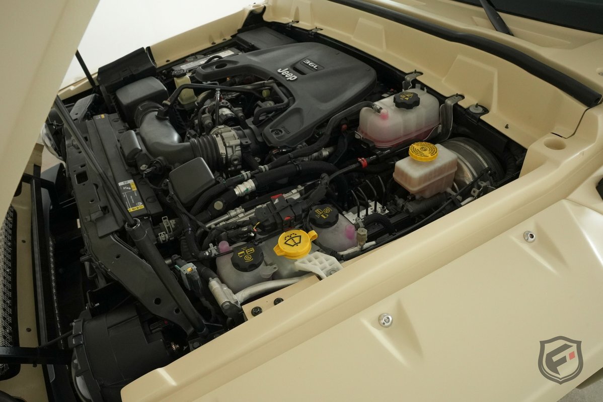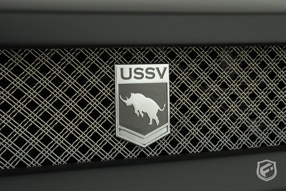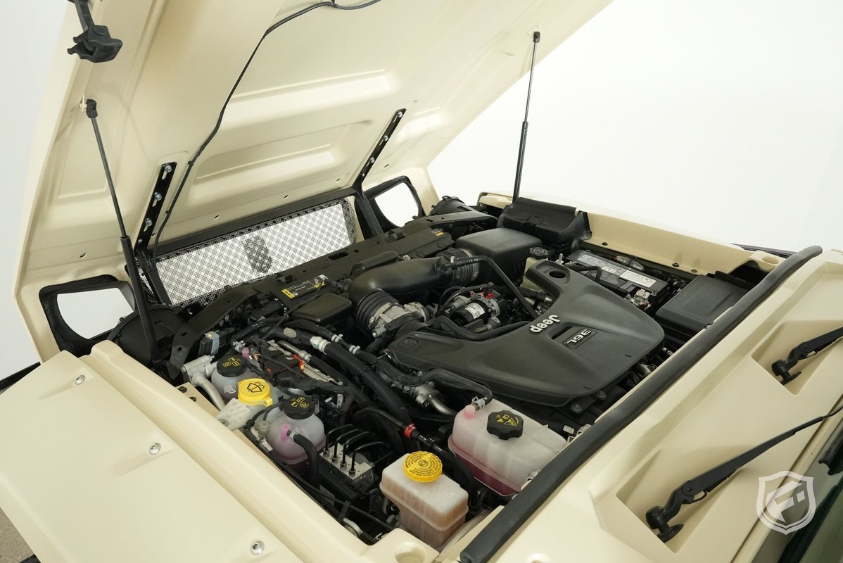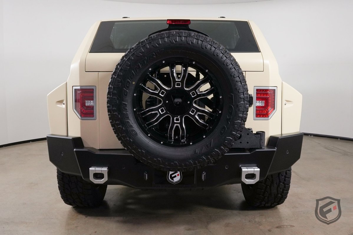 This 2021 US Specialty Vehicles Rhino XT is derived from the modern Jeep Wrangler platform and is equipped with a 3.6L V6 24-valve WT eTorque engine paired with an 8-speed automatic transmission. The exterior is painted in sand complemented by black leather upholstery, and it showcases distinctive custom dual-layer steel bodywork.