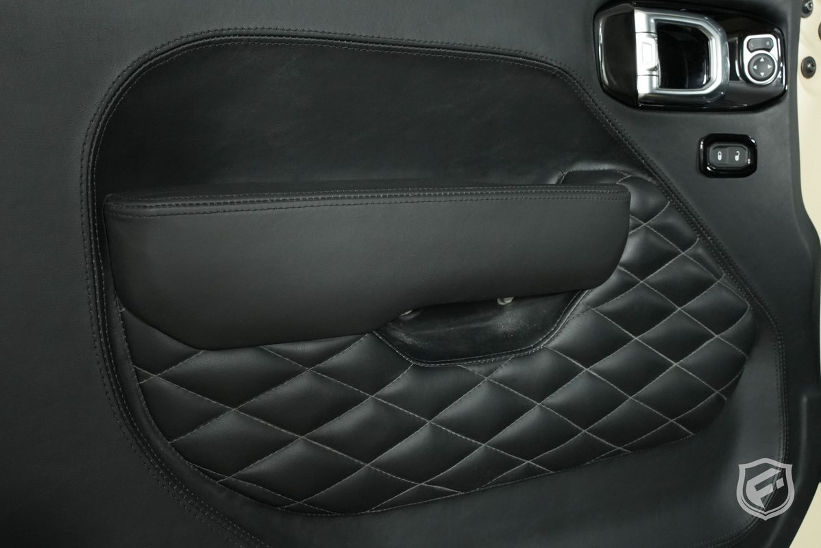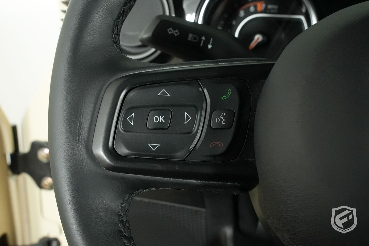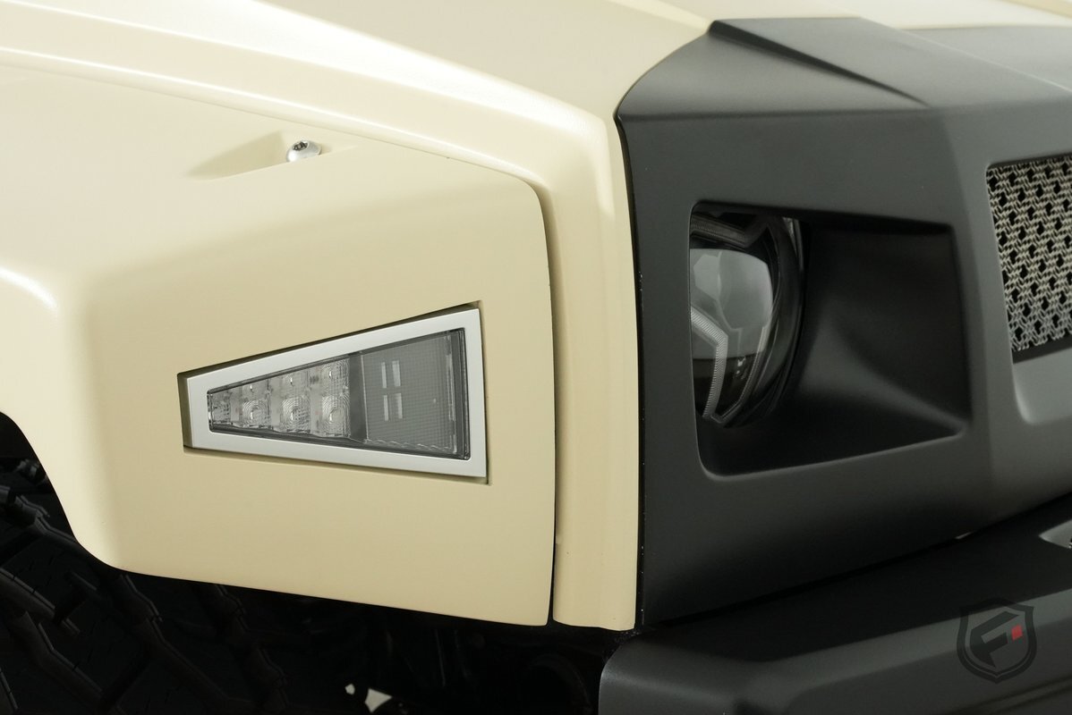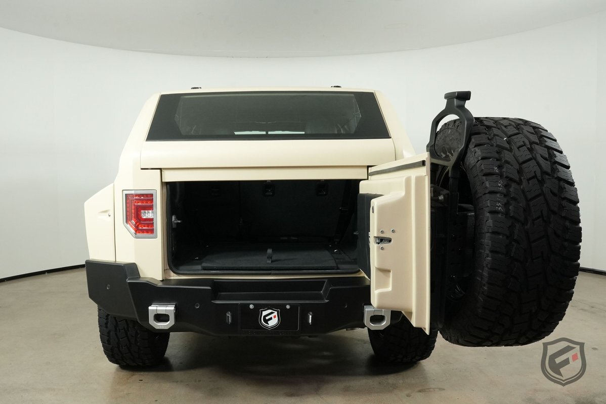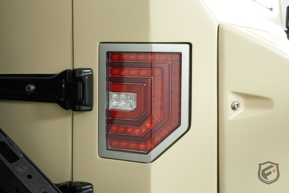 This 2021 US Specialty Vehicles Rhino XT is derived from the modern Jeep Wrangler platform and is equipped with a 3.6L V6 24-valve WT eTorque engine paired with an 8-speed automatic transmission. The exterior is painted in sand complemented by black leather upholstery, and it showcases distinctive custom dual-layer steel bodywork.