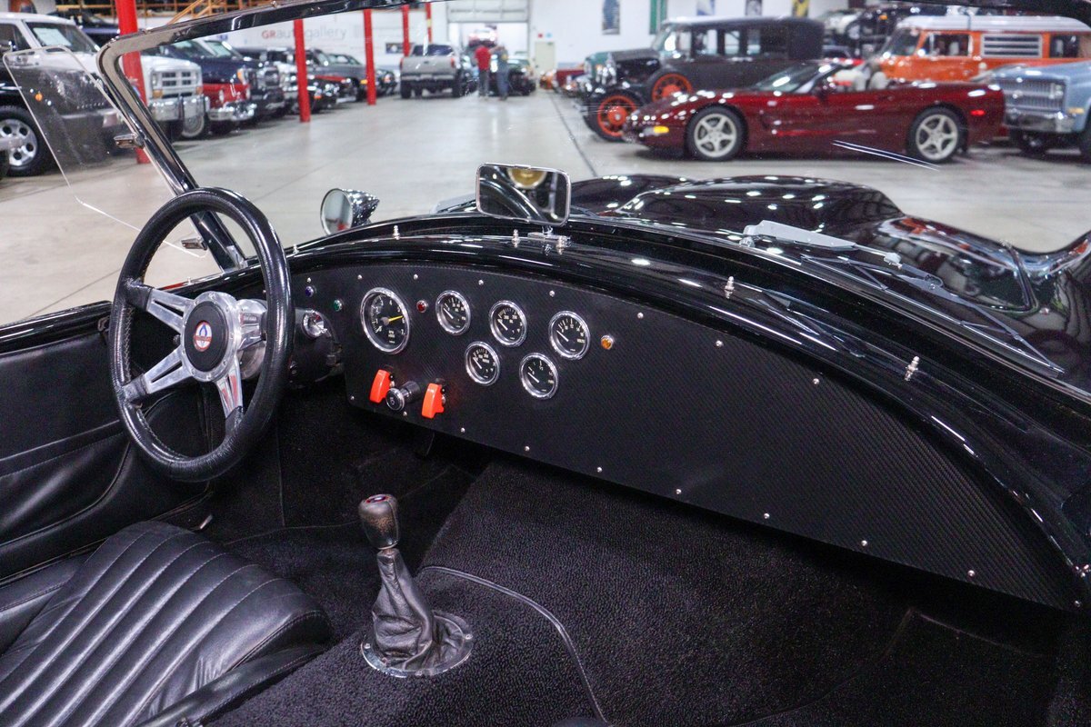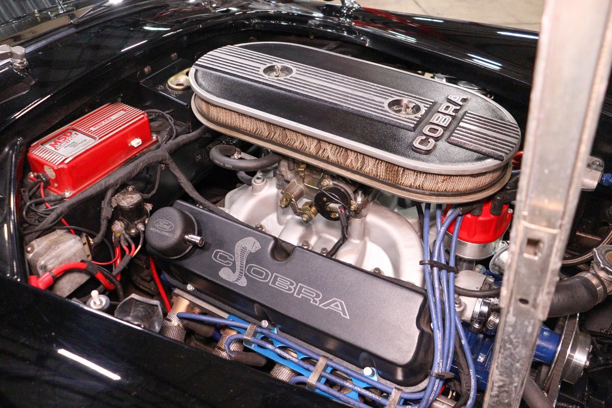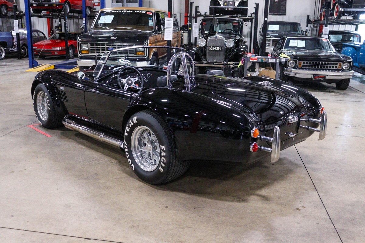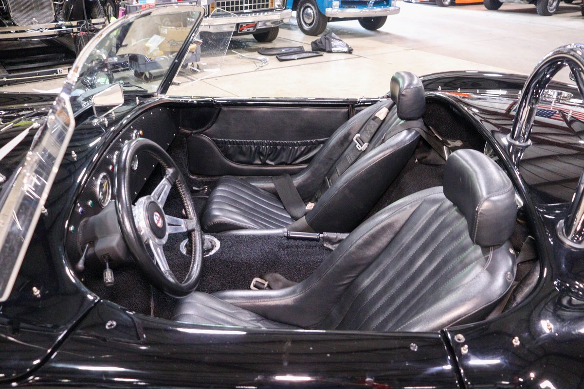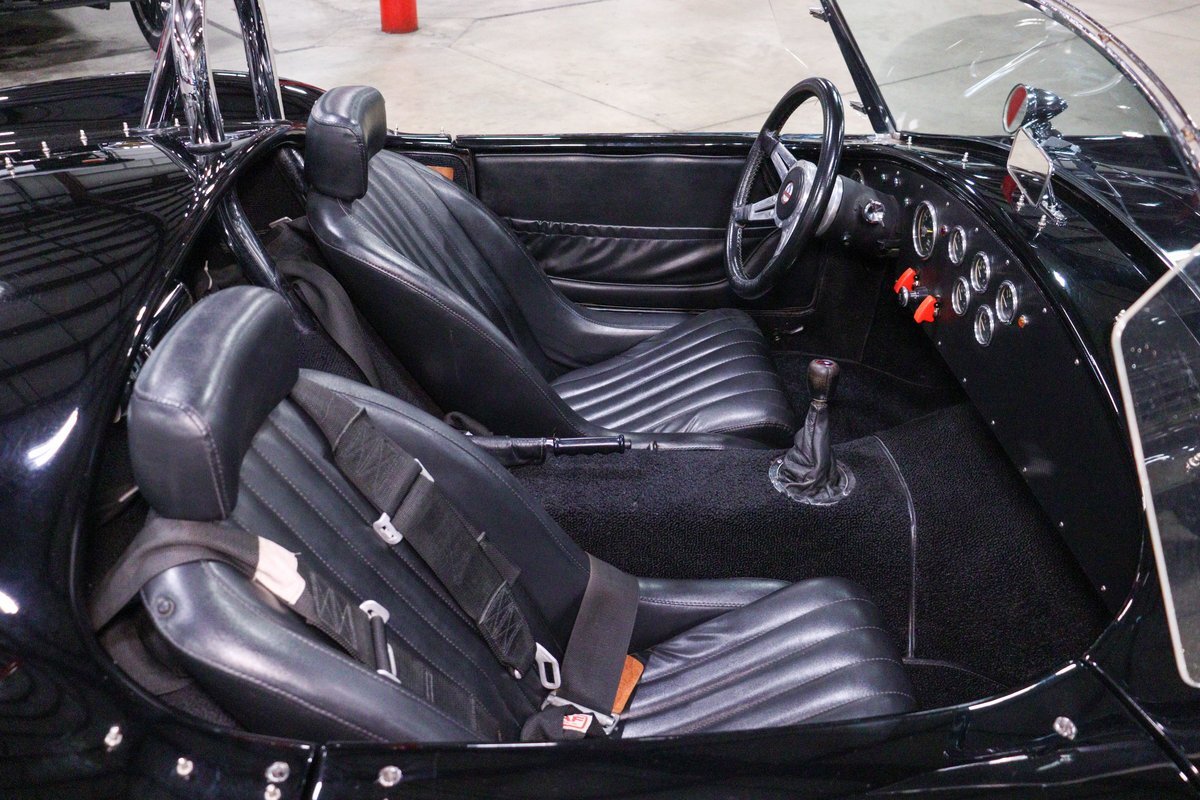 GR Auto Gallery is pleased to present this stunning 1965 AC Shelby Cobra for your consideration. At the heart of this Cobra is a 351ci V8 engine, boasting Ford Motorsport GT40 heads, a MSD ignition system, and an Edelbrock carburetor, which ensure optimal airflow and fuel delivery for superior performance. The power is managed by a Tremec Heavy Duty 5-Speed Manual transmission, providing an engaging and responsive driving experience. With a 3.73 traction lock rear end and an aluminum billet pulley system, this Cobra delivers both power and precision. The engine has been meticulously refreshed just 500 miles ago. The Black exterior of this Cobra is beautifully complemented by Compomotive HB 3-piece wheels wrapped in Goodyear Eagle tires. The suspension system features coilovers, ensuring a smooth yet responsive ride. Power disc brakes at all four corners deliver confident stopping power, enhancing control. Inside, the Cobra features a carbon fiber dashboard, which adds a modern touch to its vintage style. The black leather bucket seats feature LEAF Safety Equipment lap belts, while the Lecarra Cobra steering wheel adds to the sporty nature of the interior.
