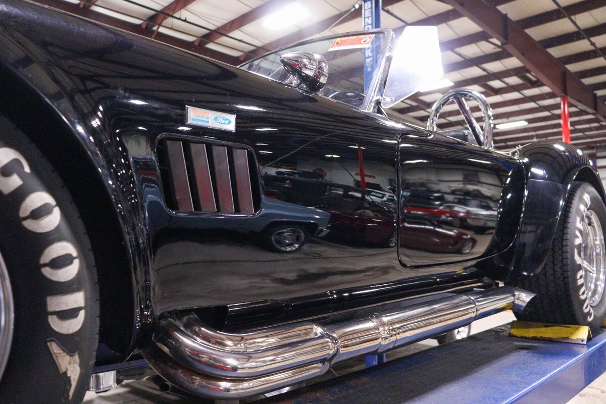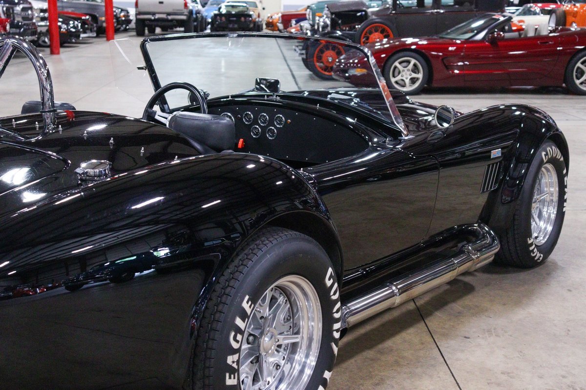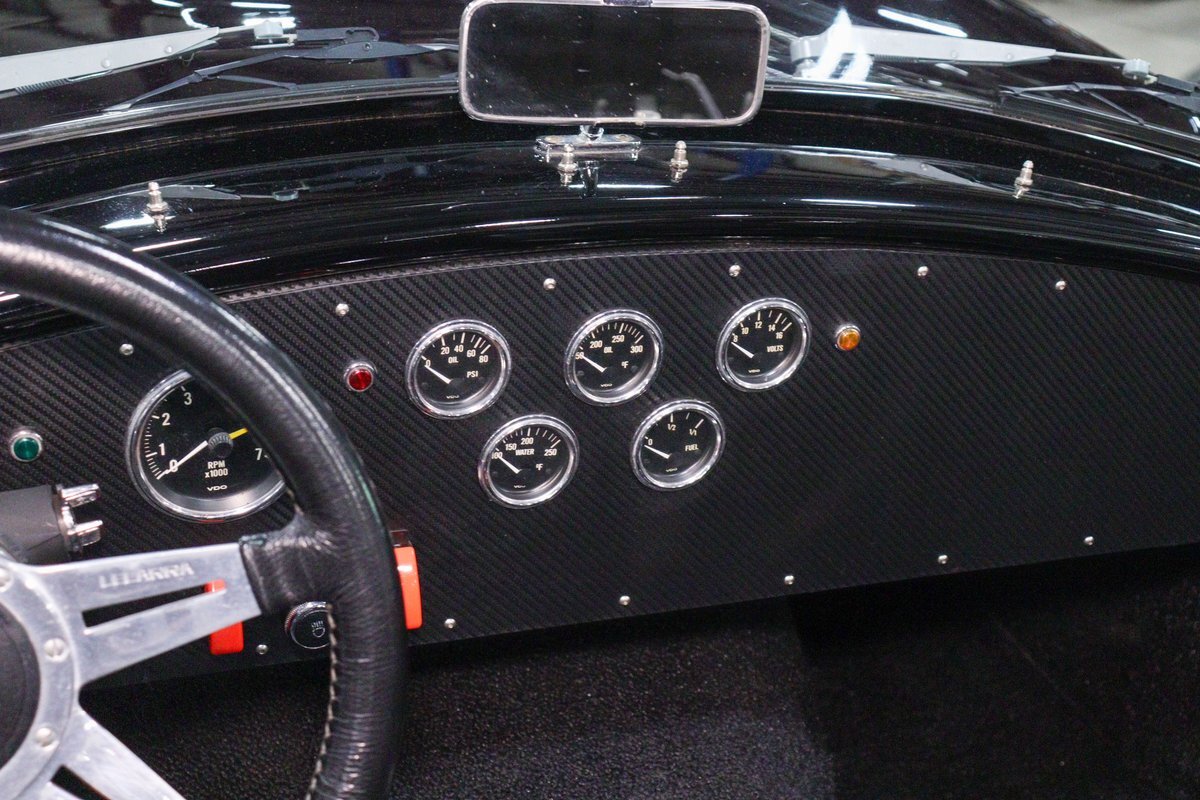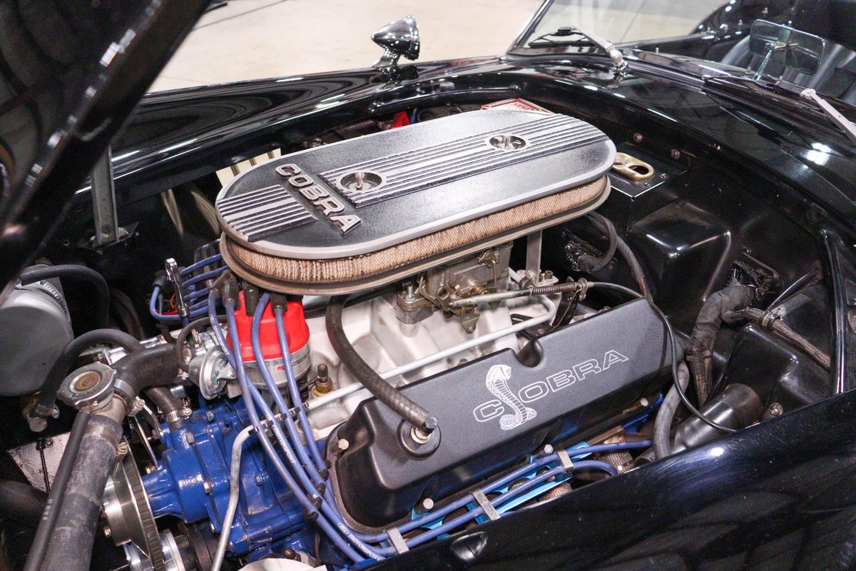 GR Auto Gallery is pleased to present this stunning 1965 AC Shelby Cobra for your consideration. At the heart of this Cobra is a 351ci V8 engine, boasting Ford Motorsport GT40 heads, a MSD ignition system, and an Edelbrock carburetor, which ensure optimal airflow and fuel delivery for superior performance. The power is managed by a Tremec Heavy Duty 5-Speed Manual transmission, providing an engaging and responsive driving experience. With a 3.73 traction lock rear end and an aluminum billet pulley system, this Cobra delivers both power and precision. The engine has been meticulously refreshed just 500 miles ago. The Black exterior of this Cobra is beautifully complemented by Compomotive HB 3-piece wheels wrapped in Goodyear Eagle tires. The suspension system features coilovers, ensuring a smooth yet responsive ride. Power disc brakes at all four corners deliver confident stopping power, enhancing control. Inside, the Cobra features a carbon fiber dashboard, which adds a modern touch to its vintage style. The black leather bucket seats feature LEAF Safety Equipment lap belts, while the Lecarra Cobra steering wheel adds to the sporty nature of the interior.