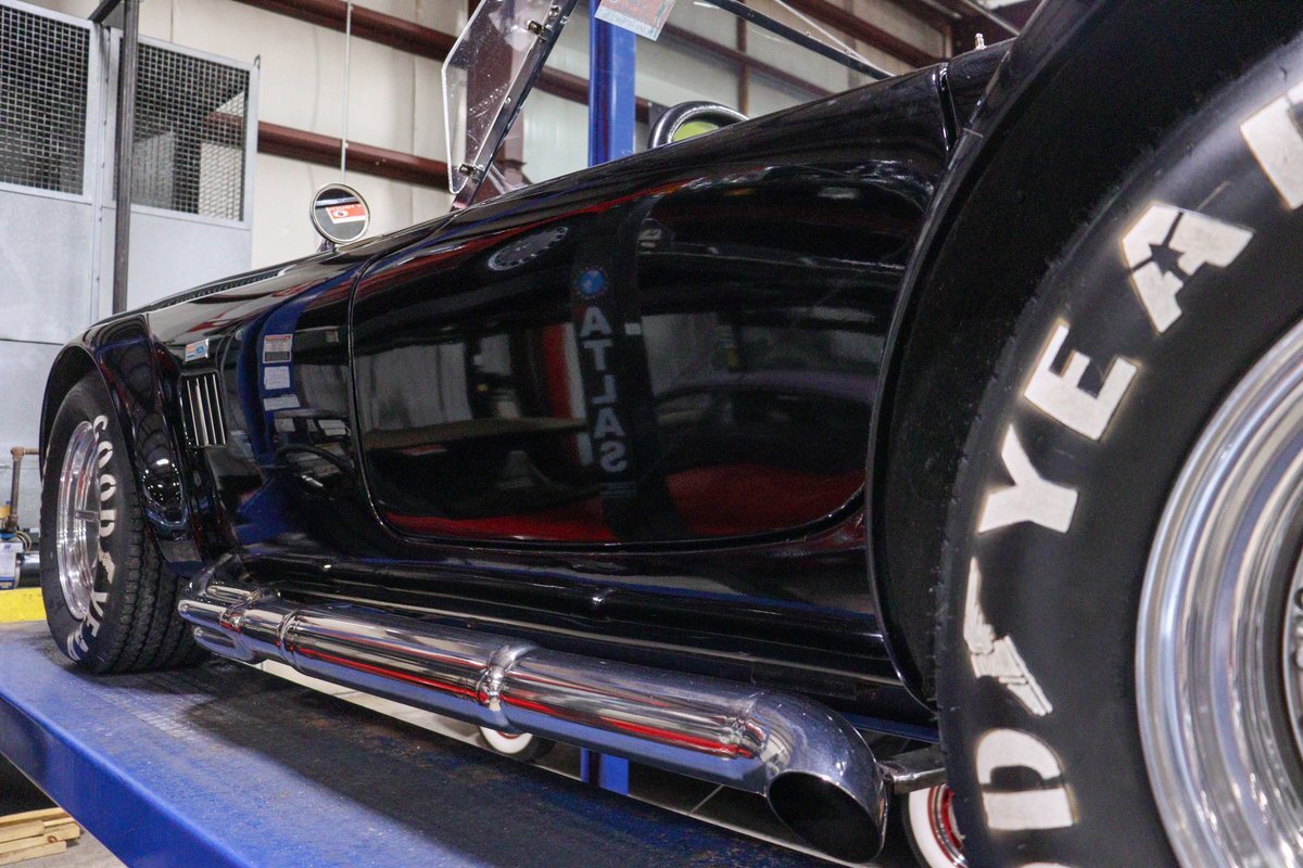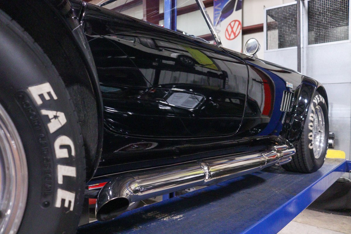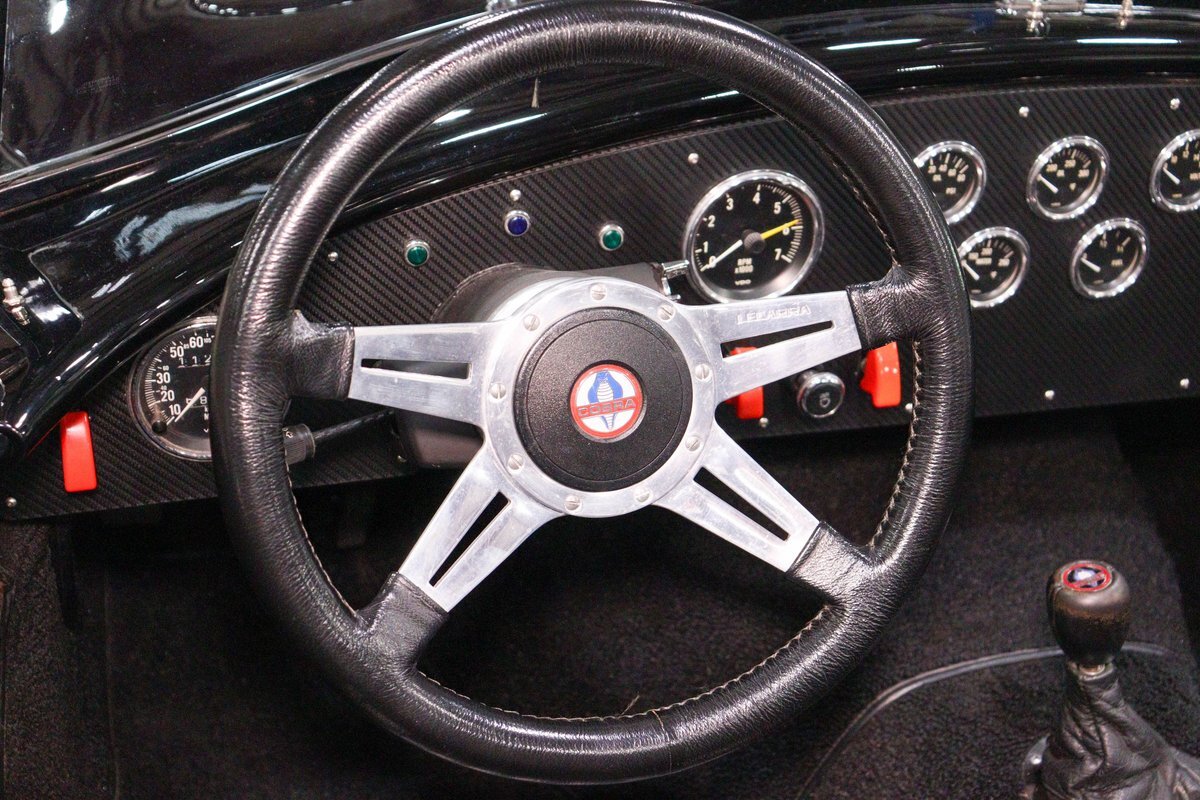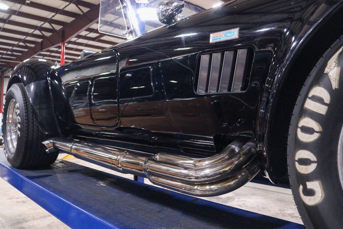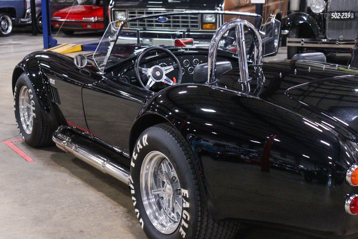 GR Auto Gallery is pleased to present this stunning 1965 AC Shelby Cobra for your consideration. At the heart of this Cobra is a 351ci V8 engine, boasting Ford Motorsport GT40 heads, a MSD ignition system, and an Edelbrock carburetor, which ensure optimal airflow and fuel delivery for superior performance. The power is managed by a Tremec Heavy Duty 5-Speed Manual transmission, providing an engaging and responsive driving experience. With a 3.73 traction lock rear end and an aluminum billet pulley system, this Cobra delivers both power and precision. The engine has been meticulously refreshed just 500 miles ago. The Black exterior of this Cobra is beautifully complemented by Compomotive HB 3-piece wheels wrapped in Goodyear Eagle tires. The suspension system features coilovers, ensuring a smooth yet responsive ride. Power disc brakes at all four corners deliver confident stopping power, enhancing control. Inside, the Cobra features a carbon fiber dashboard, which adds a modern touch to its vintage style. The black leather bucket seats feature LEAF Safety Equipment lap belts, while the Lecarra Cobra steering wheel adds to the sporty nature of the interior.