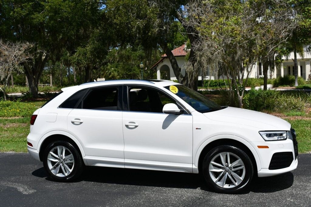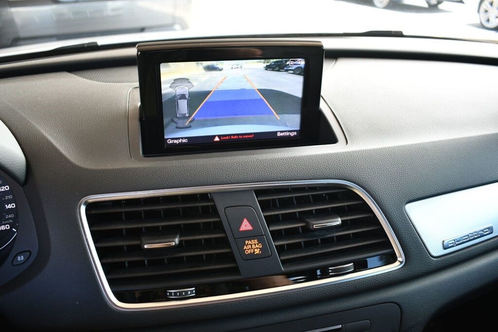 This 2018 Audi Q3 4dr 2.0 TFSI Premium Plus quattro AWD SUV with Navigation features a 2.0L 4 CYLINDER 4cyl Gasoline engine. It is equipped with a 6 Speed Automatic transmission. The vehicle is Cortina White with a Black interior. It is covered by a limited warranty. - Air Conditioning, Climate Control, Dual Zone Climate Control, Cruise Control, Tinted Windows, Power Steering, Power Windows, Power Door Locks, Power Mirrors, Leather Steering Wheel, Power Drivers Seat, Power Passenger Seat, Clock, Tachometer, Digital Info Center, Tilt Steering Wheel, Telescoping Steering Wheel, Steering Wheel Radio Controls, Sunroof, Moonroof, Driver Airbag, Passenger Airbag, Side Airbags, Keyless Entry, Security System, Rear Defogger, Intermittent Wipers, AM/FM, CD Player, Anti-Theft, Aux. Audio Input, Bluetooth, Carpeted Floor Mats, Center Arm Rest, Center Console, Child Proof Door Locks, Collision Avoidance System, Cup Holders, Daytime Running Lights, Front Heated Seats, Heated Mirrors, LED Headlights/Fog Lights, Navigation System, Overhead Console, Panoramic Roof, Parking Sensors, Power Brakes, Premium Alloy Wheels, Premium Sound, Rear Fog Lamps, Rear Spoiler, Rear Spoiler, Rear Wipers, Reverse Camera, Roll Stability Control, Side Curtain Airbags, Sliding Rear Window, Tire Pressure Monitor, Vanity Mirrors -