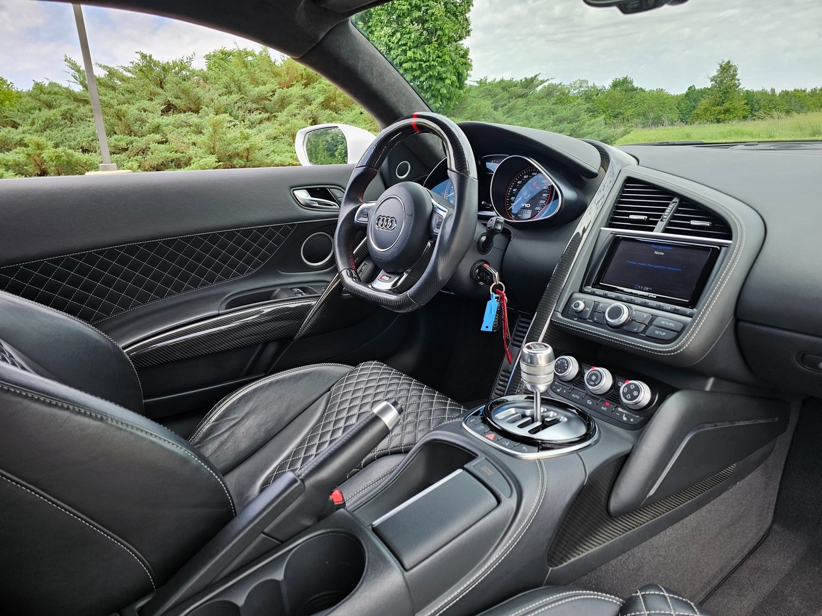 Clean CARFAX. White 2014 Audi R8 5.2 quattro quattro 6-Speed Manual 5.2L V10 FSI DOHC Black Leather.