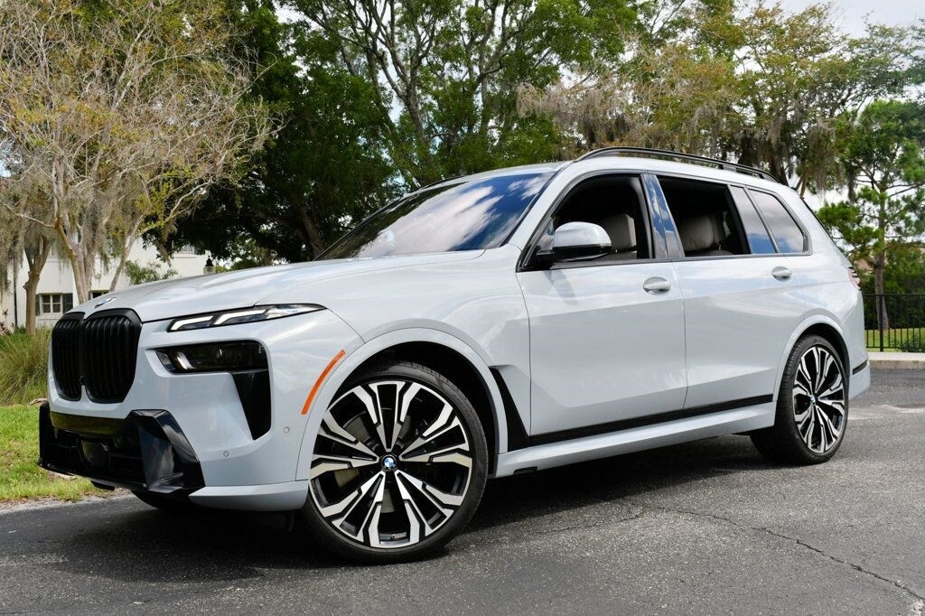 This 2023 BMW X7 4dr xDrive40i Sports Activity Vehicle with M Sport Pkg. & $101K MSRP features a 3.0L STRAIGHT 6 CYLINDER 6cyl Gasoline engine. It is equipped with a 8 Speed Automatic transmission. The vehicle is Brooklyn Grey Metallic with a Ivory White/Atlas Grey Merino Leather interior. It is offered with the remaining factory warranty. - Air Conditioning, Climate Control, Dual Zone Climate Control, Cruise Control, Tinted Windows, Power Steering, Power Windows, Power Door Locks, Power Mirrors, Leather Steering Wheel, Power Drivers Seat, Power Passenger Seat, Memory Seat Position, Rear Air Conditioning, Wood Trim, Clock, Tachometer, Digital Info Center, Homelink System, Tilt Steering Wheel, Telescoping Steering Wheel, Steering Wheel Radio Controls, Driver Airbag, Passenger Airbag, Side Airbags, Keyless Entry, Security System, Traction Control, Dynamic Stability, Rear Defogger, Fog Lights, Intermittent Wipers, AM/FM, Anti-Theft, Sport Package, Merino Leather Interior Surface, 3rd Row Seating, Adaptive Cruise Control, Adaptive headlights, Android Auto, Apple CarPlay, Birds Eye View Camera, Blind Spot Monitor, Bluetooth, Center Arm Rest, Center Console, Child Proof Door Locks, Collision Avoidance System, Cup Holders, Daytime Running Lights, Forward Collision Warning, Front AC Seats, Front Heated Seats, Heated Mirrors, Lane Departure Warning, Lane Keep Assist, LED Headlights/Fog Lights, Navigation System, Panoramic Roof, Parking Sensors, Power Brakes, Power Lift Gate, Premium Alloy Wheels, Premium Sound, Rain Sensing Wipers, Rear Heated Seats , Rear Spoiler, Rear Spoiler, Rear Wipers, Remote Trunk Lid, Reverse Camera, Roll Stability Control, Side Curtain Airbags, Sliding Rear Window, Soft Open Tailgate, Tire Pressure Monitor, Vanity Mirrors -