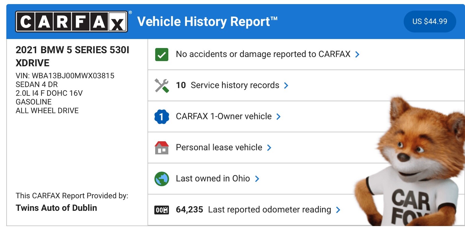 ? Welcome to Twins Auto of Dublin! ? ? Refer to the last image for the Carfax report. Experience the pinnacle of luxury and performance with our latest offering: 2021 BMW 5 Series 530i xDrive ? Year: 2021 ? Mileage: 64,232 miles ? Price: $27,895 ? Condition: Excellent Introducing this stunning BMW 5 Series 530i xDrive, where elegance meets power. Envision yourself behind the wheel of this beauty, featuring a sleek silver glacier metallic exterior and a sophisticated black interior. Every drive becomes an event in this exquisite sedan. Key Features: ? Exterior Color: Silver Glacier Metallic ? Interior Color: Black ? Vehicle History: Clean Carfax, Single Owner ? Number of Owners: 1 Why Choose Me at Twins Auto of Dublin? ? Personalized Attention: I offer dedicated service from start to finish. ? Quality Assurance: Rigorous inspections ensure peace of mind. ? Tailored Financing: Options designed to fit your budget. ? Exceptional Service: Your satisfaction is my priority. Find Edwin at Twins Auto of Dublin! ? Location: 5035 Post Rd, Dublin, OH Don't Miss Out! Inquire with Edwin today and experience the luxury and performance of this 2021 BMW 5 Series 530i xDrive. Let's make it yours! ?Vehicle Details