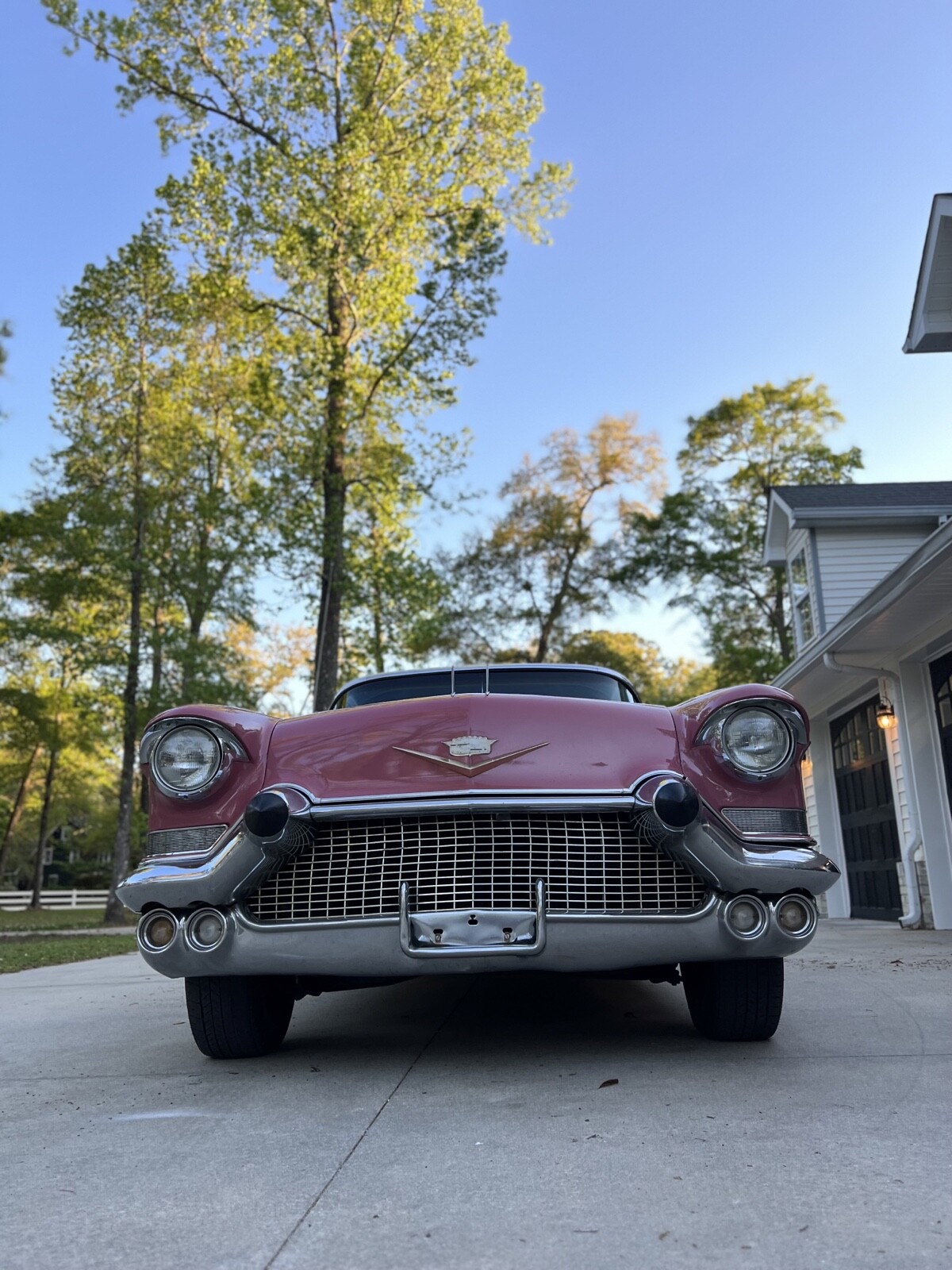 For sale is an extremely well cared for 1957 Cadillac coupe deville in rare paint code 44 Dusty Rose with an Alpine White top.