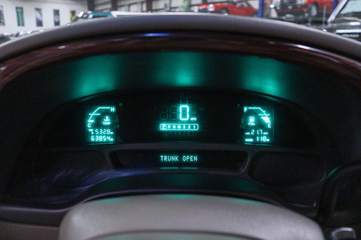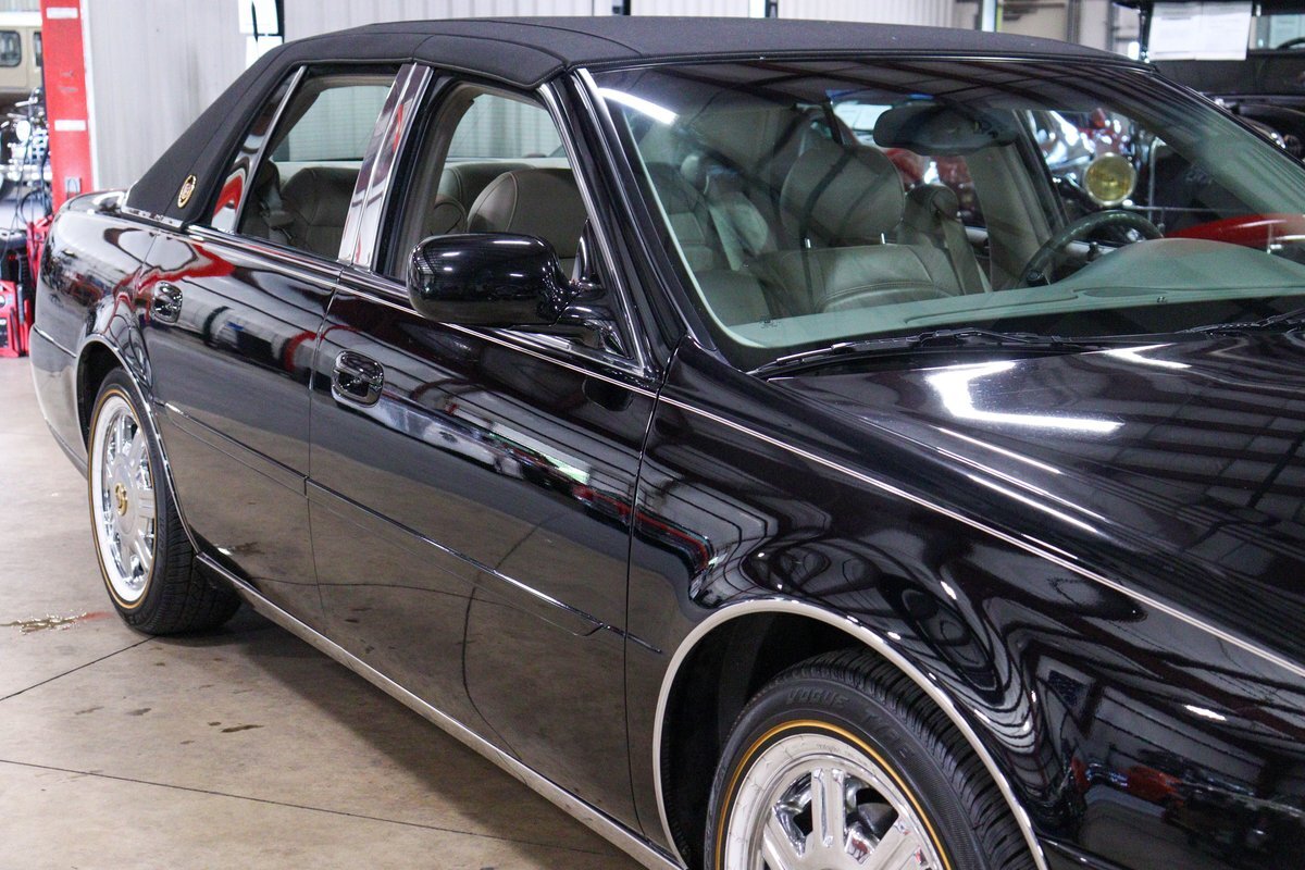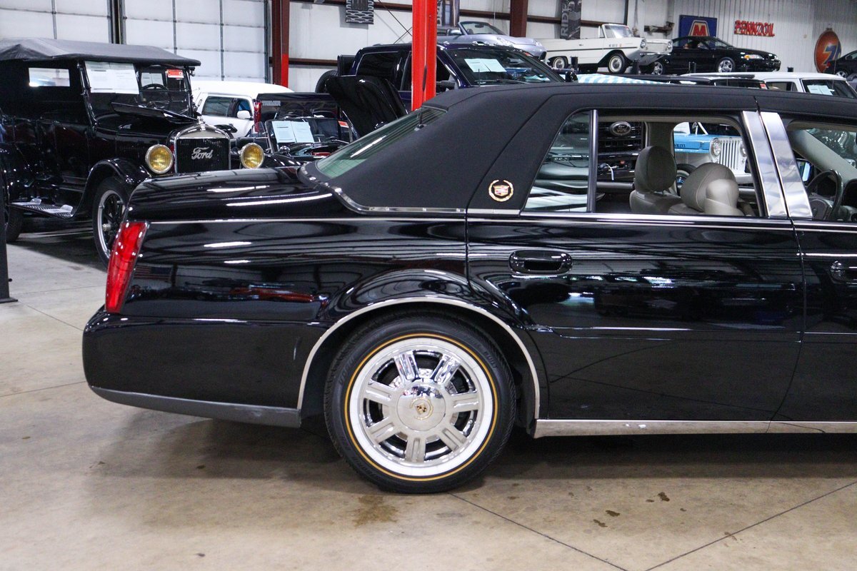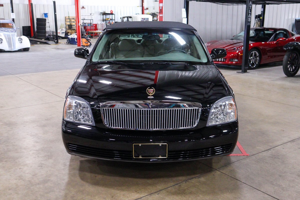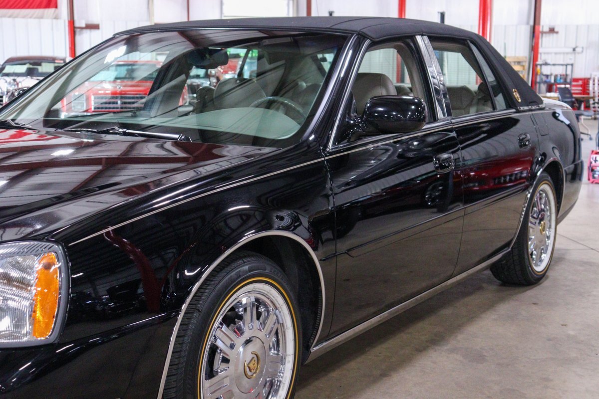 GR Auto Gallery is pleased to present this luxurious 2003 Cadillac DeVille, a timeless icon of American automotive elegance. This DeVille boasts a sleek Midnight Black exterior complemented by a classic gold pinstripe, exuding an aura of sophistication and style. The addition of a custom chrome grille and a distinctive Black Landau roof adds to its regal presence, making it a true head-turner. With just 63,854 miles on the odometer, this full-size sedan offers a captivating blend of opulence and comfort.