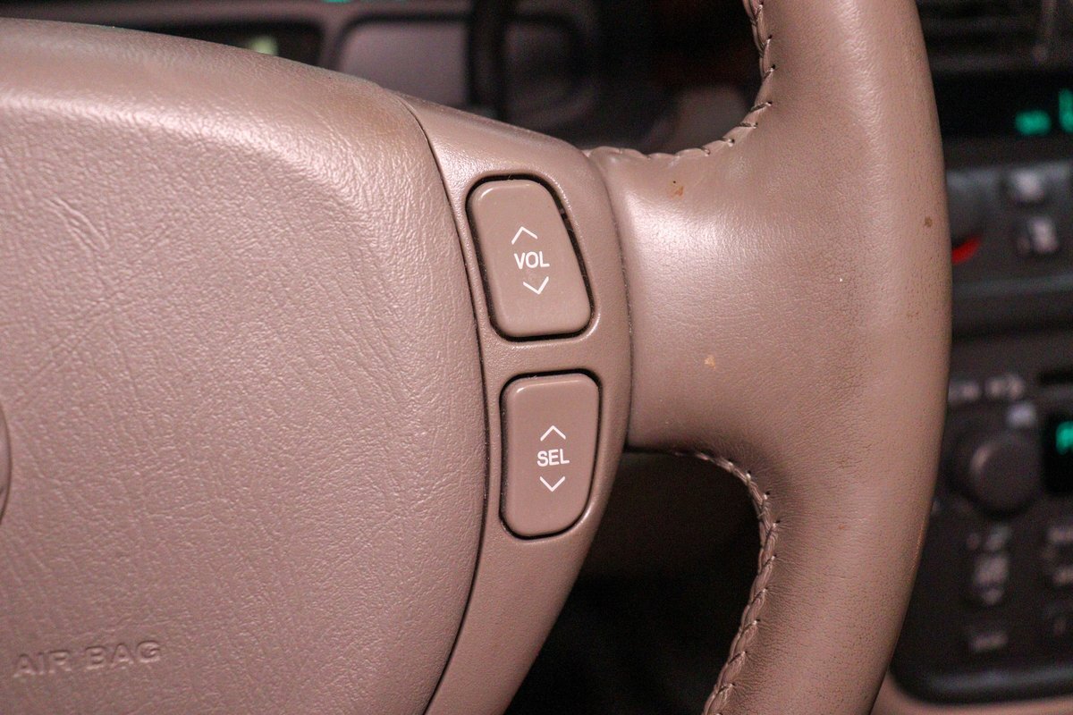 Inside, the DeVille's cabin is a sanctuary of luxury, featuring plush Tan Leather seating that invites relaxation and comfort. The classic interior is accentuated by the vehicle's chrome package, adding a touch of brightness to the elegant ambiance. The 16-inch 7-spoke chrome wheels, wrapped in new Vogue tires, not only enhance the vehicle's aesthetic appeal but also contribute to its poised and refined driving dynamics.