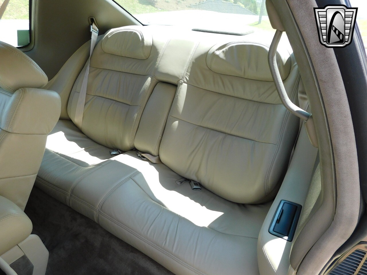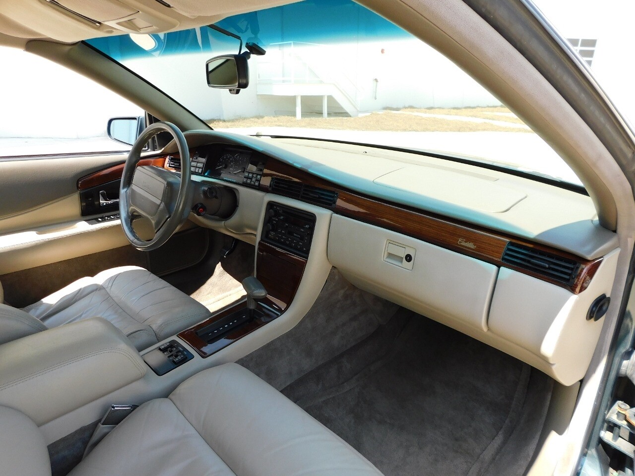 Step into the world of classic luxury with this 1993 Cadillac Eldorado. Dressed in a sophisticated dark green grey metallic exterior, this vehicle exudes a timeless elegance that is sure to turn heads. The tan leather interior adds a touch of warmth and comfort, creating a serene oasis for both driver and passengers.