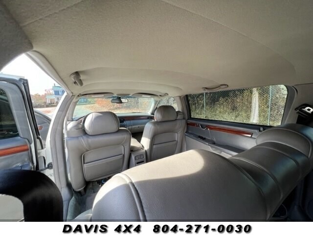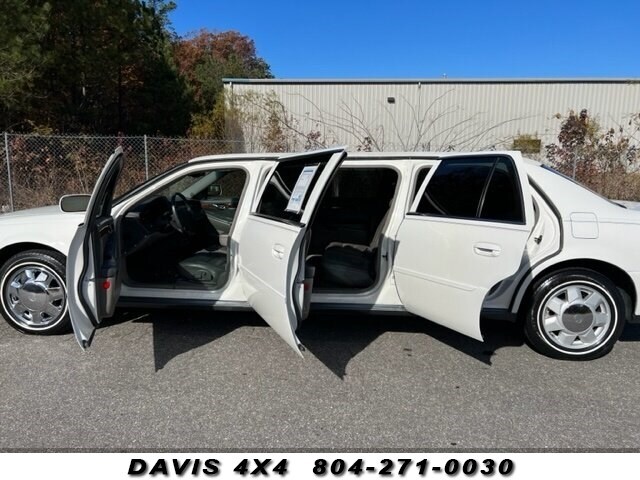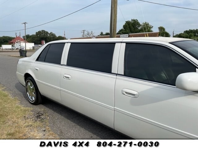 2000 Cadillac Deville Custom Coach Limousine Stretch Executive. This unit has seating for nine with easy access six door entry, very well cared for, owned by a private owner previous to us, not a rented out unit etc., chromed alloy wheels, clean interior and exterior, no typical body rott or cracks, leather interior, dark tinted windows, extremely low, mileage and very very original well-kept condition. This is not typical piece of crap piece together worn out Limo like most of this age or style. This will make an excellent large family vehicle as items that may seem also make a great funeral home and or touring vehicle for wine tasting, weddings, executive company, usage things such as this has the 32V Northstar engine, freshly serviced and properly inspected and we can assist with transportation nationwide. We have almost 300 other units on our website of custom cars, trucks, gas and diesel lifted and accessorized, as well as commercial work trucks, vans, SUVs, bucket trucks, Rollbacks, Tow Trucks, custom conversion vans, campers RVs and boats.