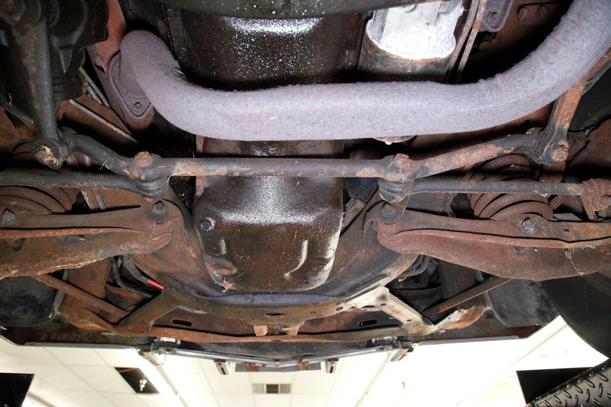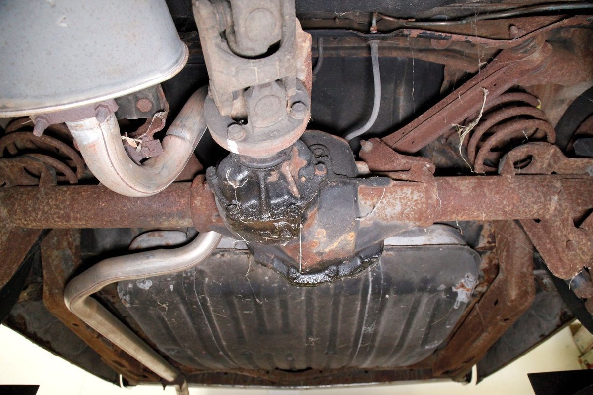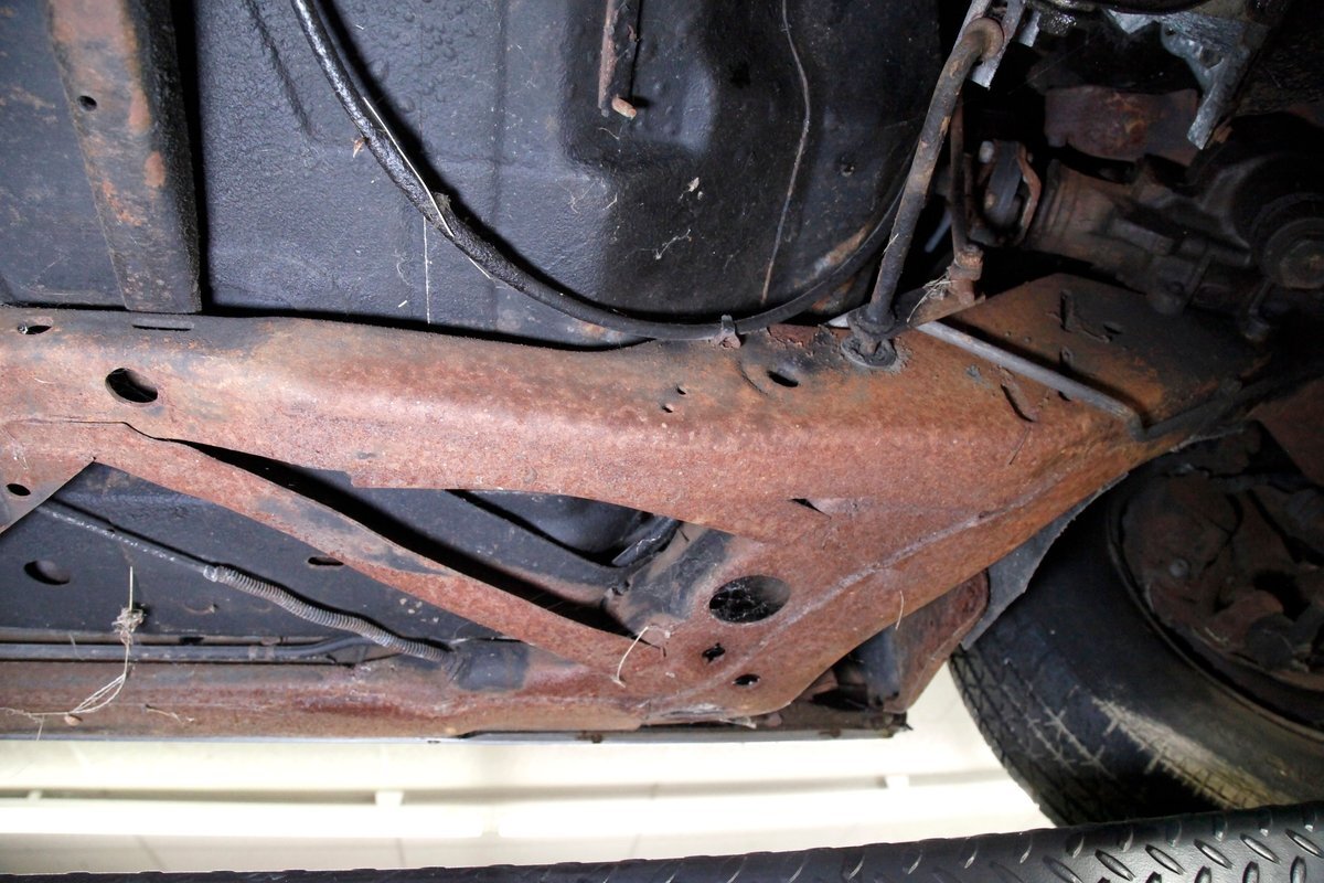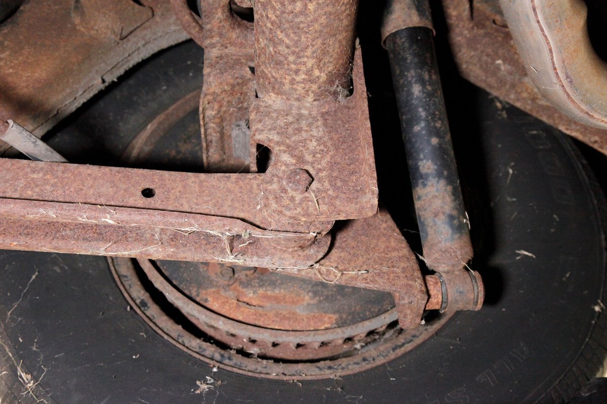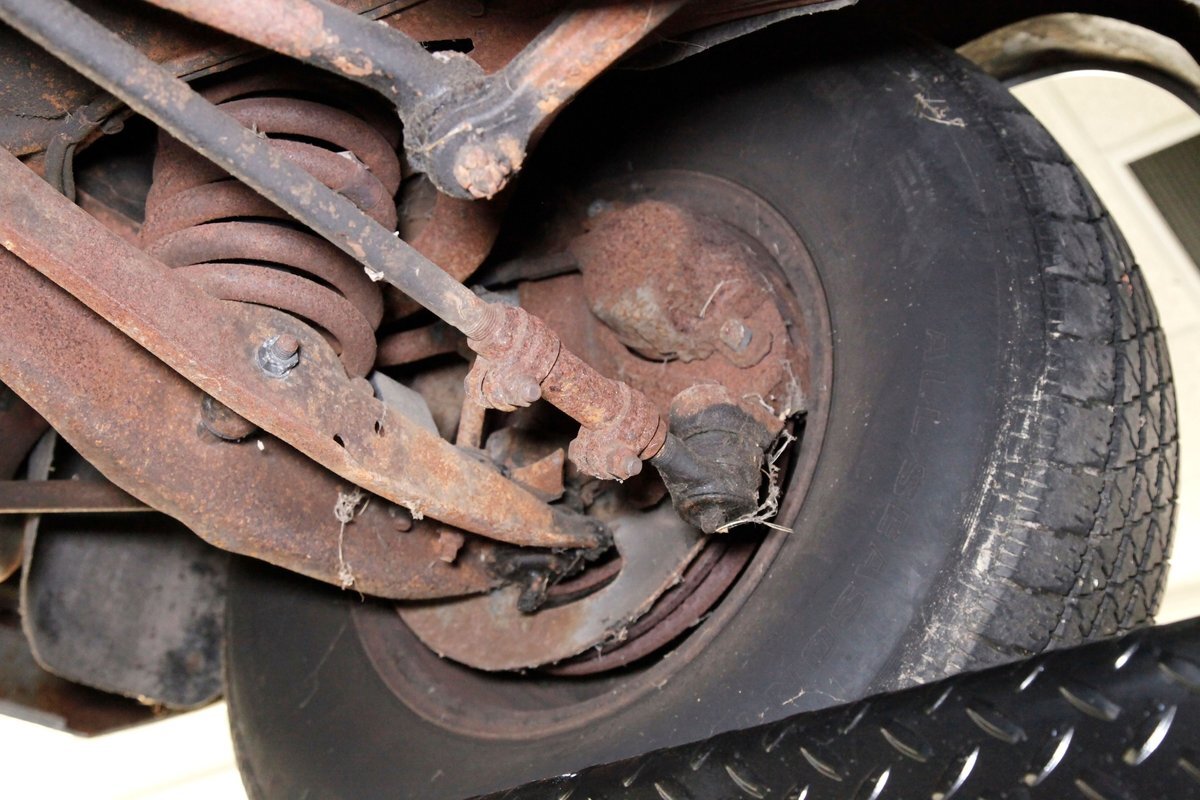 Patina, some surface rust, and invasive rust on the rockers mostly near all the wheel wells is noted. The stamped floor pans in these areas have it too, and also the framing shows some surface rust. Independent coil sprung front suspension provides the ride, and in back a 4 link with coil spring suspension is on and up to snuff. Power disc braking is upfront, and power drums for the rear.