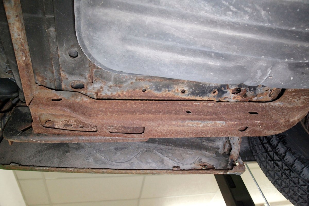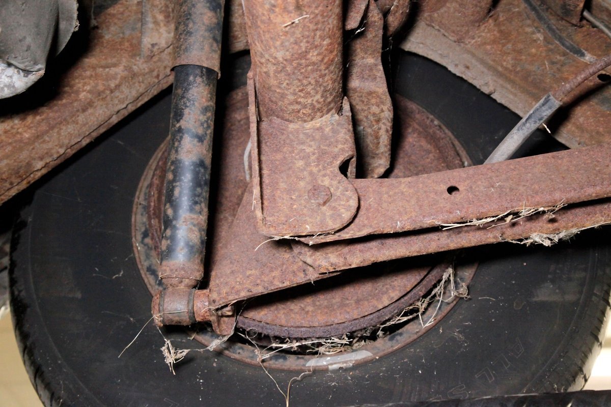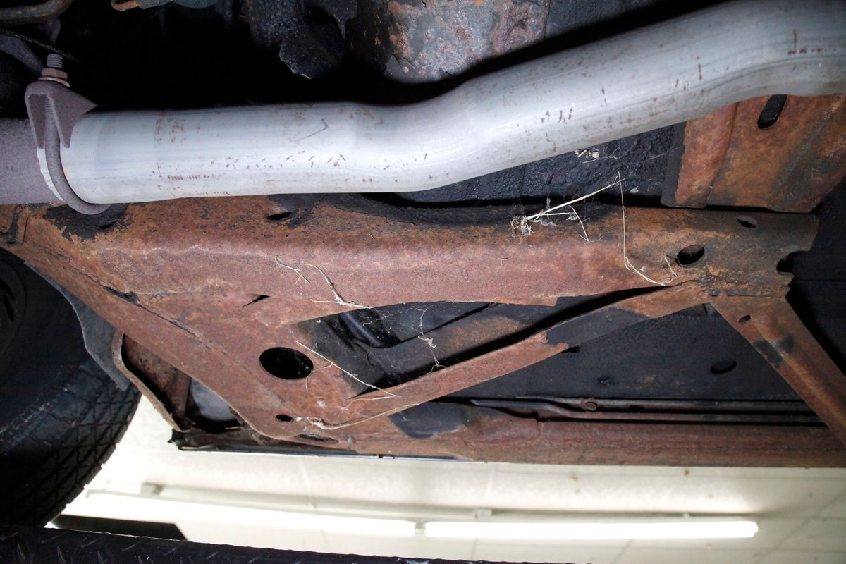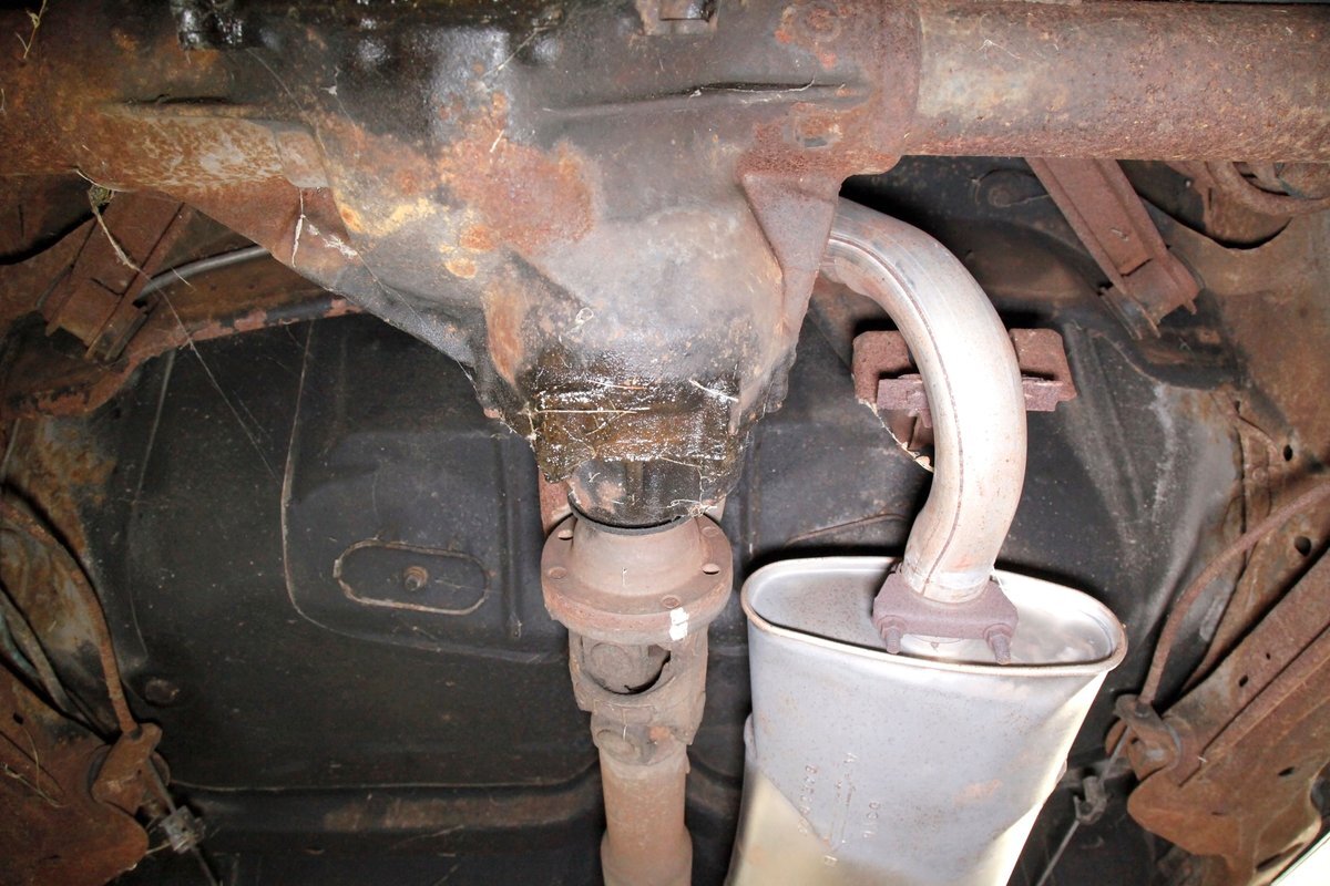 Patina, some surface rust, and invasive rust on the rockers mostly near all the wheel wells is noted. The stamped floor pans in these areas have it too, and also the framing shows some surface rust. Independent coil sprung front suspension provides the ride, and in back a 4 link with coil spring suspension is on and up to snuff. Power disc braking is upfront, and power drums for the rear.
