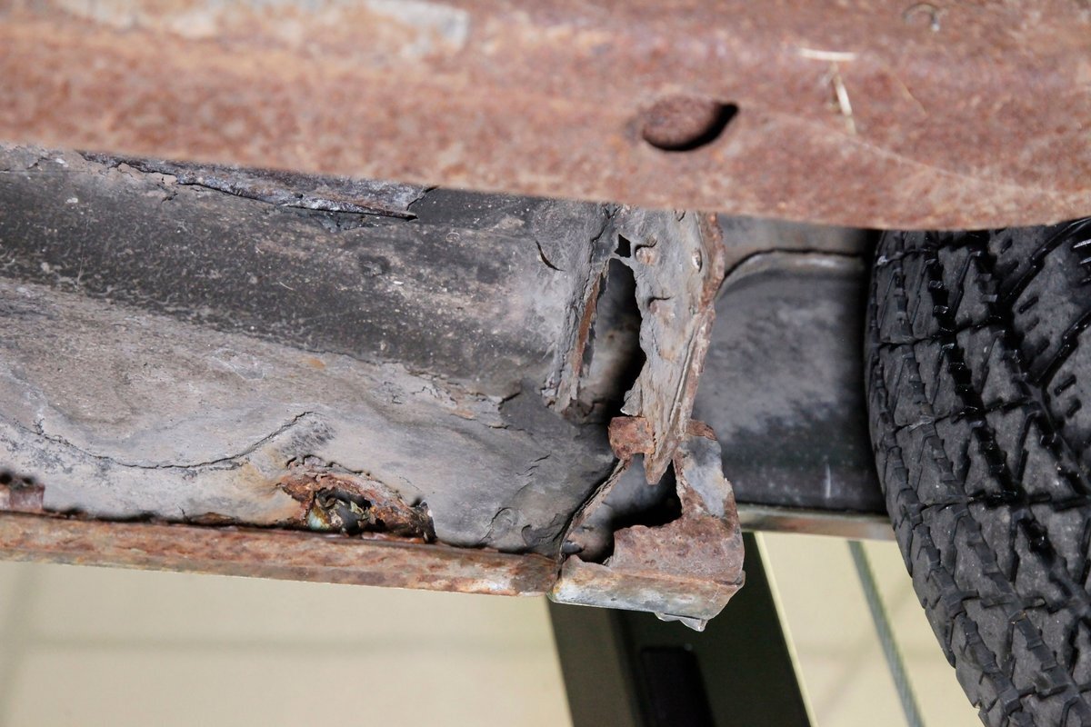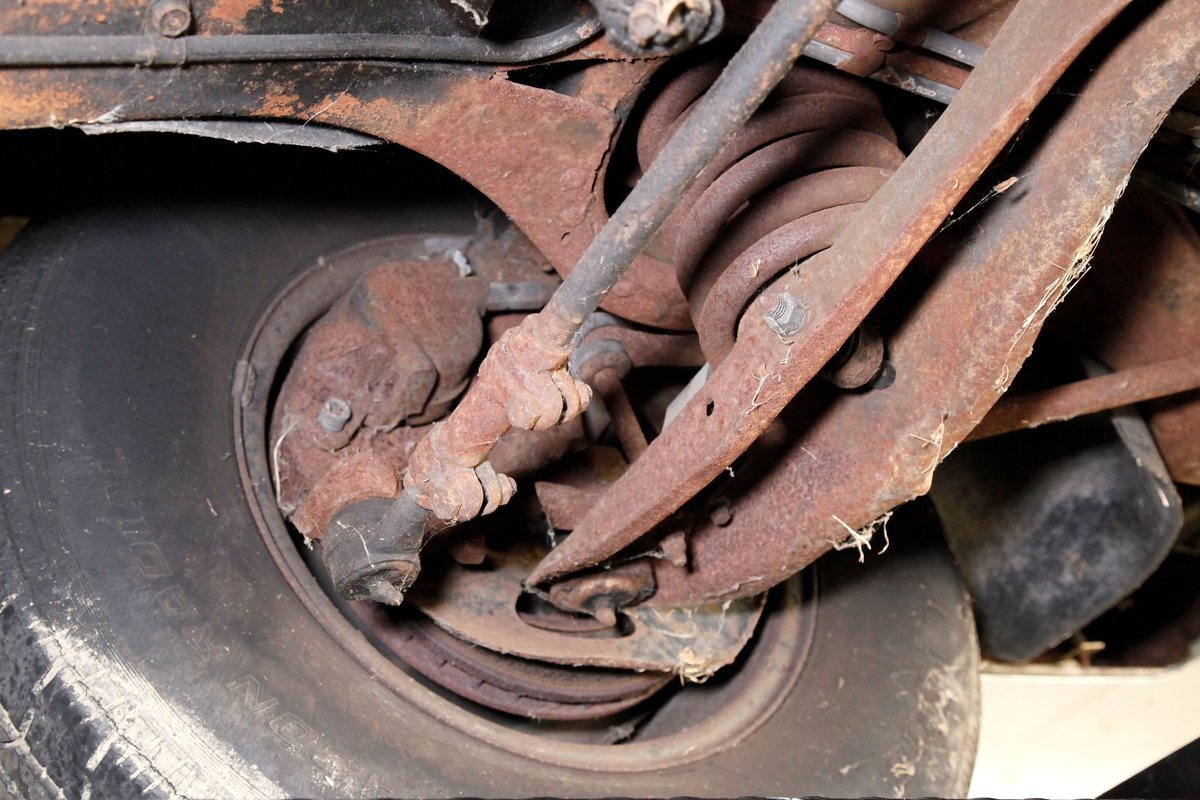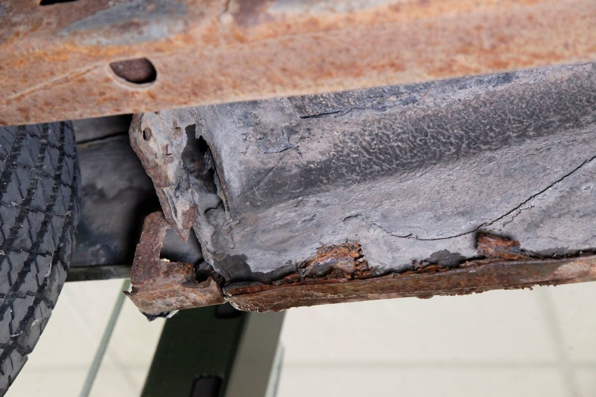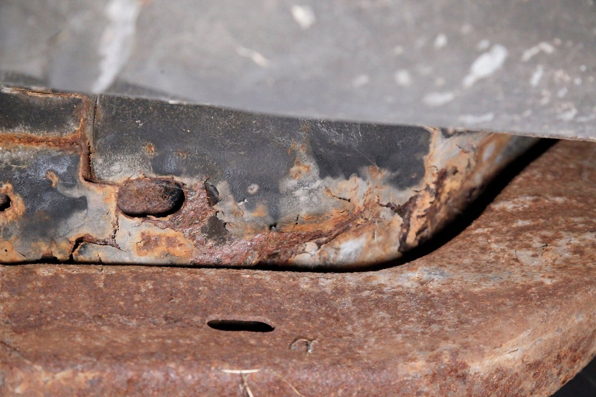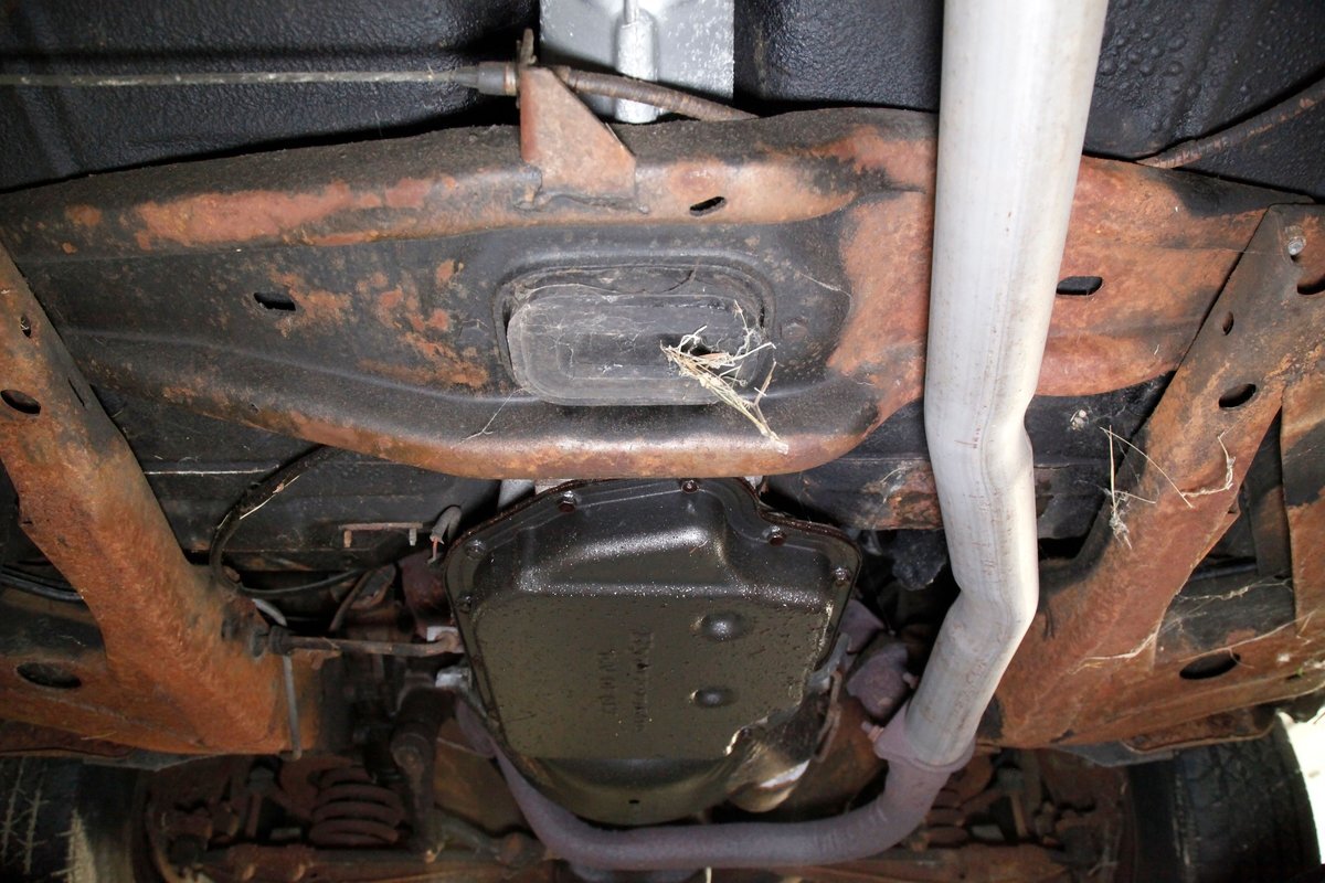 Patina, some surface rust, and invasive rust on the rockers mostly near all the wheel wells is noted. The stamped floor pans in these areas have it too, and also the framing shows some surface rust. Independent coil sprung front suspension provides the ride, and in back a 4 link with coil spring suspension is on and up to snuff. Power disc braking is upfront, and power drums for the rear.