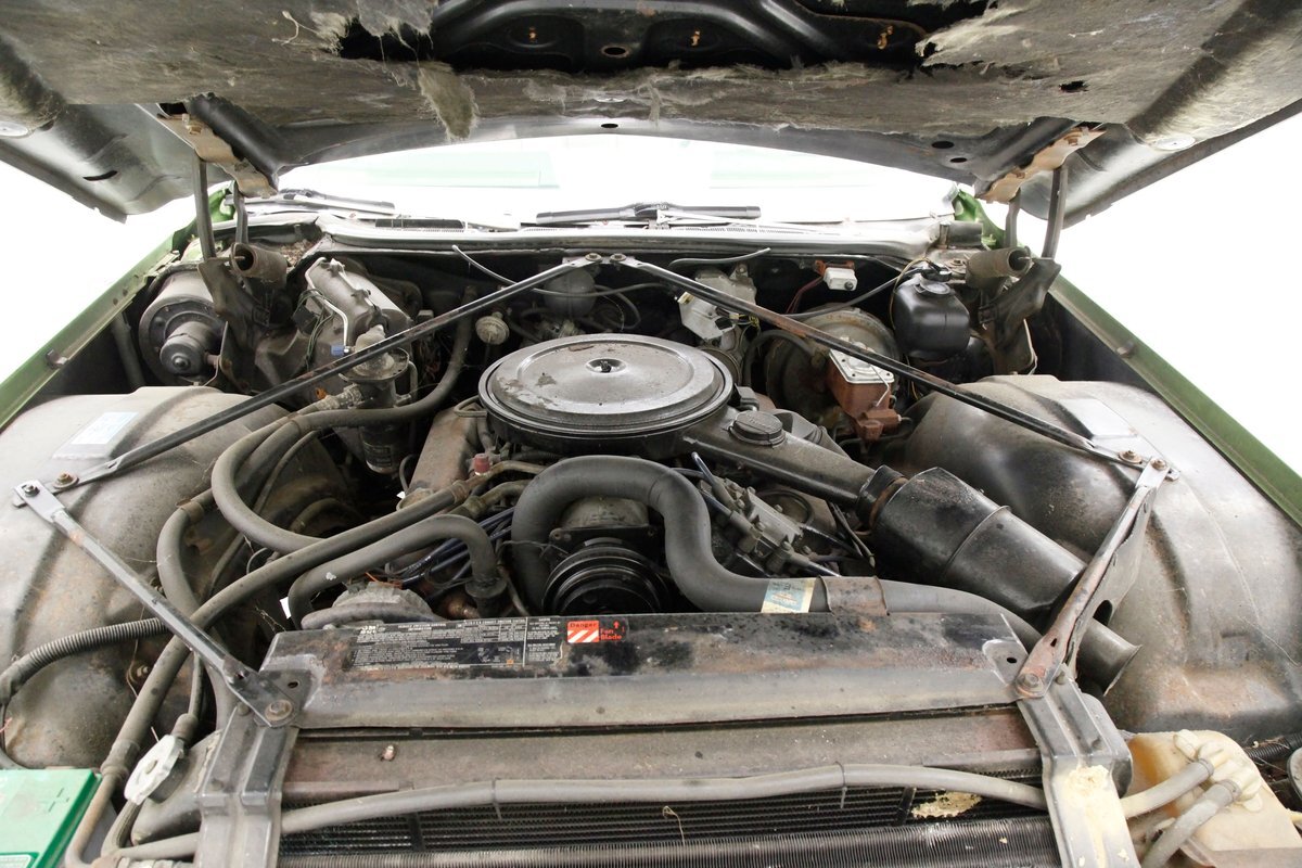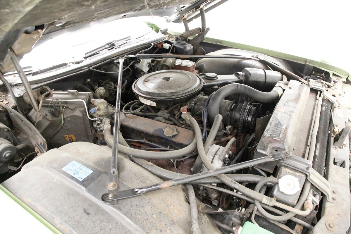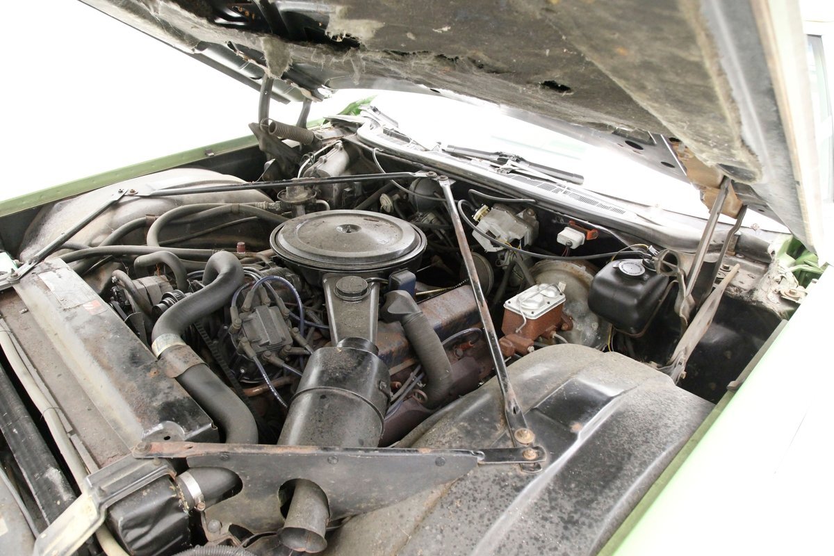 Under the hood sits a 472ci V8 which is original to the car, and provides enough power to spare to thrust this large piece of Detroit iron down the highway. It has a factory 4-bbl carb atop, and a TH400 3-speed automatic transmission on back. The rear axle weighs in at a 12 bolt with 2.93 gear ratio. All in an unrestored patina and some dirt engine bay.