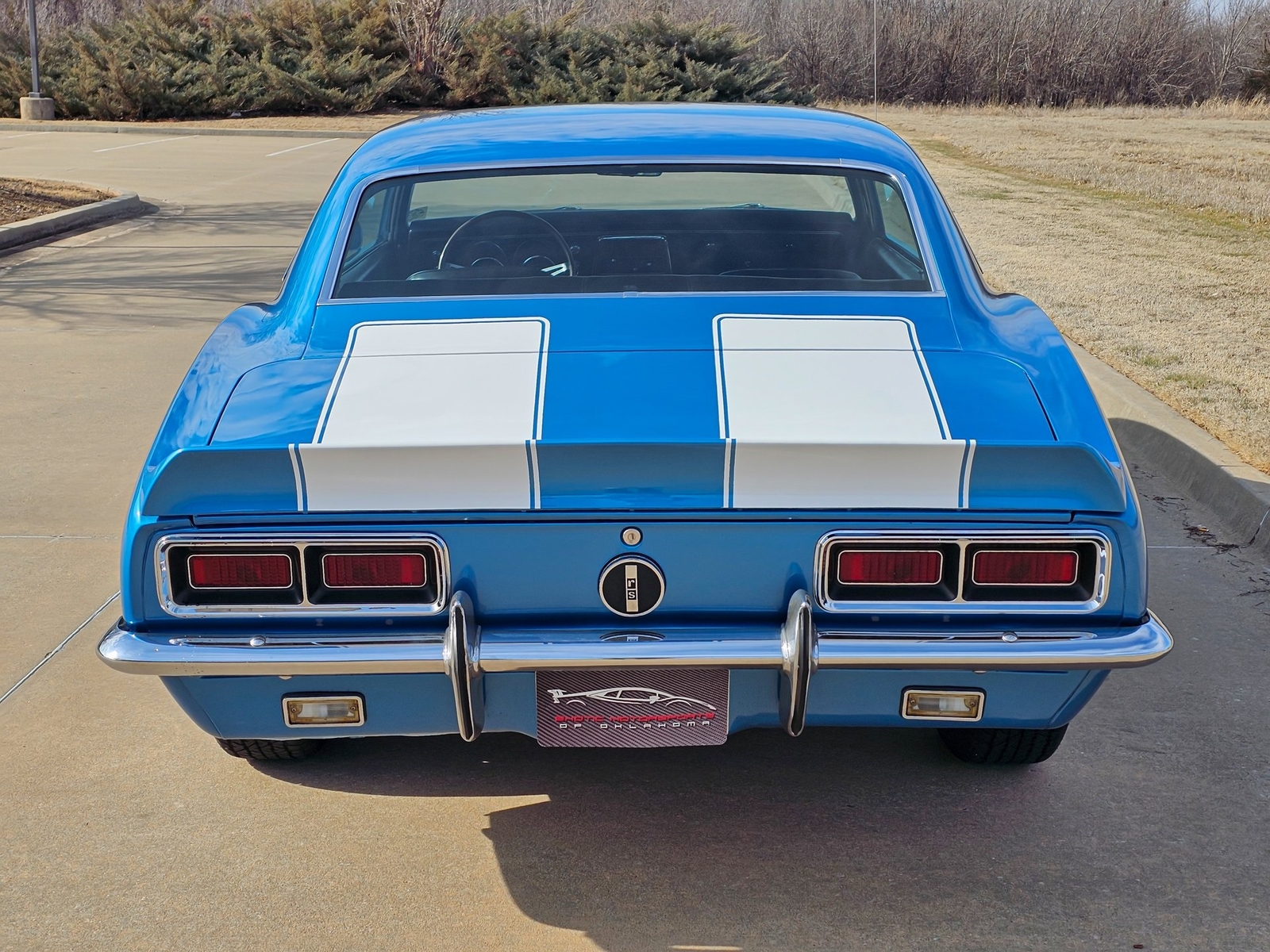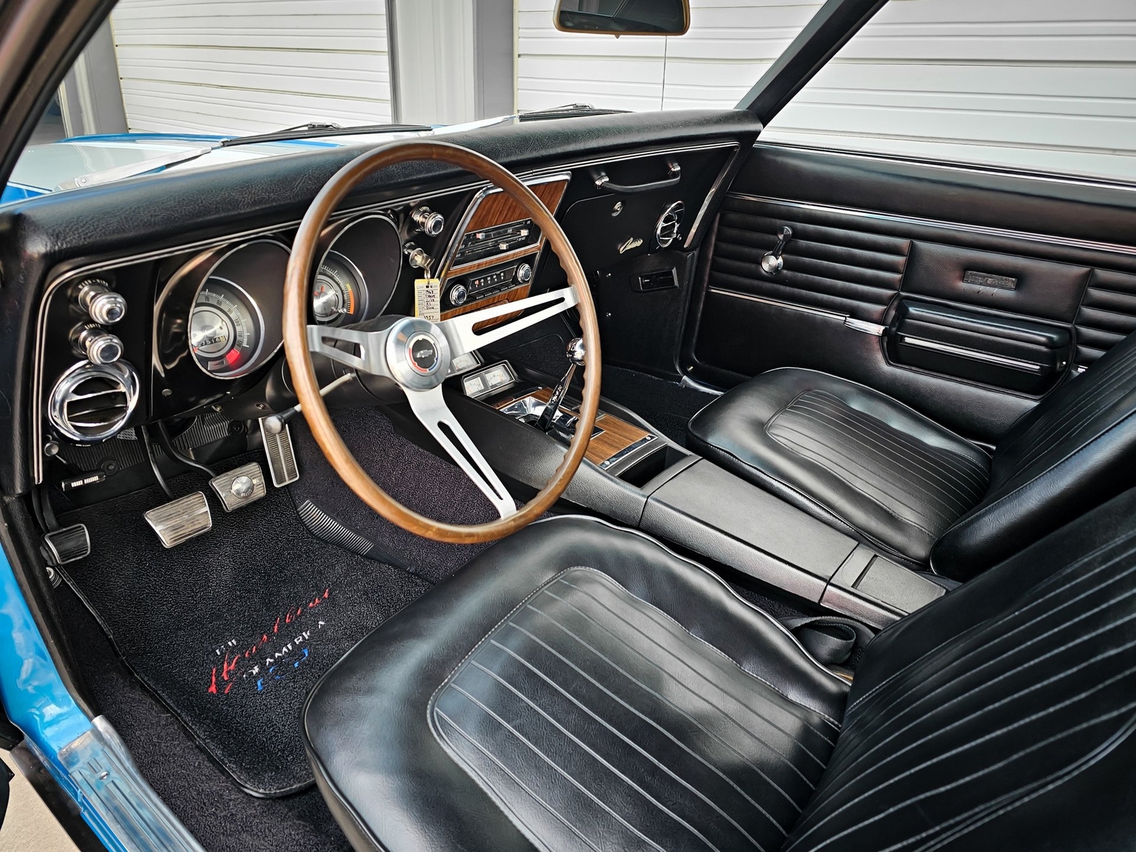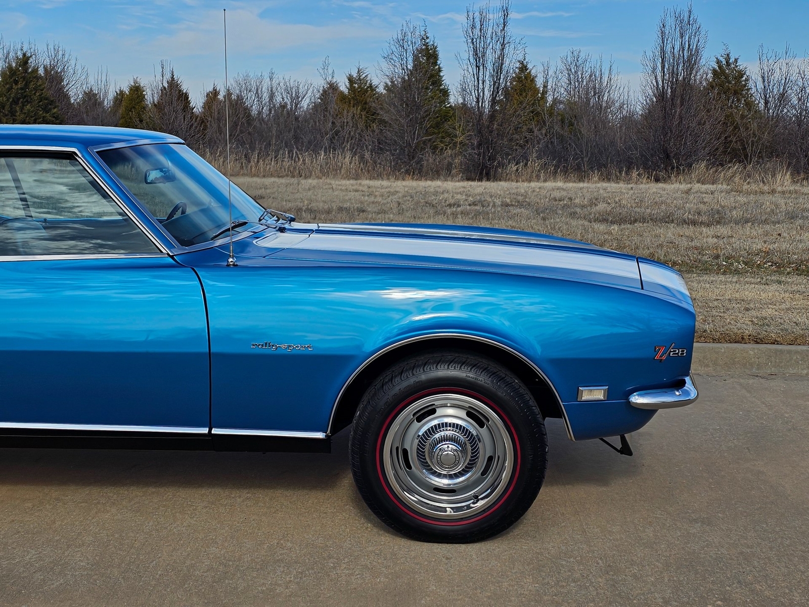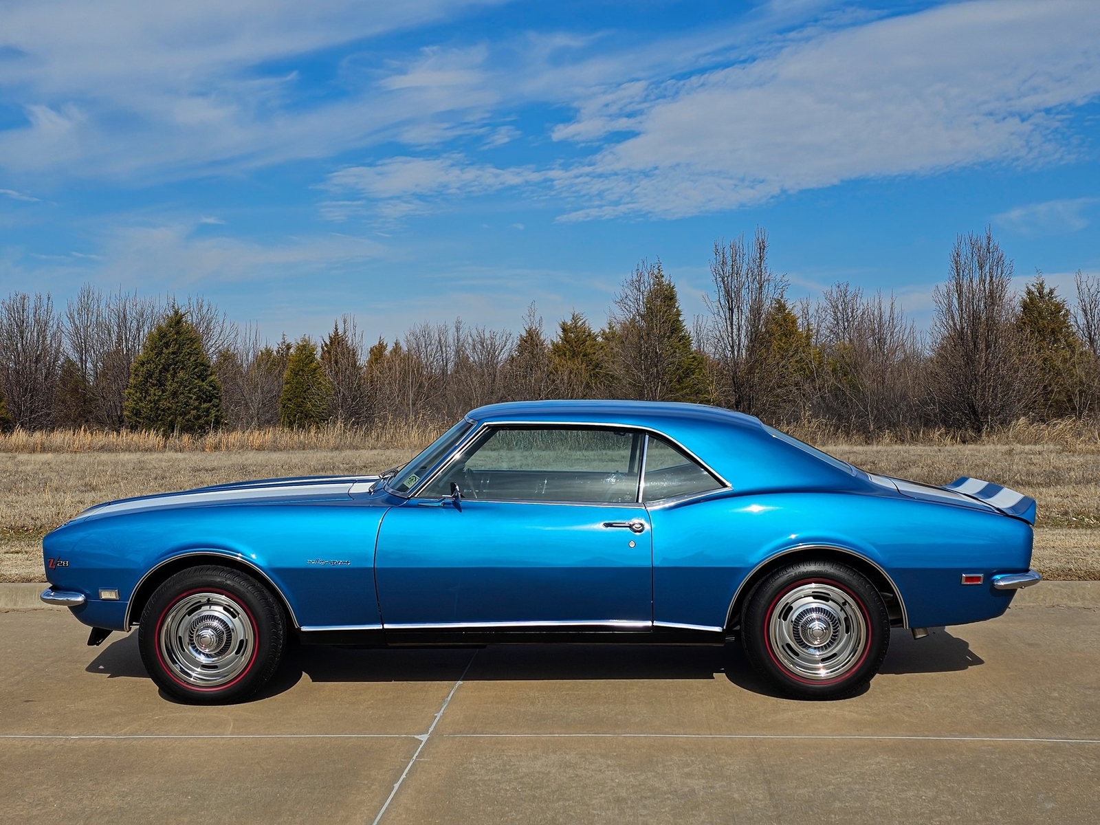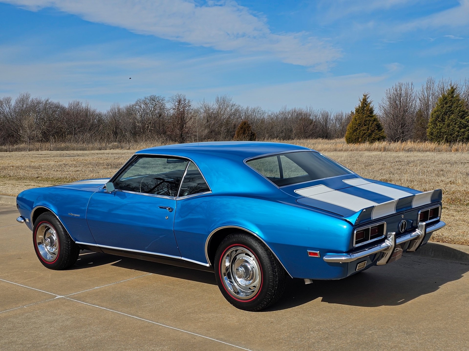 1968 CHEVROLET CAMARO RS Z/28 * 57K MILES * COUPE * BLUE PAINT WITH PAINTED WHITE STRIPES * BLACK INTERIOR * MOST OF THE INTERIOR IS ORIGINAL * OPTIONS INCLUDE TACHOMETER WITH CLOCK, CONSOLE, GAUGES, AM/FM RADIO WITH REAR SPEAKER AND TEAK WHEEL * ALL GAUGES WORK GREAT WITH OIL PRESSURE SHOWING 60 PSI COLD * ALL INTERIOR LIGHTS WORK * ALL WOOD GRAIN IS IN GOOD CONDITION * REAR PACKAGE TRAY IS NEW * CARPET, HEADLINER AND SUN VISORS ARE IN GOOD CONDITION * ALL TRUNK JACK PARTS ARE INCLUDED WITH JACK AND POSI-TRACTION DECALS * EXTERIOR UU CODE LEMANS BLUE PAINT * FRONT AND REAR SPOILERS * RALLY WHEELS * DELCO BATTERY, AIR PUMP, NEW MASTER CYLINDER AND POWER BRAKE BOOSTER AND ALL PERIOD CORRECT HOSE CLAMPS * THE ENGINE IS MATCHING NUMBER 302 (MO). EVEN THE HOLLEY CARBURETOR IS CORRECT (4053) ALONG WITH THE INTAKE AND EXHAUST MANIFOLDS * NEW UNDER HOOD INSULATION * THE ORIGINAL EMISSIONS STICKER IS STILL ON THE FRONT CORE SUPPORT! * THE FRONT SUB-FRAME APPEARS TO HAVE BEEN REMOVED, CLEANED PAINTED AND REPLACED WITH ALL NEW BUSHINGS AND SUSPENSION COMPONENTS * THE REAR SUSPENSION HAS BEEN REBUILT * CORRECT 12-BOLT REAR * NEW GAS TANK * CORRECT CHAMBERED Z/28 MUFFLER AND EXHAUST * NO SIGNS OF ANY RUST, REPAIRS OR DAMAGE WERE FOUND DURING 3RD PARTY APPRAISAL.