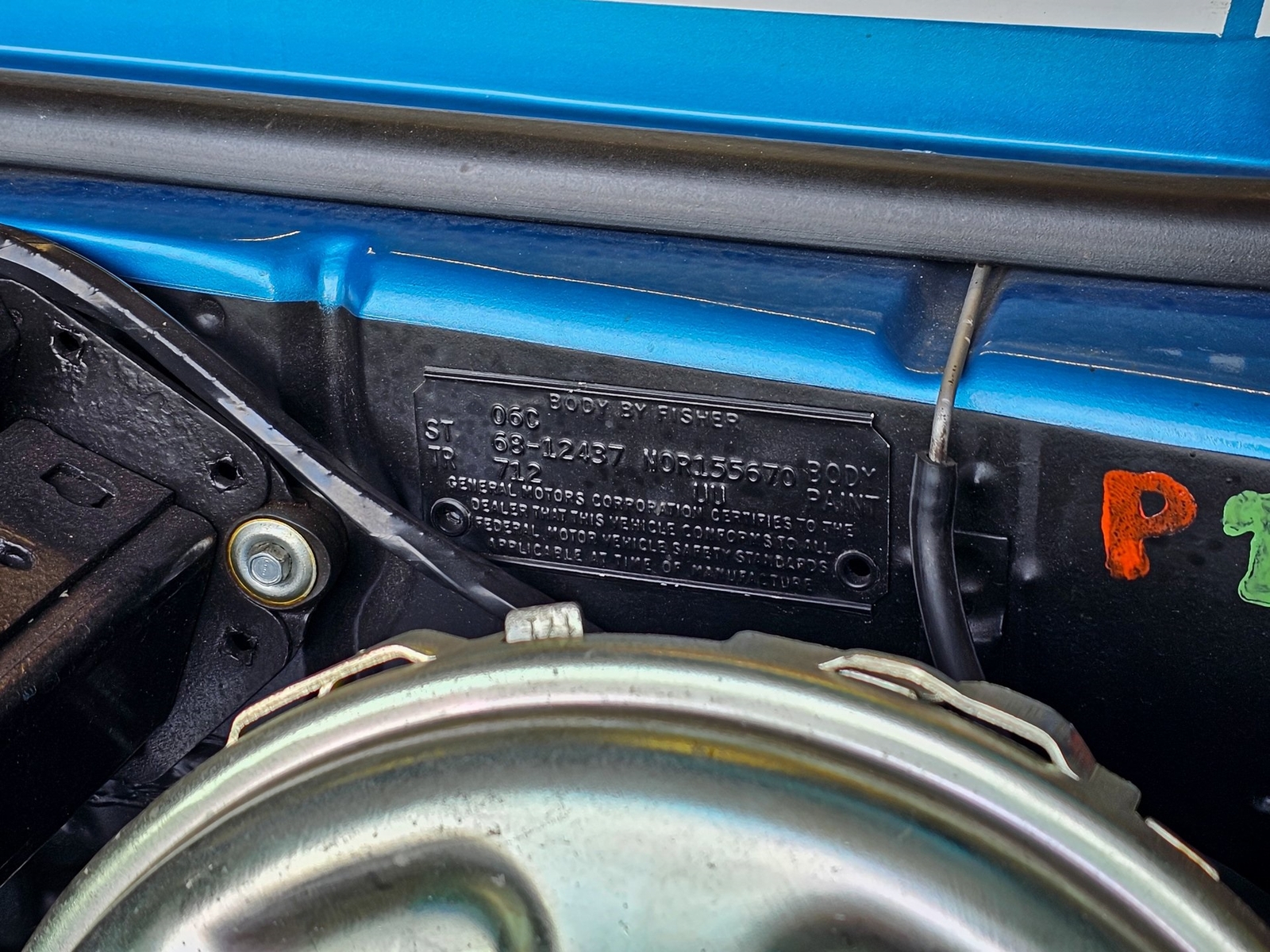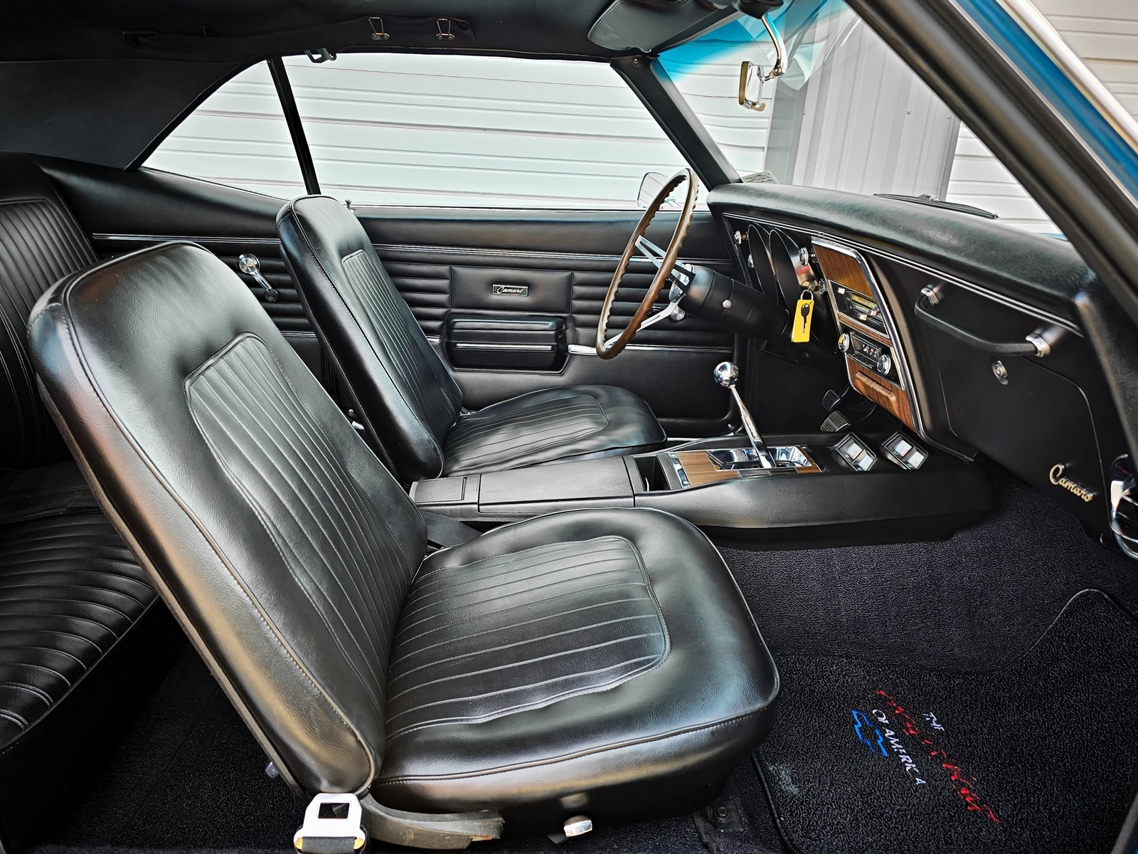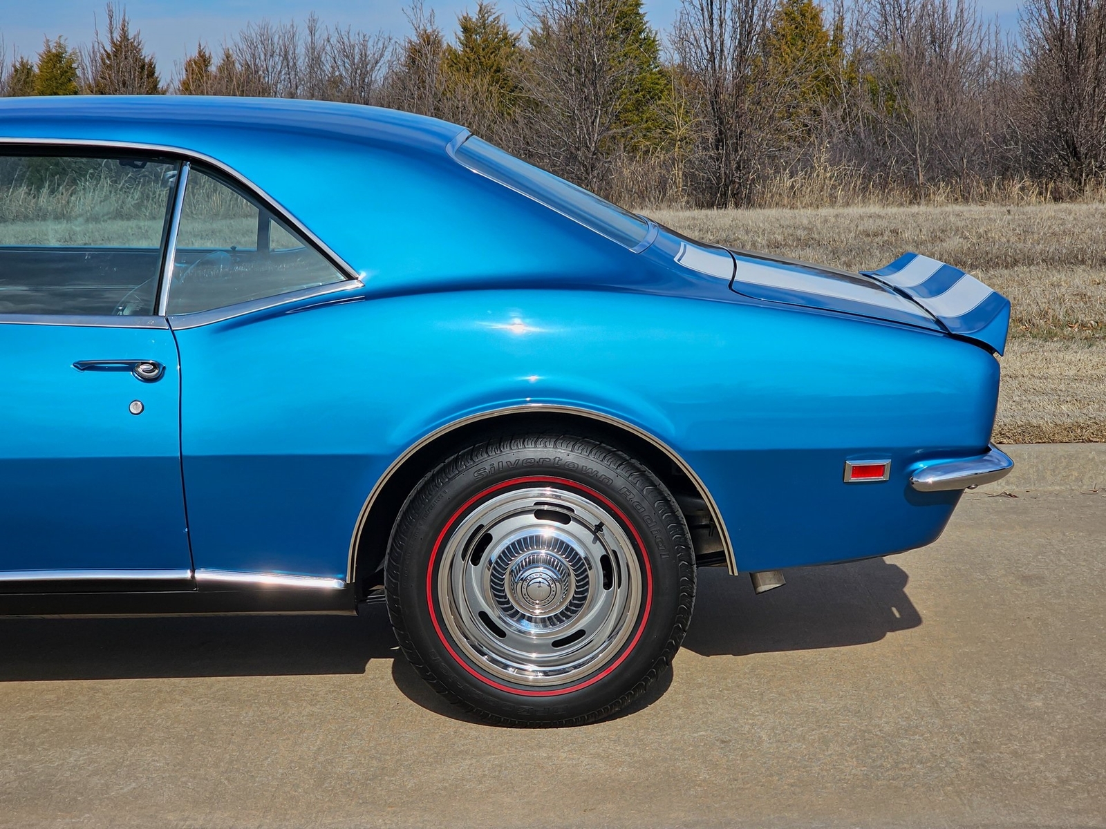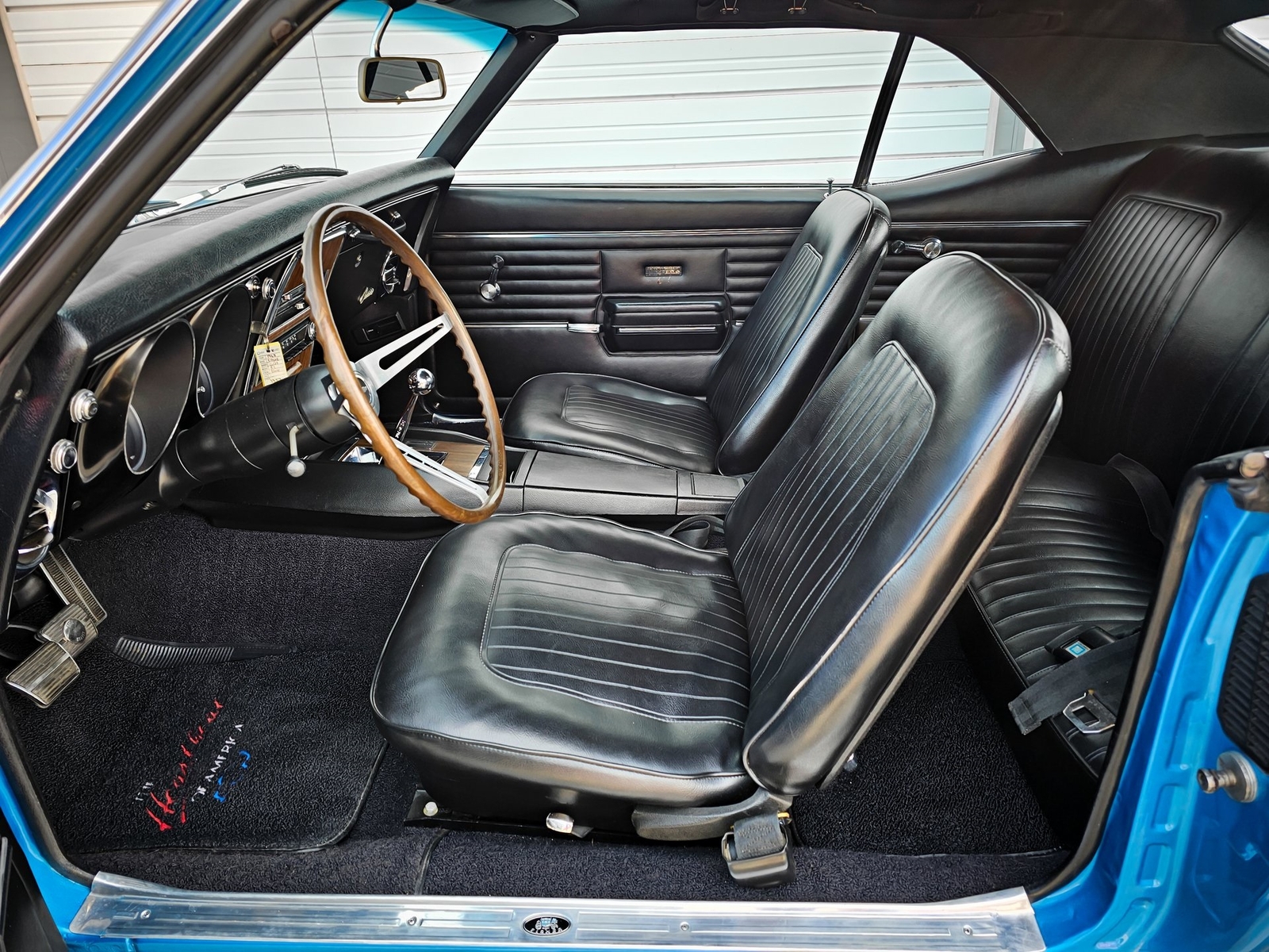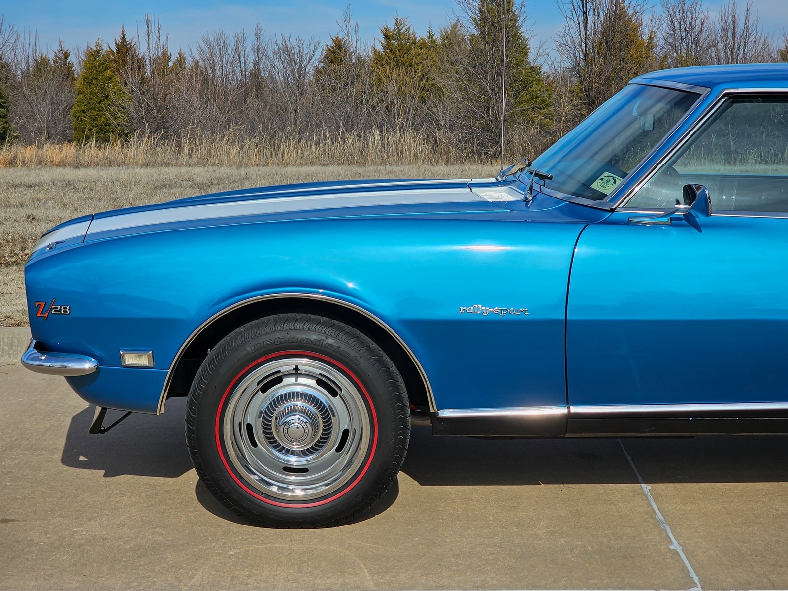 1968 CHEVROLET CAMARO RS Z/28 * 57K MILES * COUPE * BLUE PAINT WITH PAINTED WHITE STRIPES * BLACK INTERIOR * MOST OF THE INTERIOR IS ORIGINAL * OPTIONS INCLUDE TACHOMETER WITH CLOCK, CONSOLE, GAUGES, AM/FM RADIO WITH REAR SPEAKER AND TEAK WHEEL * ALL GAUGES WORK GREAT WITH OIL PRESSURE SHOWING 60 PSI COLD * ALL INTERIOR LIGHTS WORK * ALL WOOD GRAIN IS IN GOOD CONDITION * REAR PACKAGE TRAY IS NEW * CARPET, HEADLINER AND SUN VISORS ARE IN GOOD CONDITION * ALL TRUNK JACK PARTS ARE INCLUDED WITH JACK AND POSI-TRACTION DECALS * EXTERIOR UU CODE LEMANS BLUE PAINT * FRONT AND REAR SPOILERS * RALLY WHEELS * DELCO BATTERY, AIR PUMP, NEW MASTER CYLINDER AND POWER BRAKE BOOSTER AND ALL PERIOD CORRECT HOSE CLAMPS * THE ENGINE IS MATCHING NUMBER 302 (MO). EVEN THE HOLLEY CARBURETOR IS CORRECT (4053) ALONG WITH THE INTAKE AND EXHAUST MANIFOLDS * NEW UNDER HOOD INSULATION * THE ORIGINAL EMISSIONS STICKER IS STILL ON THE FRONT CORE SUPPORT! * THE FRONT SUB-FRAME APPEARS TO HAVE BEEN REMOVED, CLEANED PAINTED AND REPLACED WITH ALL NEW BUSHINGS AND SUSPENSION COMPONENTS * THE REAR SUSPENSION HAS BEEN REBUILT * CORRECT 12-BOLT REAR * NEW GAS TANK * CORRECT CHAMBERED Z/28 MUFFLER AND EXHAUST * NO SIGNS OF ANY RUST, REPAIRS OR DAMAGE WERE FOUND DURING 3RD PARTY APPRAISAL.