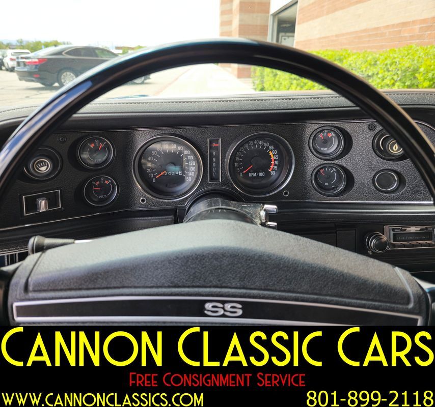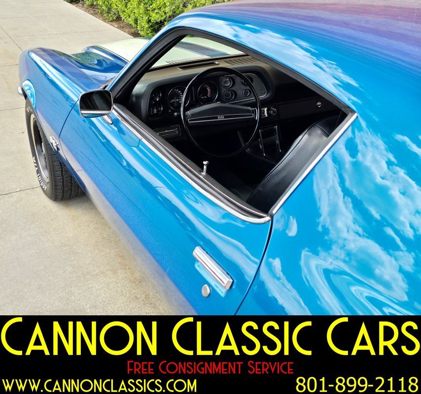 Under the hood, you'll find a matching numbers 350 V8 engine, preserving its authenticity. It has been rebadged as an SS clone, adding a touch of unique history. The factory red car has been repainted in a striking factory blue color with white stripes, giving it a fresh and appealing look.
