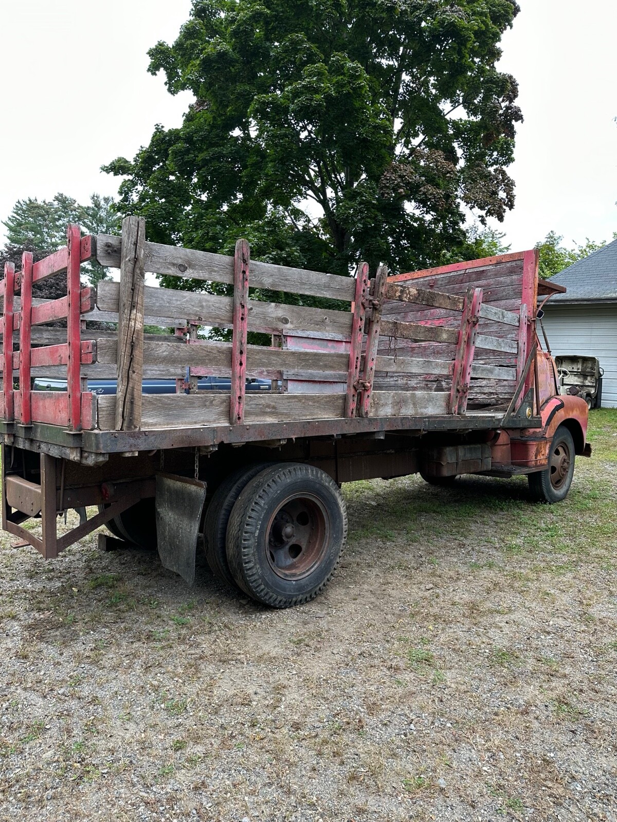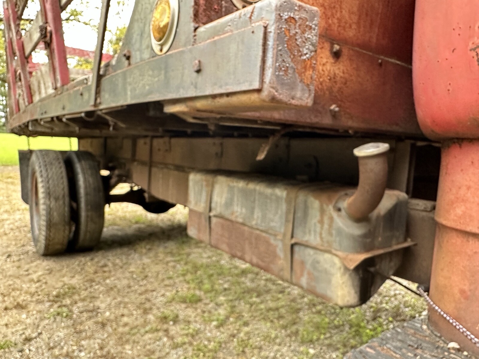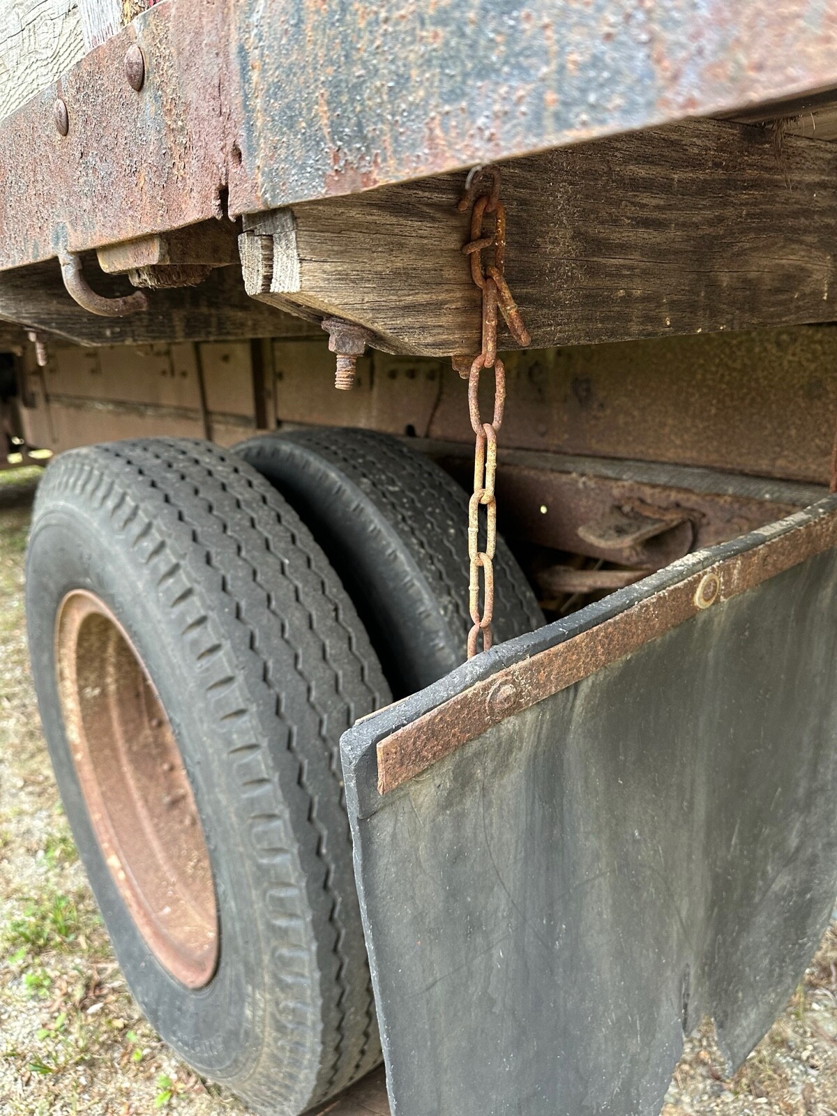 This 4sp 235.5 ci 6lbbl 80 horsepower loadmaster has dual wheels, 14’flatbed. Deluxe 4 window cab. We have original seat, needs new cover. Tires 8.25-20.