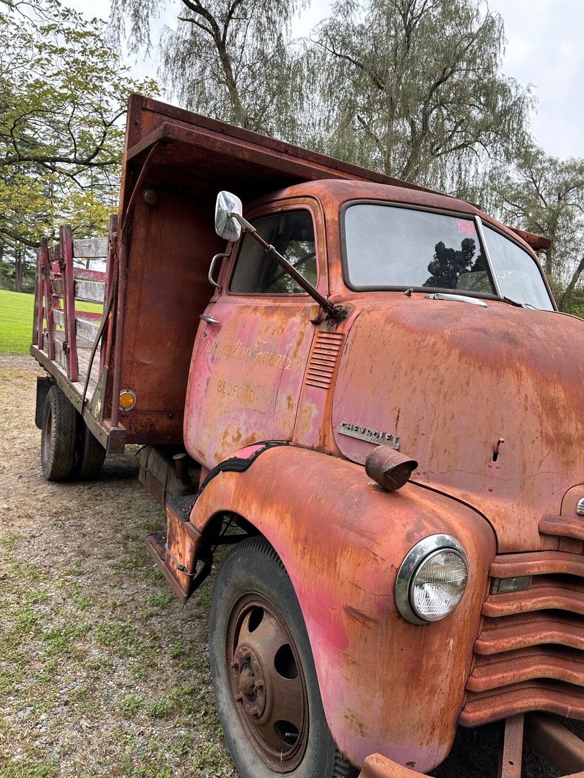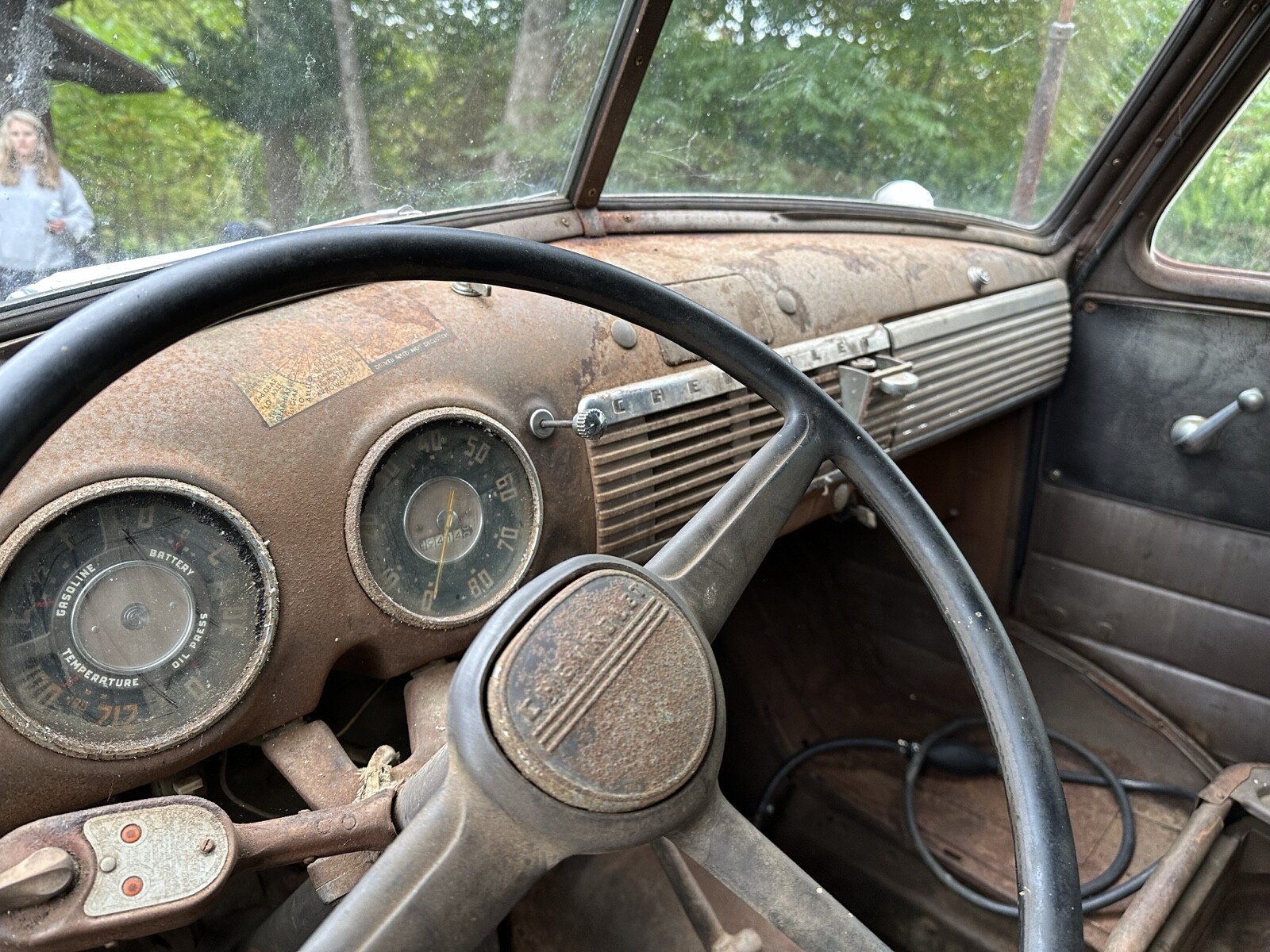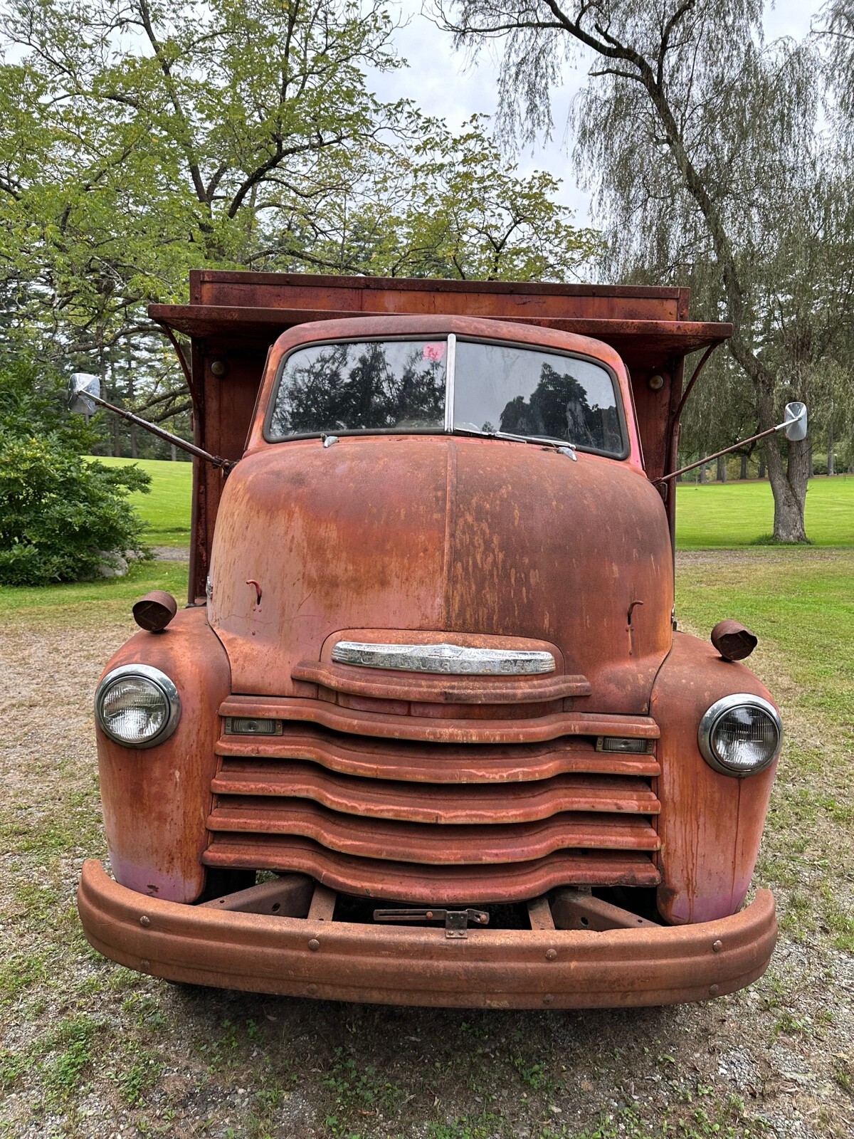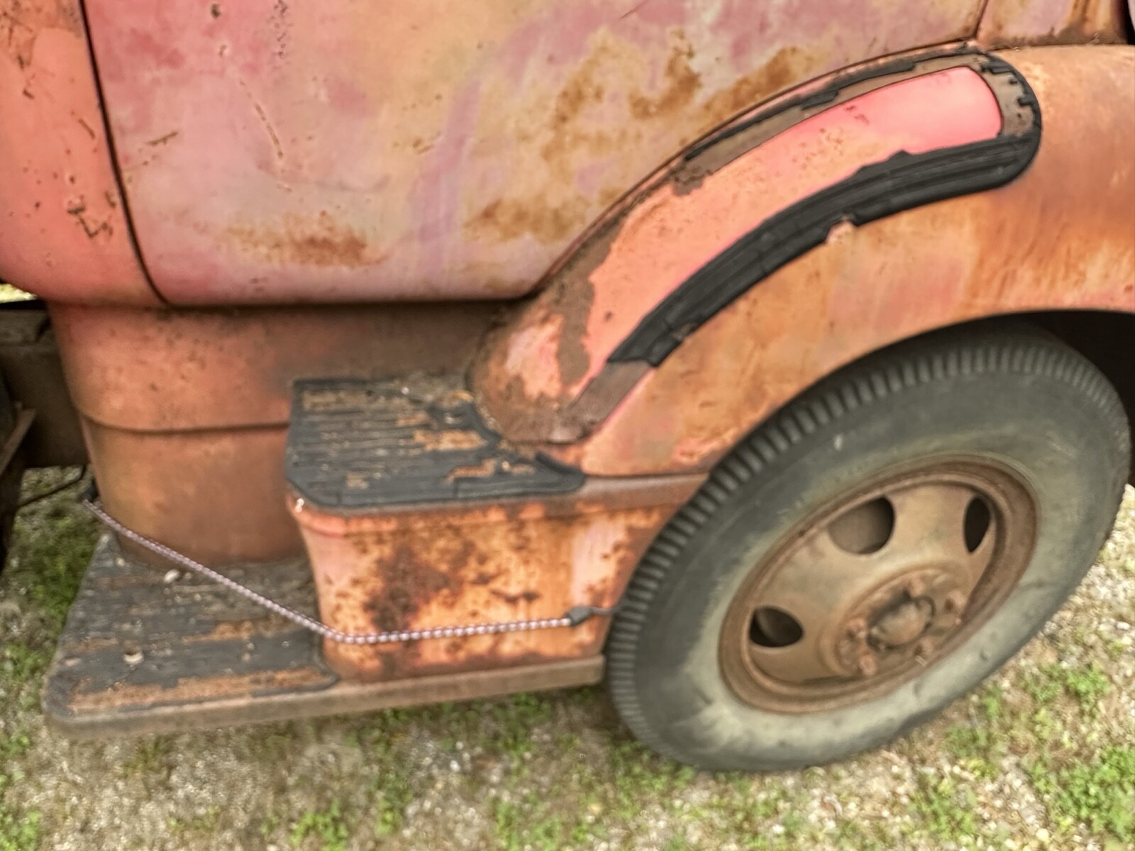 This 4sp 235.5 ci 6lbbl 80 horsepower loadmaster has dual wheels, 14’flatbed. Deluxe 4 window cab. We have original seat, needs new cover. Tires 8.25-20.