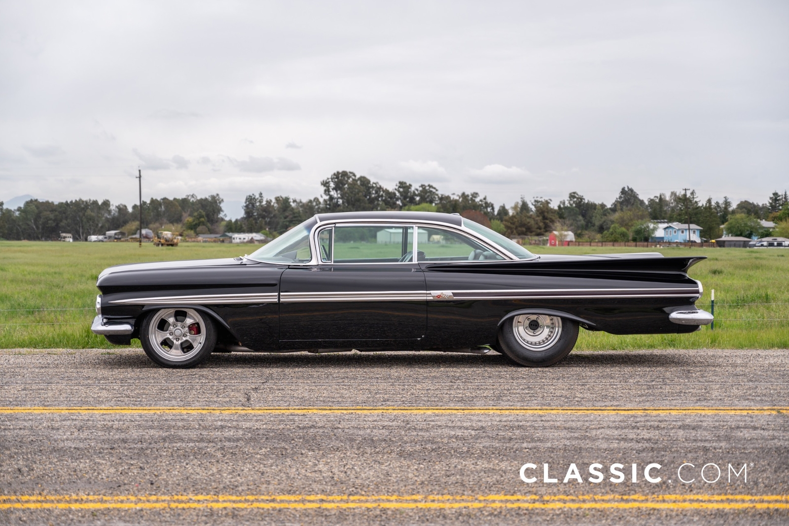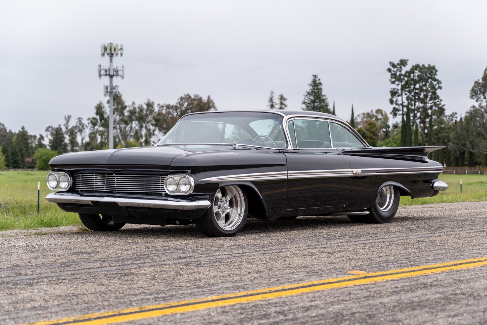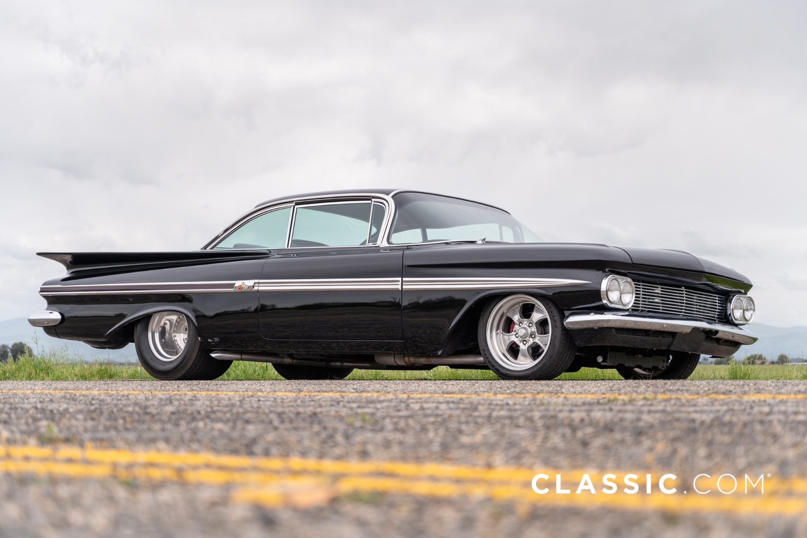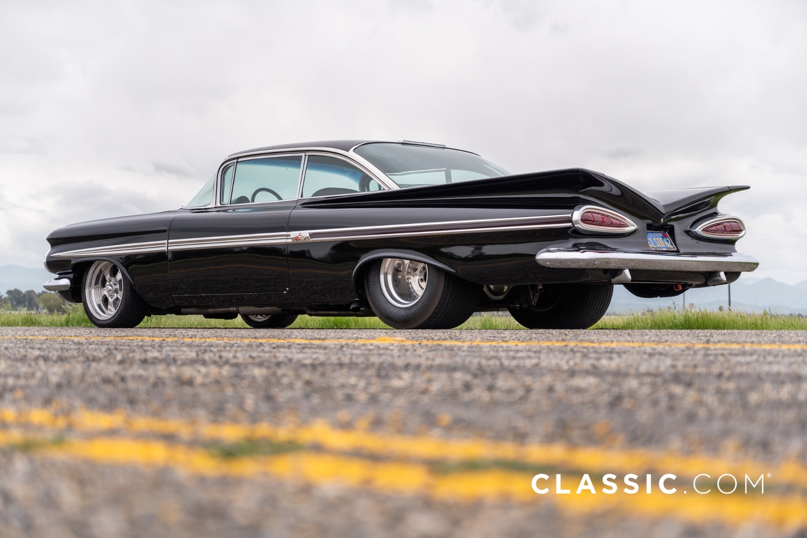 This custom 1959 Chevrolet Impala offers a meticulous blend of classic aesthetics and modern performance enhancements. This iteration of the Impala has been highly customized from the powertrain to its appearance, as it sits in a deep shade of black.