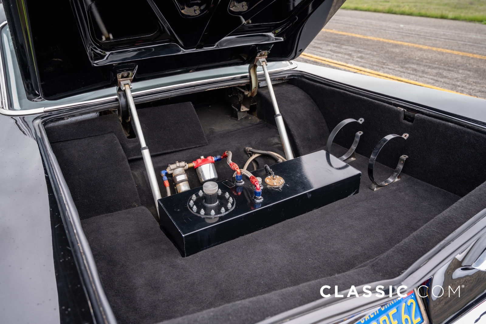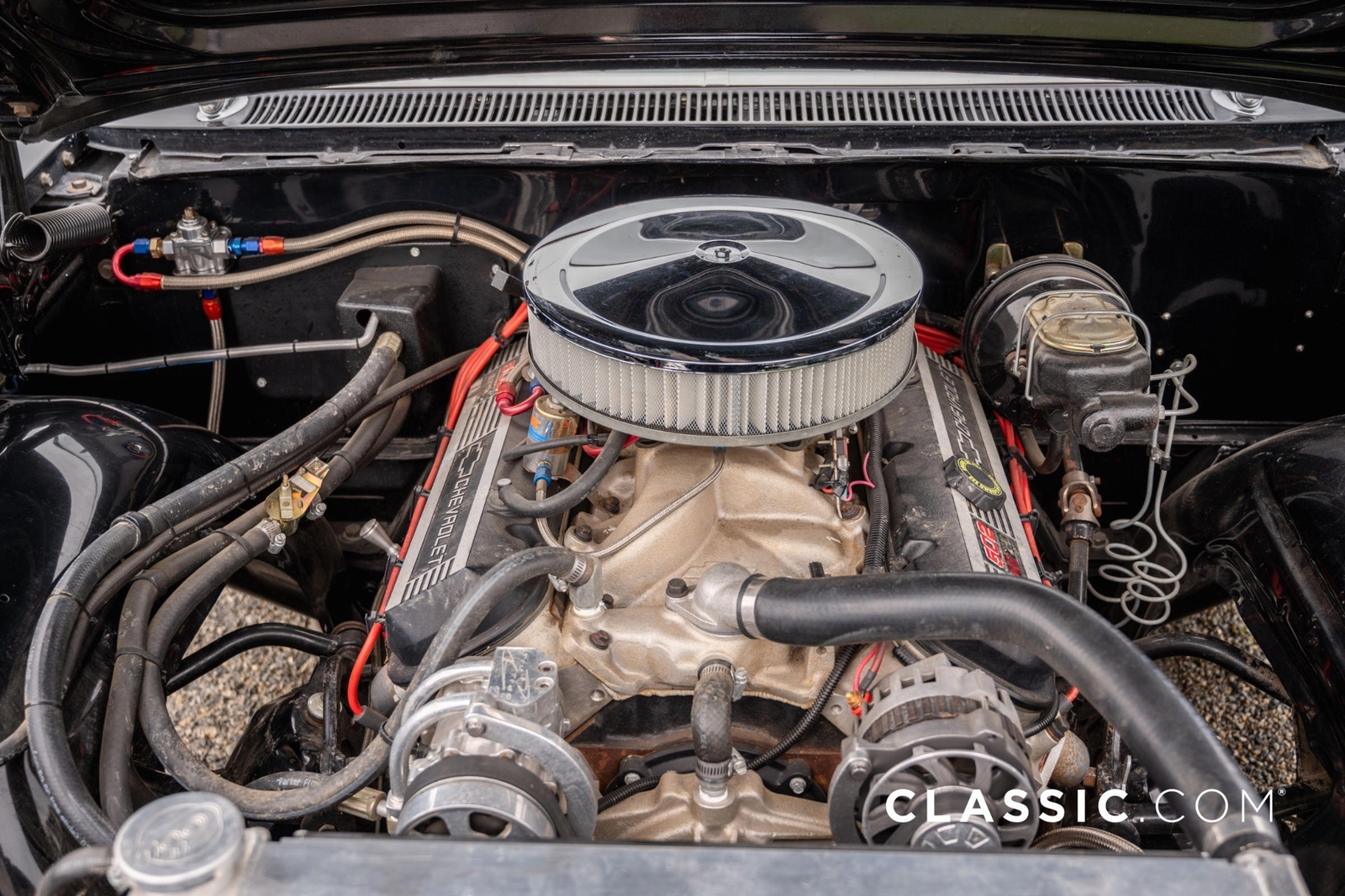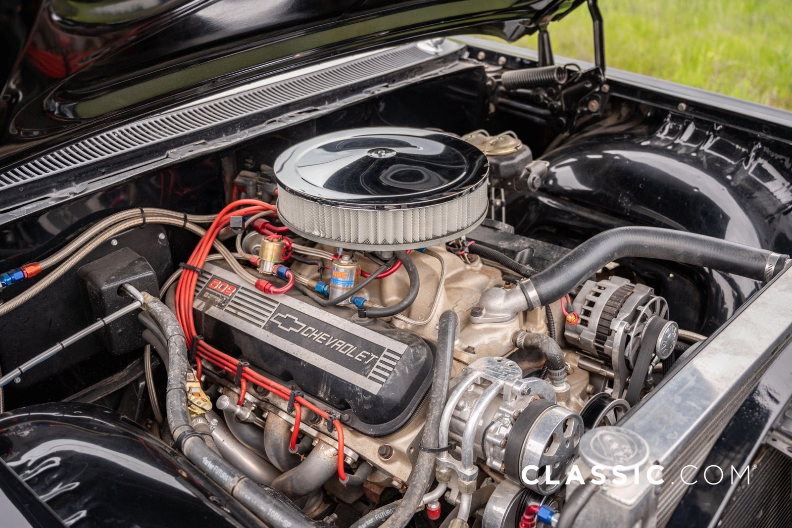 This meticulously customized Impala is now powered by a crate 502ci big block V8 engine with a NOS system for enhanced power, automatic transmission, and a Ford rear differential. Its exterior features a sleek black finish, modern door releases, and a fuel cell, while the interior offers luxury with red leather, power windows, and modern conveniences. Upgraded with coilover shocks, tubular control arms, rack and pinion steering, and four-wheel disc brakes, it promises superior handling and safety. Owned and preserved for 40 years, it comes with accessories like keyless entry remotes and a car cover, making it an exceptional blend of classic looks and modern sophistication.