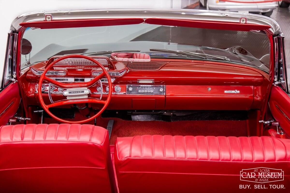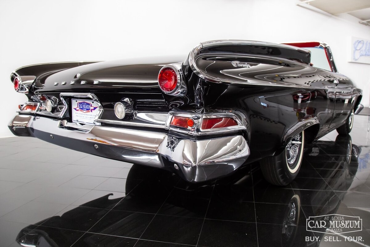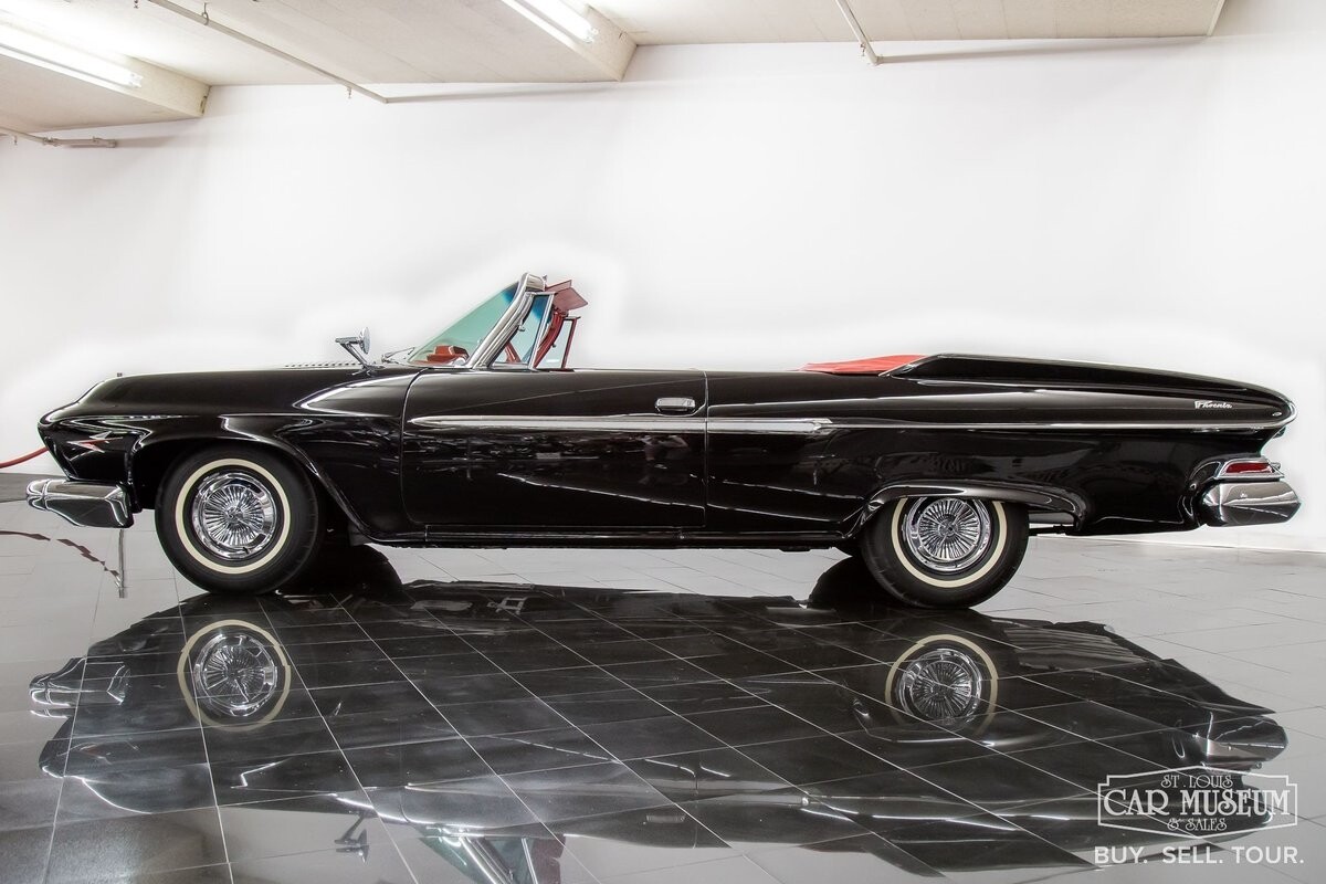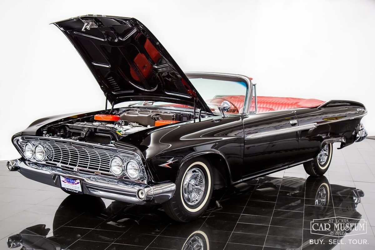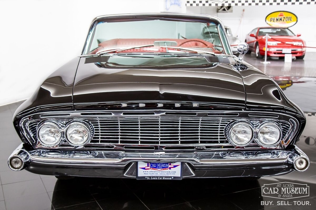 We are proud to offer for sale a gorgeous 1961 Dodge Dart Phoenix D-500 Convertible finished in factory code correct BB1- Midnight (Black) with a Black convertible top of correct 325- Red Vinyl & Cloth interior! This fine Phoenix D-500 example has been restored to an excellent, show-level condition throughout! Under the hood rests its original 383ci High Performance V8 with D-500 dual carburetion resting on the impressive Cross Ram tuned intake system to produce 340 horsepower and 460 lb. ft. of torque! Options include pushbutton TorqueFlite 3-speed automatic transmission, AM radio, power folding convertible top, heater/defrost, chrome full wheel covers, Goodyear Custom Super Cushion 8.00-14 1.5" whitewall tires, and a fender-mounted rearview mirror.