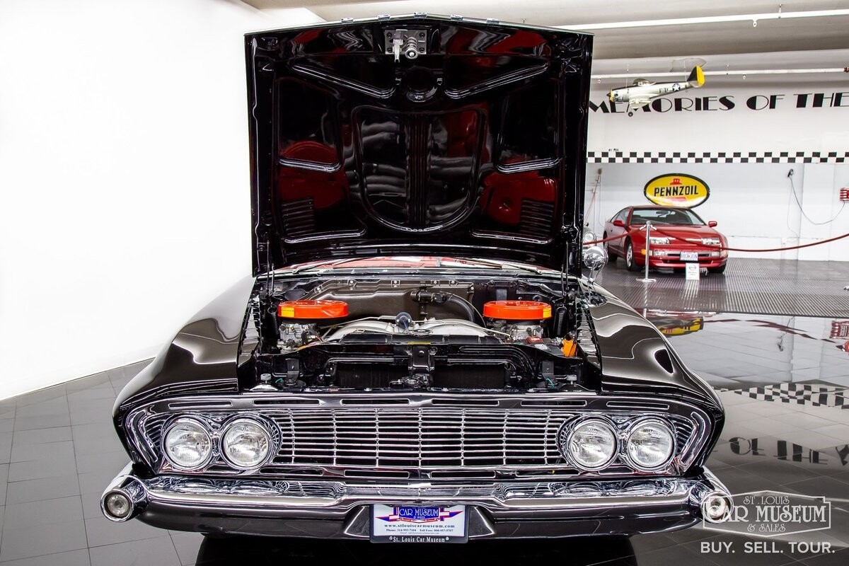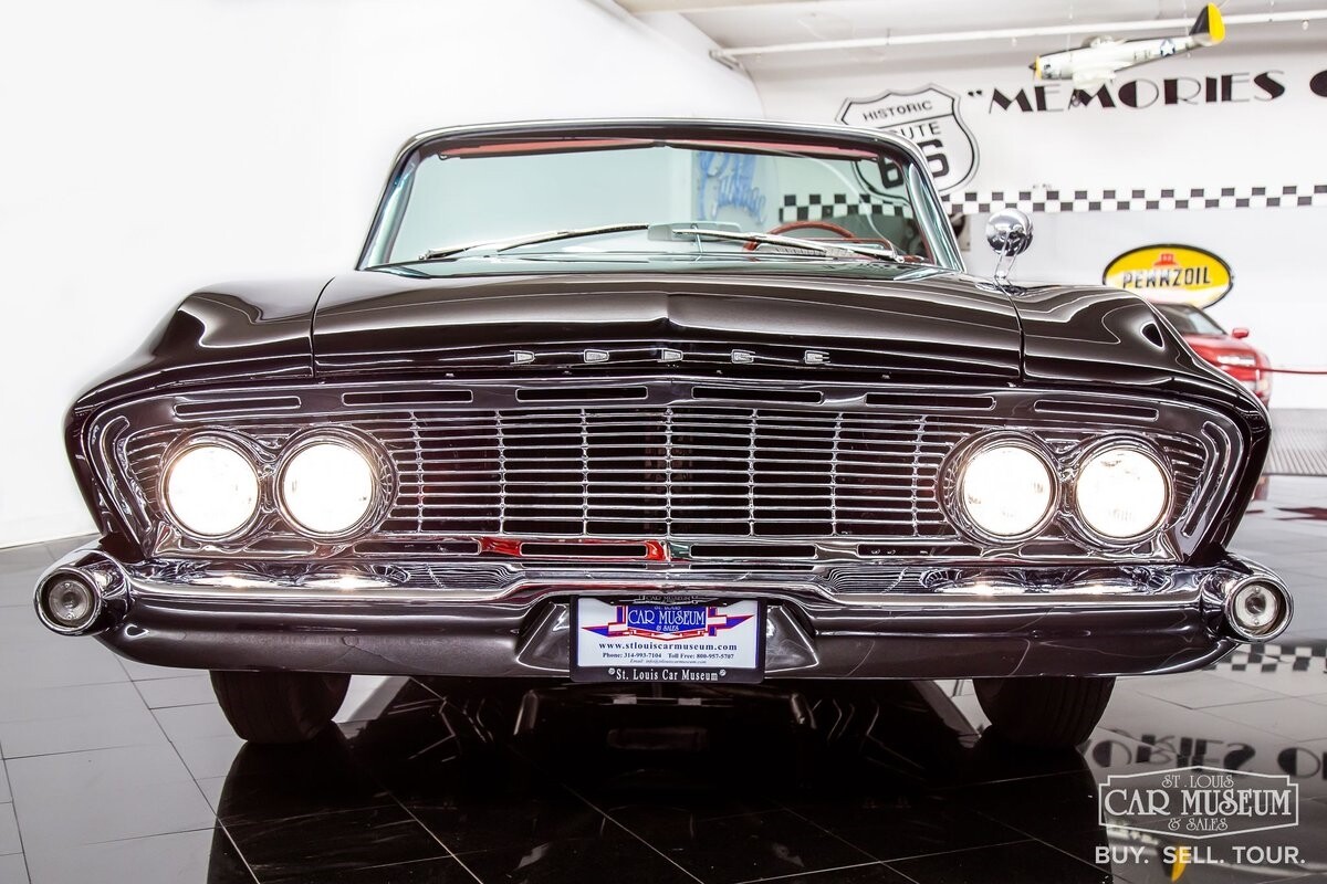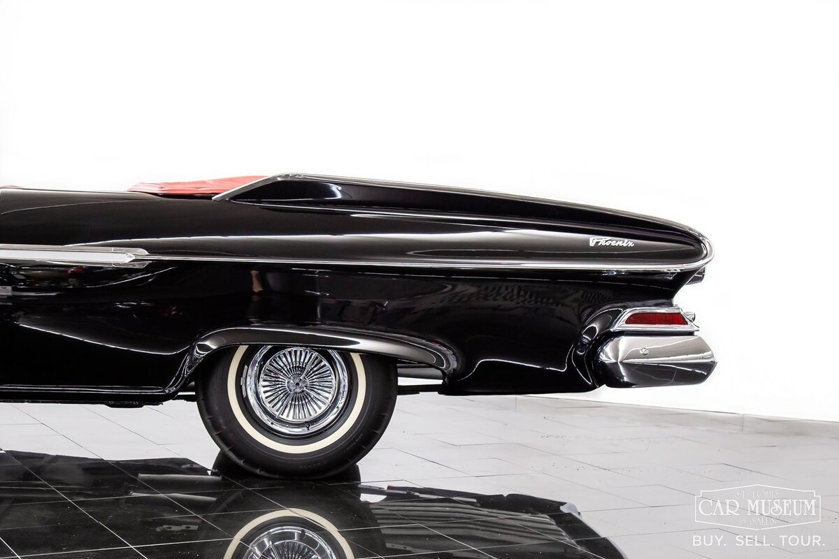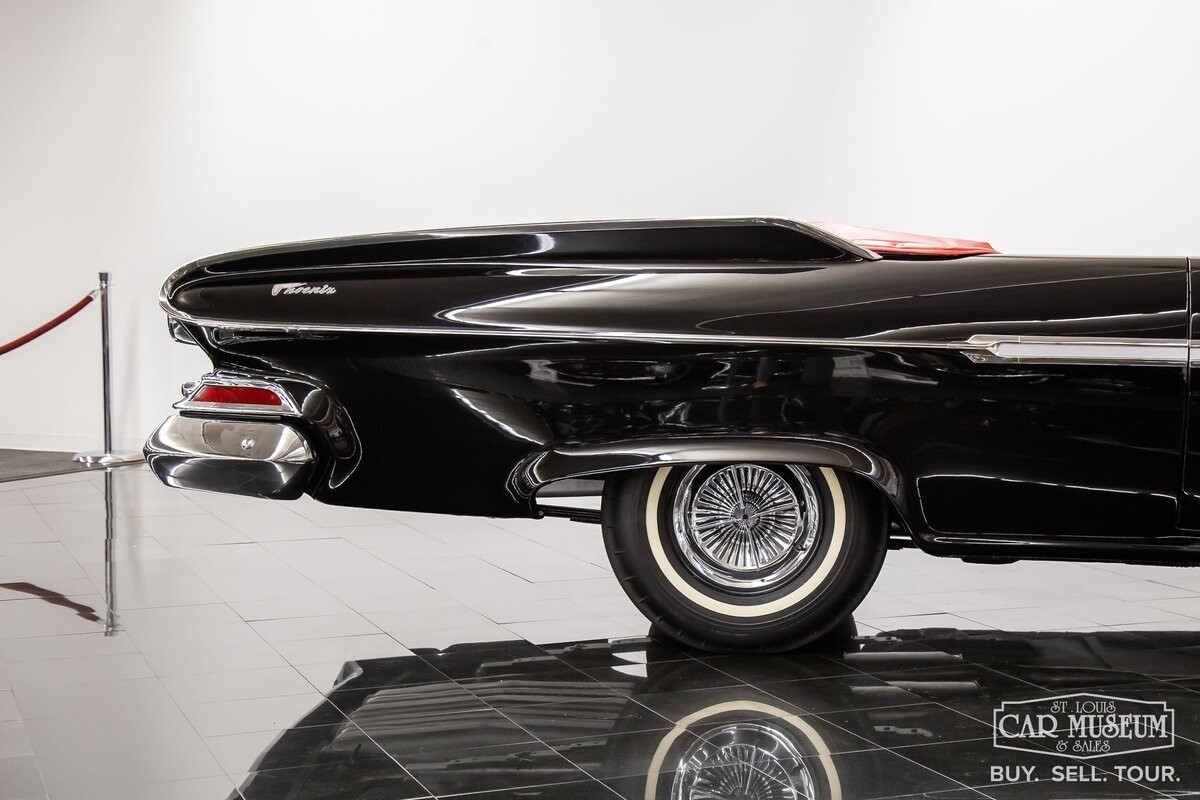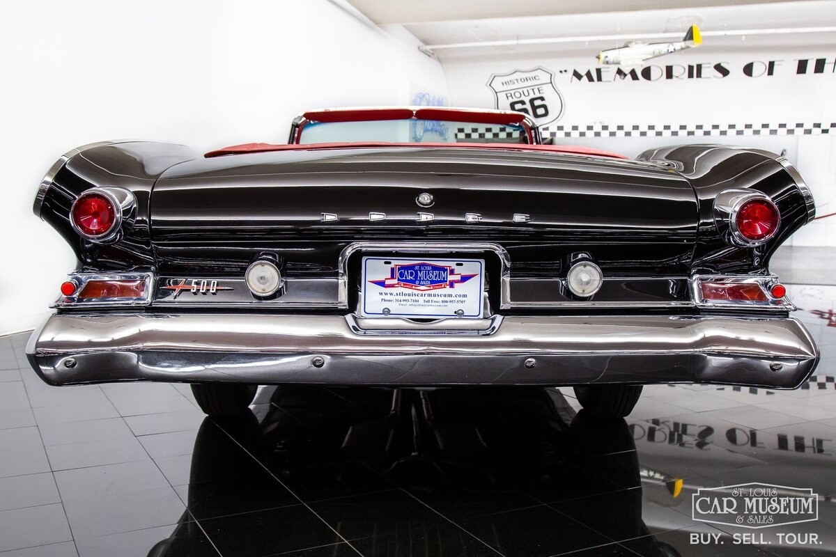 We are proud to offer for sale a gorgeous 1961 Dodge Dart Phoenix D-500 Convertible finished in factory code correct BB1- Midnight (Black) with a Black convertible top of correct 325- Red Vinyl & Cloth interior! This fine Phoenix D-500 example has been restored to an excellent, show-level condition throughout! Under the hood rests its original 383ci High Performance V8 with D-500 dual carburetion resting on the impressive Cross Ram tuned intake system to produce 340 horsepower and 460 lb. ft. of torque! Options include pushbutton TorqueFlite 3-speed automatic transmission, AM radio, power folding convertible top, heater/defrost, chrome full wheel covers, Goodyear Custom Super Cushion 8.00-14 1.5" whitewall tires, and a fender-mounted rearview mirror.
